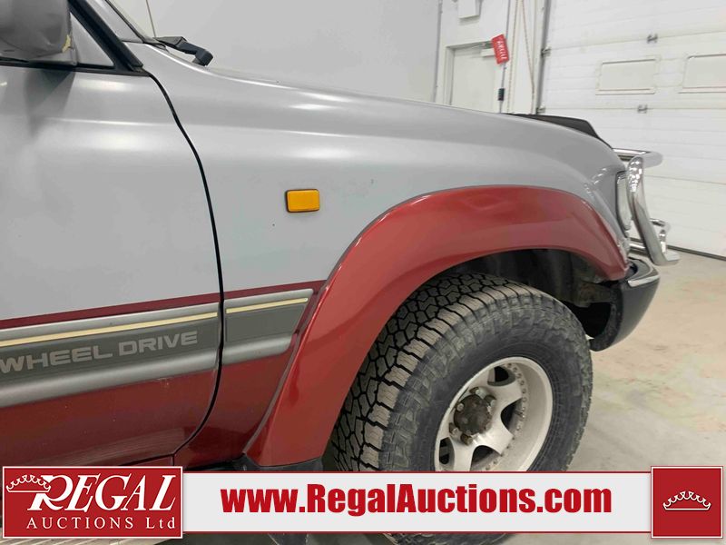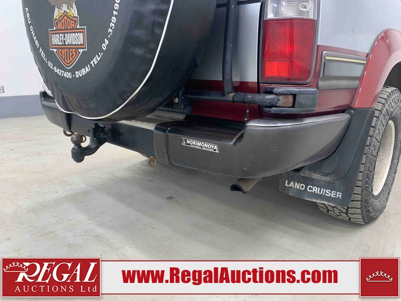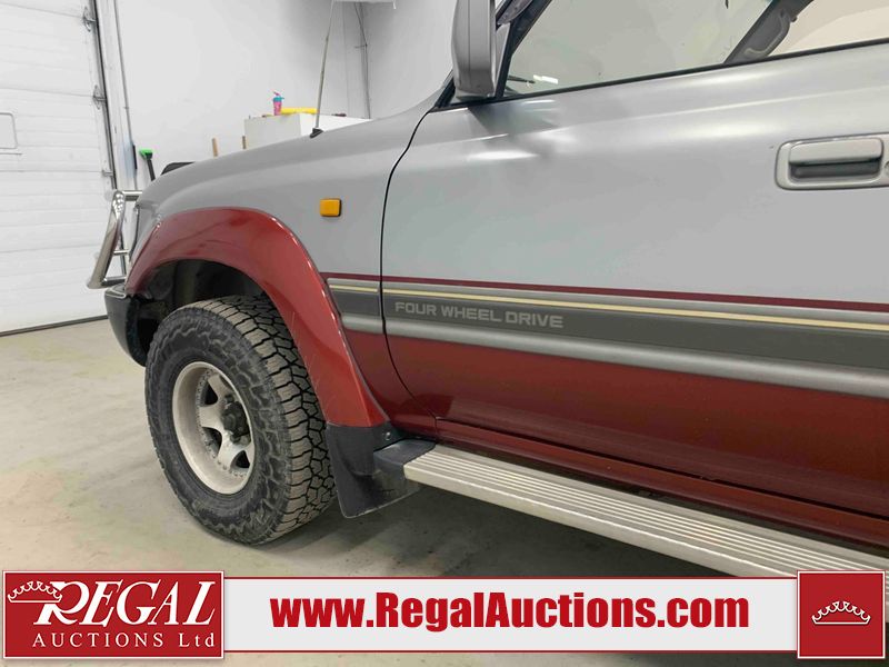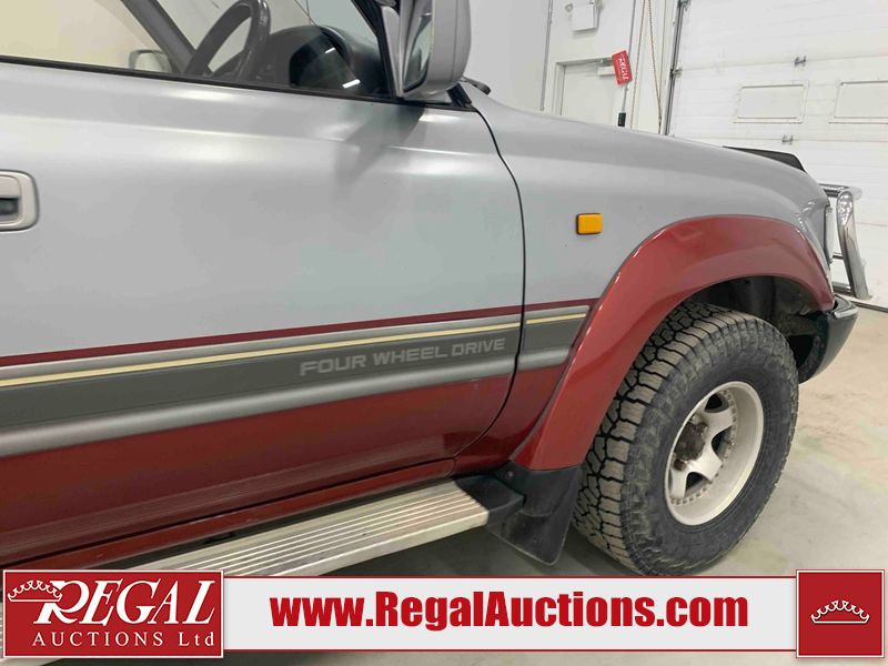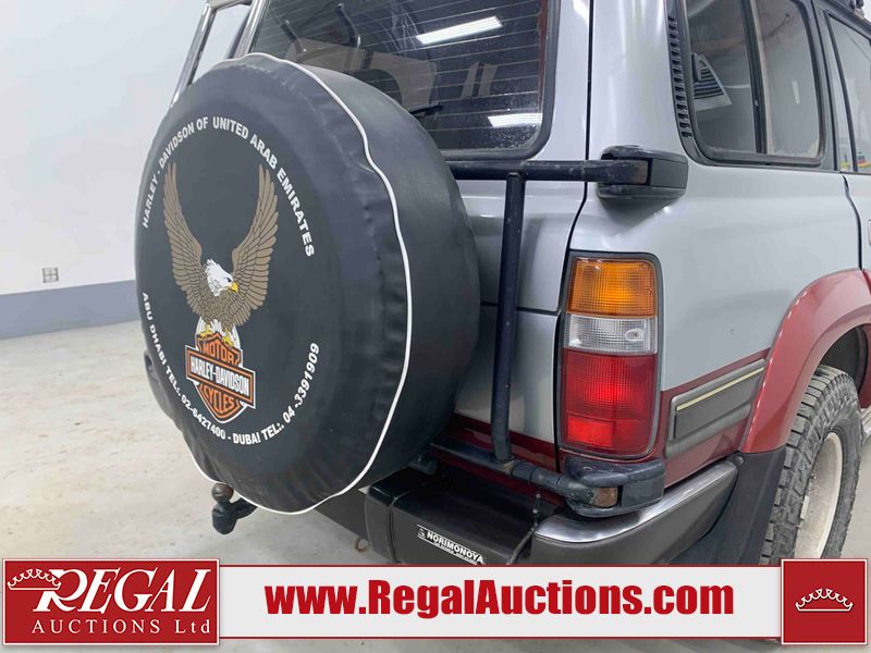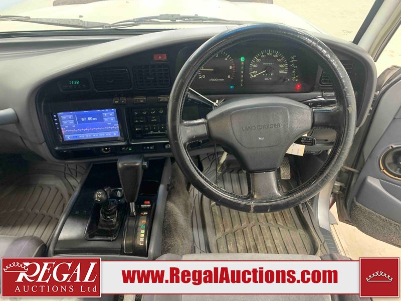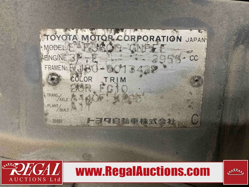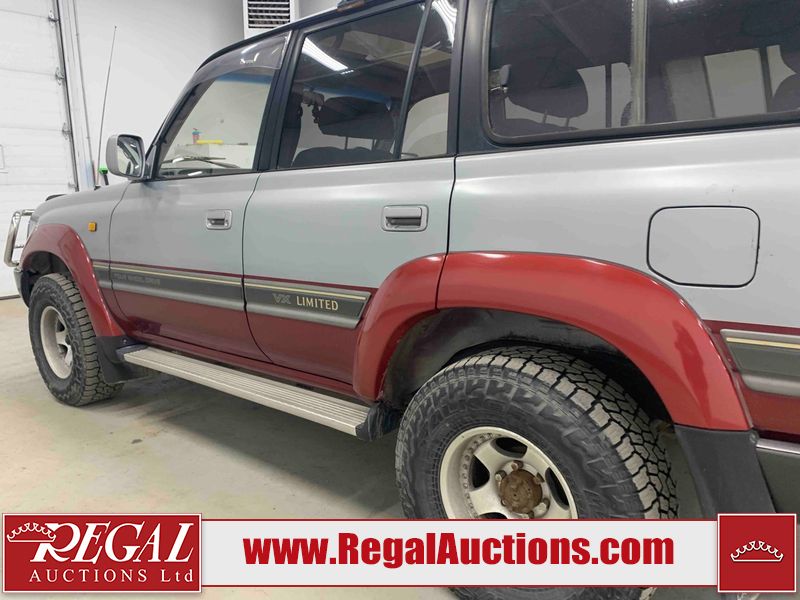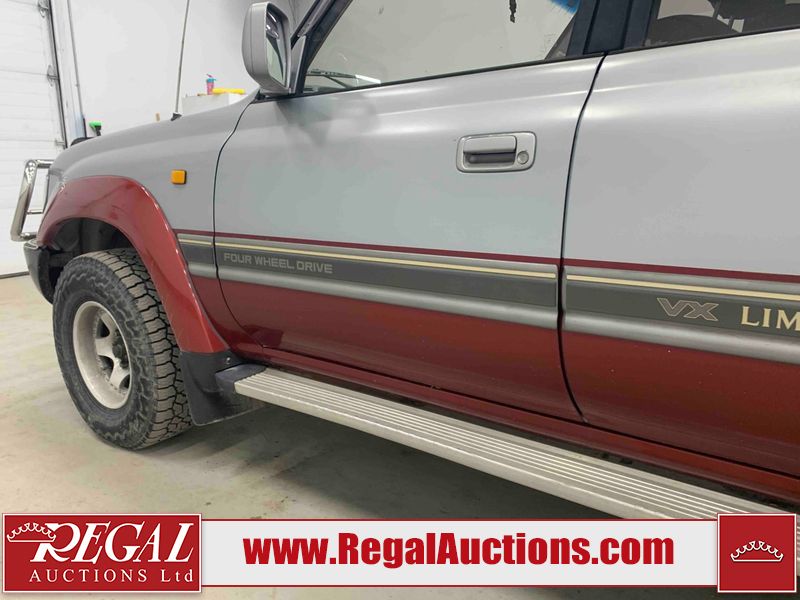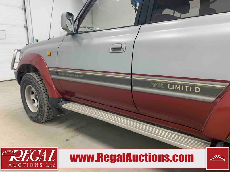 This 1990 TOYOTA LAND CRUISER VX LIMITED 4D UTILITY RHD 4WD is powered by a 4.0 liter 6-cylinder gasoline engine and an automatic transmission. It is equipped with four-wheel drive. The SUV has seats for 7 people. The vehicle has high-value options, including a sunroof, power seats, and heated seats. The body looks to be in rough condition overall. There is a fair amount of paint fade on the hood, roof, left front fender, and right front fender. There is noteworthy paint peeling on the hood and roof. There is minimal paint peeling on the left front fender and right front fender. There is dent damage on the left rear fender. There is slight rust on the left rear fender and rear door. There are chips in many areas around the body. There are scratches in many areas around the body. The interior looks to be in fair condition overall. There are a fair amount of cigarette burns on the driver's seat and passenger seat. The center console is worn. The windshield is chipped. The tires are all worn. This SUV is being sold by an automotive broker. Regal Auctions Ltd. makes no guarantee or warranty, either express or implied, with respect to the data provided in this report. The information has been provided from the consignor and from sources generally believed to be reliable, however the accuracy of this information cannot be guaranteed by Regal Auctions.