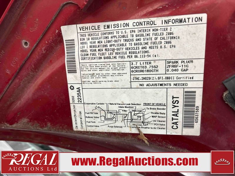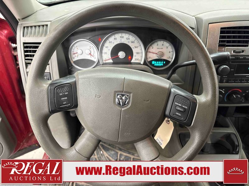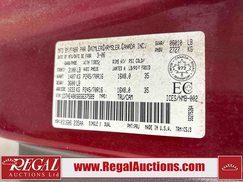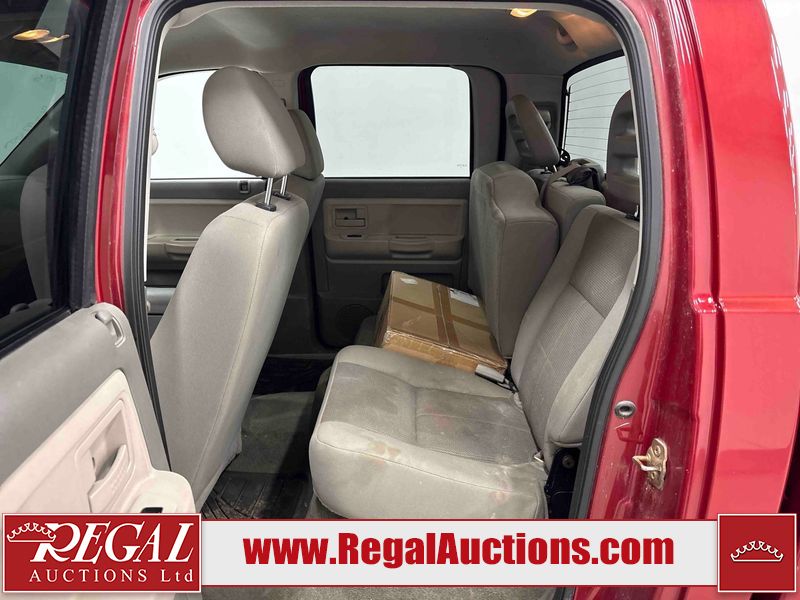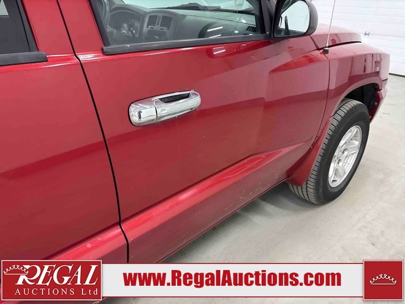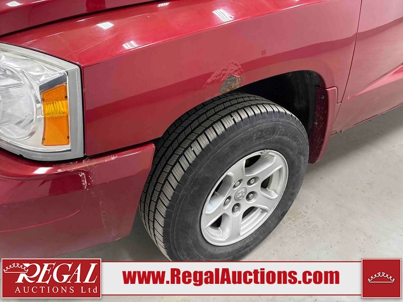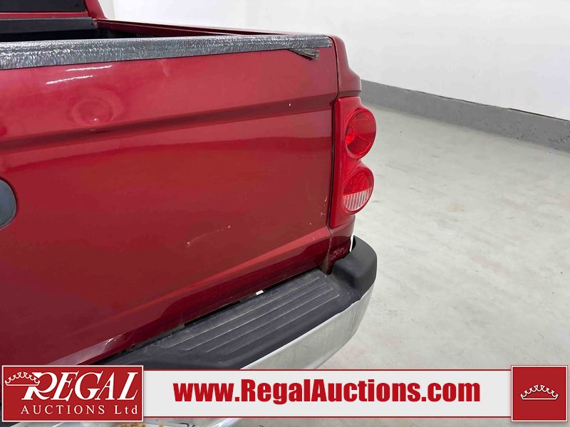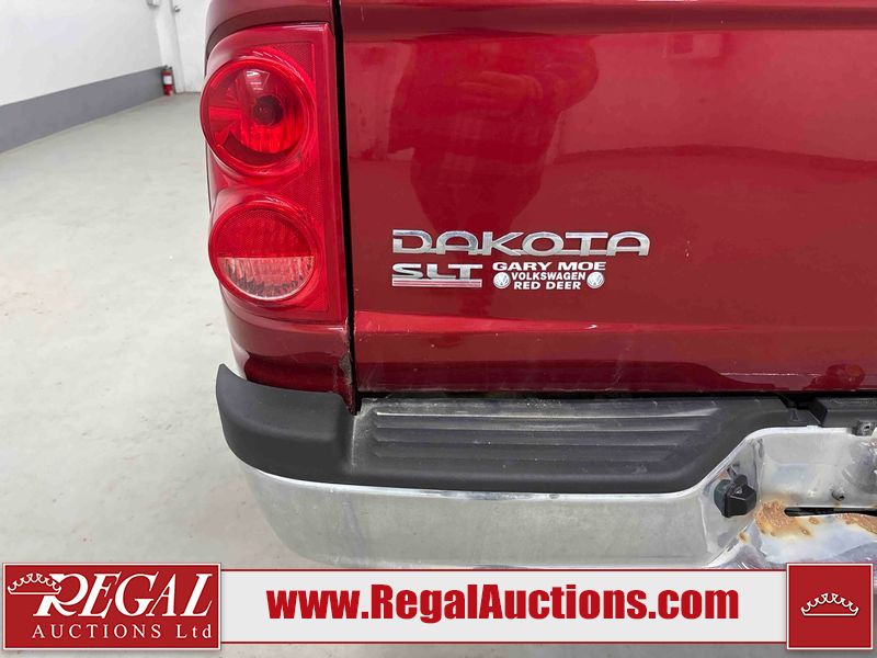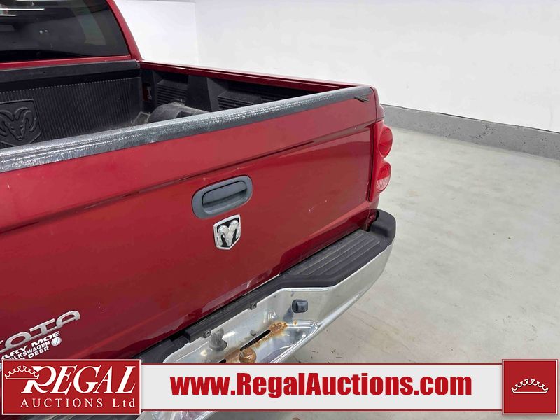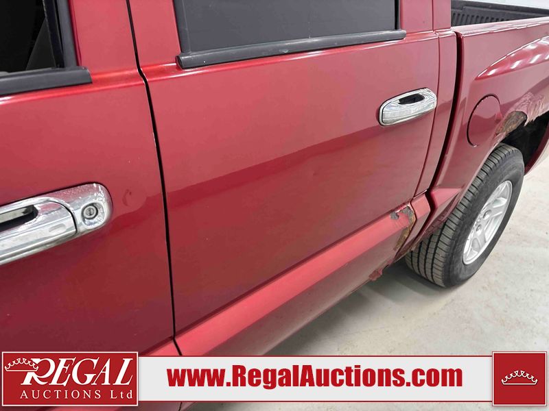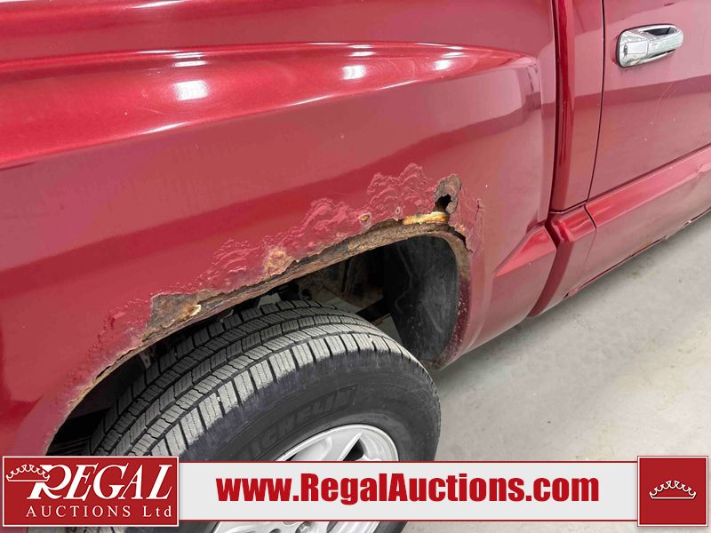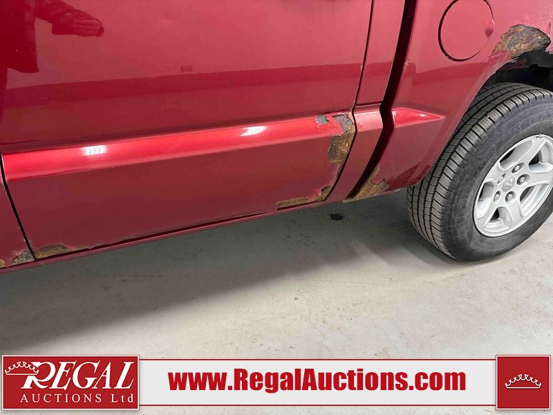 This 2006 DODGE DAKOTA SLT CREW is powered by a 3.7 liter 6-cylinder gasoline engine and an automatic transmission. It is a two-wheel drive model. The truck has seats for 5 people. The mileage is average considering the truck's age. The body looks to be in rough condition overall. There is severe hail on the roof. There is severe rust on the left front fender, left front door, left rear door, left rear fender, and right rear fender. There is noteworthy hail on the hood. There is a fair amount of rust on the right rear door. There are slight scratches on the front bumper and hood. There is minimal paint peeling on the front bumper. There is minimal rust on the tailgate. There are slight chips on the right rear door. There is dent damage on the right rear door. There are chips in many areas around the body. There are scratches in many areas around the body. There is dent damage on the tailgate. The interior looks to be in good condition overall. The windshield is cracked. All of the tires have lots of tread remaining. This truck is being sold by a private individual. Regal Auctions Ltd. makes no guarantee or warranty, either express or implied, with respect to the data provided in this report. The information has been provided from the consignor and from sources generally believed to be reliable, however the accuracy of this information cannot be guaranteed by Regal Auctions.