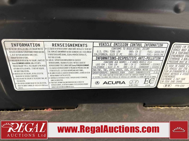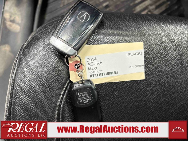 This 2014 ACURA MDX 4D UTILITY is powered by a 3.5 liter 6-cylinder gasoline engine and an automatic transmission. It is equipped with all-wheel drive. The SUV has seats for 5 people. The mileage is average considering the SUV's age. The vehicle has high-value options, including a sunroof, leather upholstery, power seats, heated seats, and a backup camera. The body looks to be in good condition overall. There is minor rust on the left rear fender. There are chips in many areas around the body. There are scratches in many areas around the body. The interior looks to be in good condition overall. The windshield is chipped. The driver's side rear tire is worn. All of the other tires have lots of tread remaining. This SUV is being sold by an automotive broker. Regal Auctions Ltd. makes no guarantee or warranty, either express or implied, with respect to the data provided in this report. The information has been provided from the consignor and from sources generally believed to be reliable, however the accuracy of this information cannot be guaranteed by Regal Auctions.