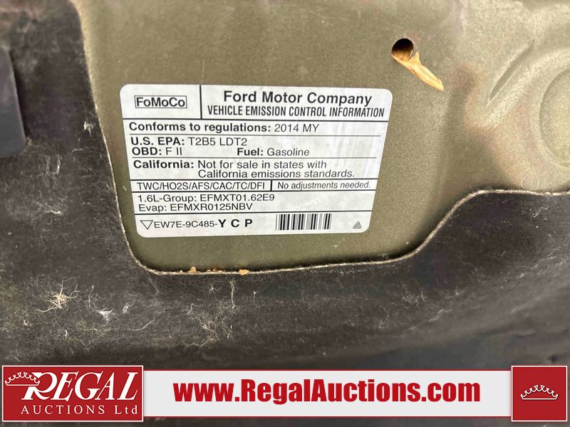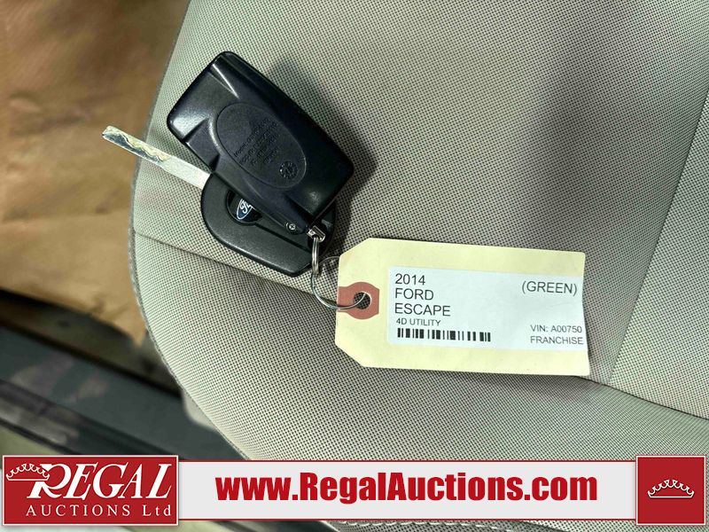 This 2014 FORD ESCAPE 4D UTILITY is powered by a 1.6 liter 4-cylinder gasoline engine and an automatic transmission. It is equipped with four-wheel drive. The SUV has seats for 5 people. The SUV has low mileage for its age. The vehicle has high-value options, including leather upholstery, power seats, and a backup camera. The Check Engine light is on. The body looks to be in good condition overall. There are chips in many areas around the body. There are scratches in many areas around the body. The interior looks to be in good condition overall. The windshield is chipped. All of the tires have lots of tread remaining. This SUV is being sold by a franchise dealership. The vehicle will be sold with the following declarations: Dealership Trade-In (See Footnote 1). Footnotes: 1) This vehicle is being sold on behalf of a franchise dealership. Franchise Dealerships are automotive sales companies who are directly connected to an automotive manufacturer like Ford, Tesla, Honda, BMW, or similar. Regal Auctions Ltd. makes no guarantee or warranty, either express or implied, with respect to the data provided in this report. The information has been provided from the consignor and from sources generally believed to be reliable, however the accuracy of this information cannot be guaranteed by Regal Auctions.
