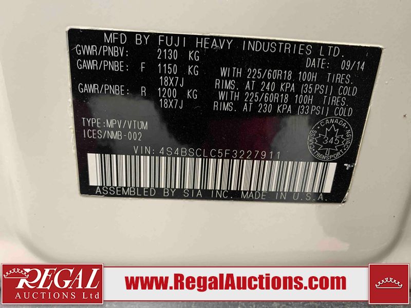 This 2014 SUBARU OUTBACK 4D WAGON is powered by a 2.5 liter 4 cylinder gasoline engine and an automatic transmission. It is equipped with all wheel drive. The SUV has seats for 5 people. The SUV has high mileage for its age. The vehicle has high value options including a sunroof, leather upholstery, power seats, heated seats, and a backup camera. The body looks to be in good condition overall. There is some rust on the left rear fender. There are slight chips on the front bumper and left rear fender. There are scratches on the front bumper and rear bumper. There are chips in many areas around the body. There are scratches in many areas around the body. There is dent damage on the left rear door. The interior looks to be in good condition overall. The driver's seat is torn. The windshield looks to be in good condition. All of the tires have lots of tread remaining. This SUV is being sold by a franchise dealership. The vehicle will be sold with the following declarations: Dealership Trade-In (See Footnote 1). Footnotes: 1) This vehicle is being sold on behalf of a franchise dealership. Franchise Dealerships are automotive sales companies who are directly connected to an automotive manufacturer like Ford, Tesla, Honda, BMW, or similar. Regal Auctions Ltd. makes no guarantee or warranty, either express or implied, with respect to the data provided in this report. The information has been provided from the consignor and from sources generally believed to be reliable, however the accuracy of this information cannot be guaranteed by Regal Auctions.