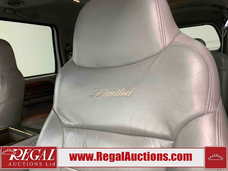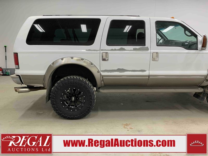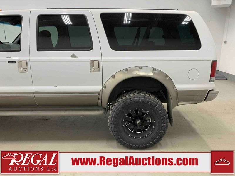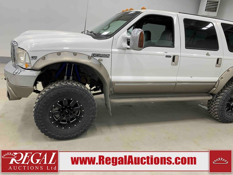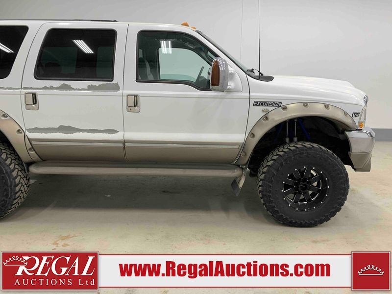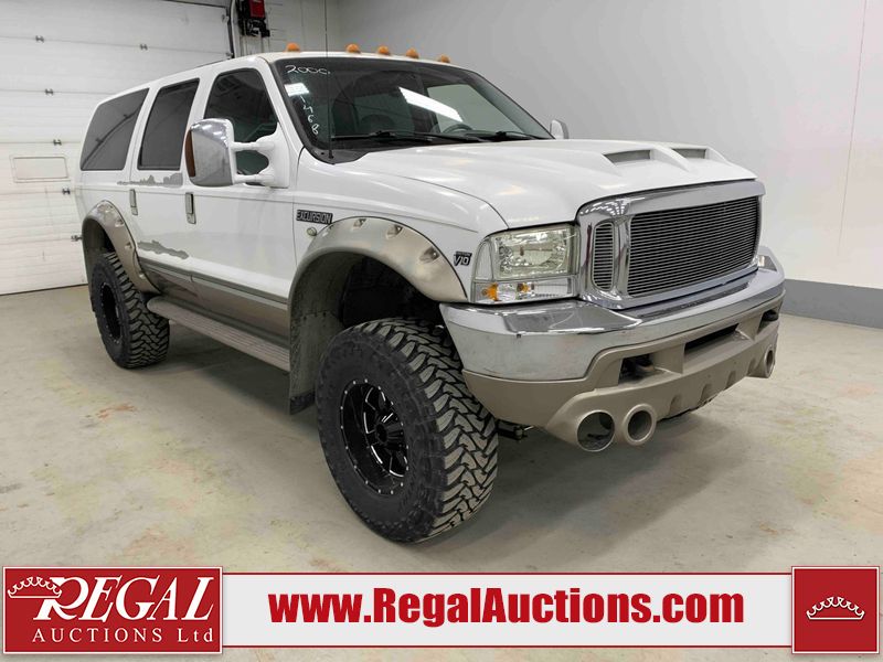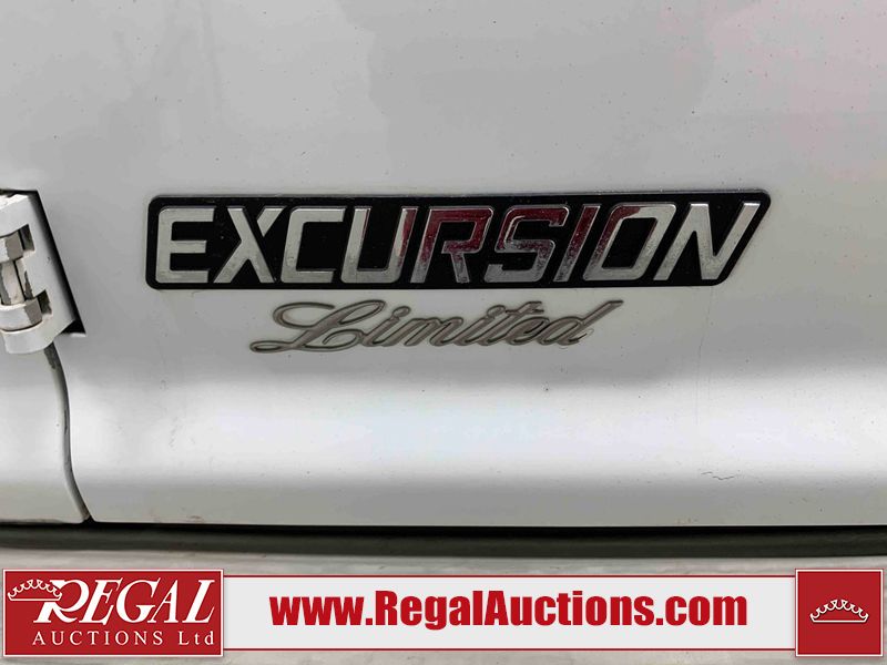 This 2000 FORD EXCURSION LIMITED 4D UTILITY 4WD is powered by a 6.8 liter 10 cylinder gasoline engine and an automatic transmission. It is equipped with four wheel drive. The SUV has seats for 8 people. The SUV has low mileage for its age. LIMITED is a very popular trim level. The vehicle has high value options including leather upholstery, power seats, heated seats, and navigation. The body looks to be in fair condition overall. There is extensive paint peeling on the right rear door. There is some paint fade on the hood and roof. There is a fair amount of rust on the roof. There is noteworthy paint peeling on the left rear door and right rear fender. There are incidental chips on the front bumper. There are scratches on the left front fender and rear bumper. There is incidental paint peeling on the left front door. There are scratches in many areas around the body. There are chips in many areas around the body. The interior looks to be in good condition overall. The driver's seat is worn. The windshield looks to be in good condition. All of the tires have lots of tread remaining. The left front centercap is missing. The right front centercap is missing. This SUV is being sold by a private individual. The vehicle will be sold with the following declarations: Auctioneer Announcement "*LIFT KIT INSTALLED* *AFTERMARKET STEREO* ". Regal Auctions Ltd. makes no guarantee or warranty, either express or implied, with respect to the data provided in this report. The information has been provided from the consignor and from sources generally believed to be reliable, however the accuracy of this information cannot be guaranteed by Regal Auctions.