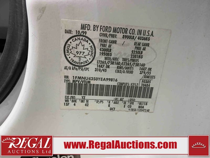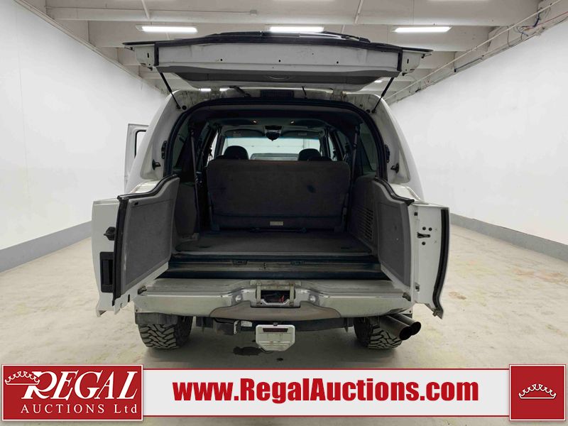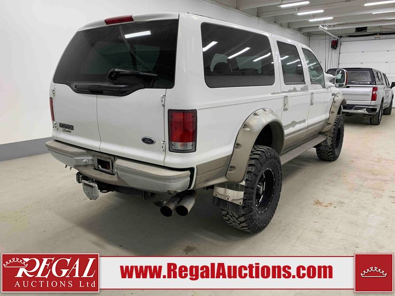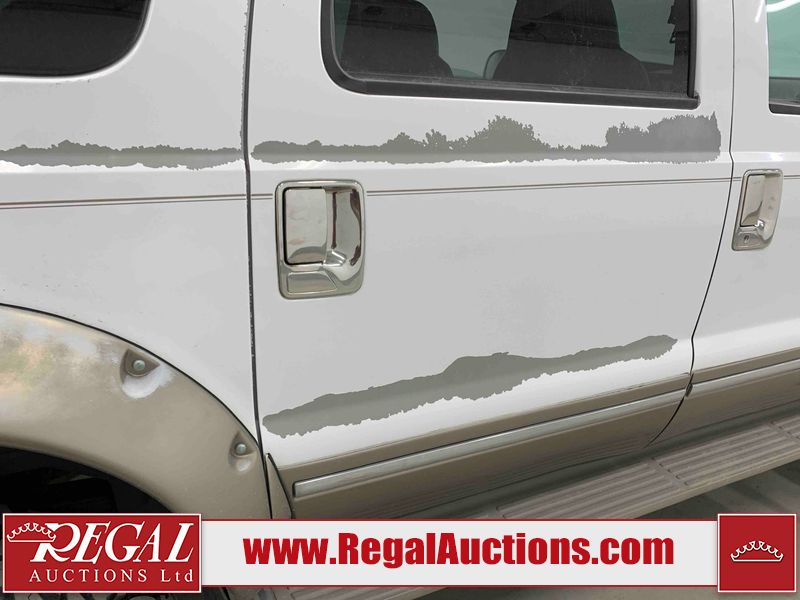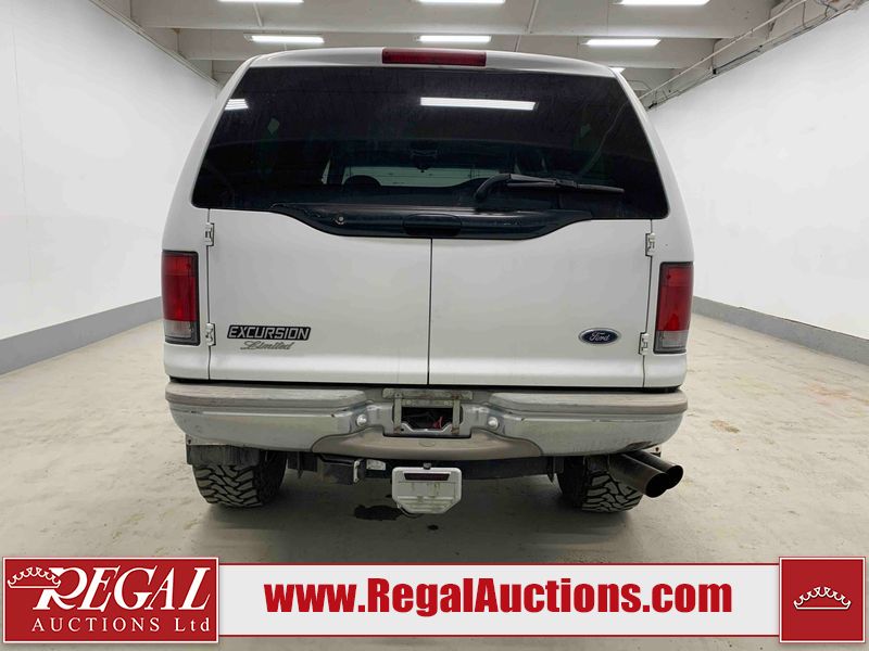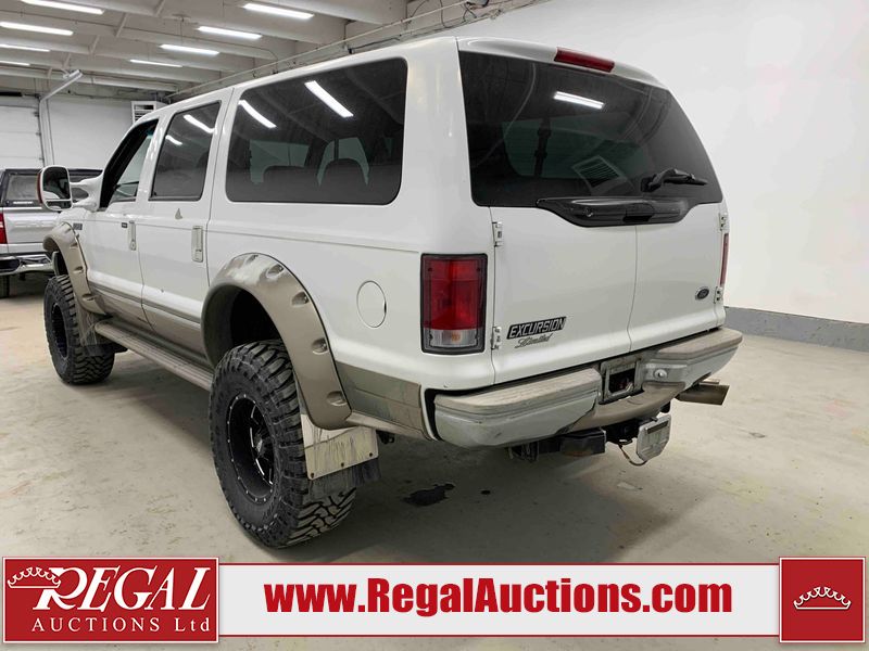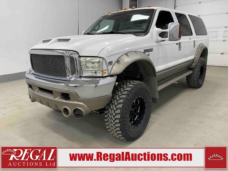 This 2000 FORD EXCURSION LIMITED 4D UTILITY 4WD is powered by a 6.8 liter 10 cylinder gasoline engine and an automatic transmission. It is equipped with four wheel drive. The SUV has seats for 8 people. The SUV has low mileage for its age. LIMITED is a very popular trim level. The vehicle has high value options including leather upholstery, power seats, heated seats, and navigation. The body looks to be in fair condition overall. There is extensive paint peeling on the right rear door. There is some paint fade on the hood and roof. There is a fair amount of rust on the roof. There is noteworthy paint peeling on the left rear door and right rear fender. There are incidental chips on the front bumper. There are scratches on the left front fender and rear bumper. There is incidental paint peeling on the left front door. There are scratches in many areas around the body. There are chips in many areas around the body. The interior looks to be in good condition overall. The driver's seat is worn. The windshield looks to be in good condition. All of the tires have lots of tread remaining. The left front centercap is missing. The right front centercap is missing. This SUV is being sold by a private individual. The vehicle will be sold with the following declarations: Auctioneer Announcement "*LIFT KIT INSTALLED* *AFTERMARKET STEREO* ". Regal Auctions Ltd. makes no guarantee or warranty, either express or implied, with respect to the data provided in this report. The information has been provided from the consignor and from sources generally believed to be reliable, however the accuracy of this information cannot be guaranteed by Regal Auctions.