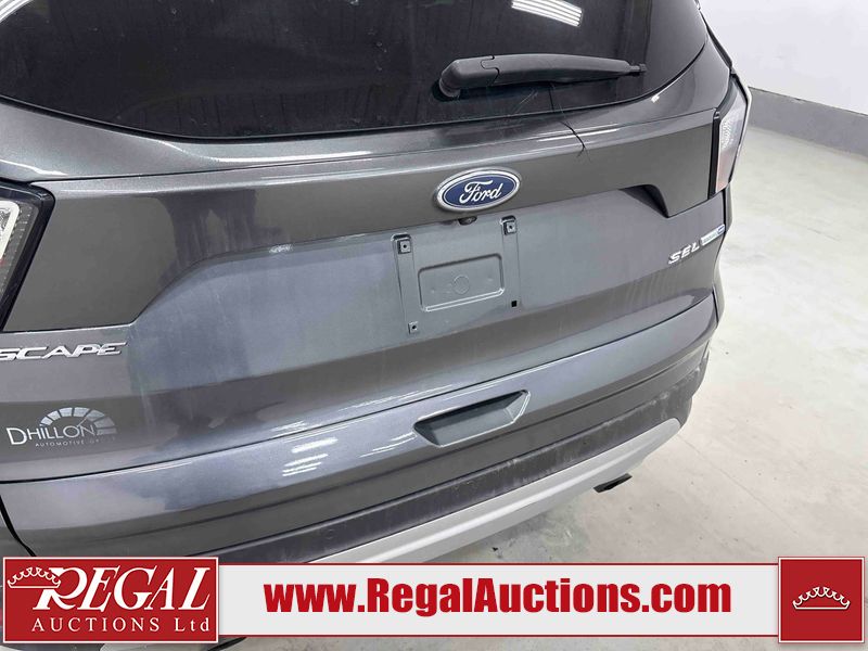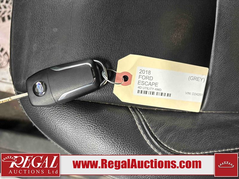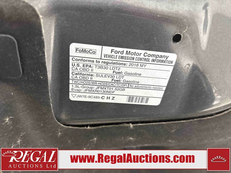 This 2018 FORD ESCAPE 4D UTILITY 4WD is powered by a turbocharged 1.5 liter 4 cylinder gasoline engine and an automatic transmission. It is equipped with four wheel drive. The SUV has seats for 5 people. The SUV has low mileage for its age. The vehicle has high value options including leather upholstery, power seats, and a backup camera. The body looks to be in fair condition overall. The left front fender, left front door, rear door, and right rear fender have been repainted poorly. The front bumper is broken. There are chips in many areas around the body. There are scratches in many areas around the body. The interior looks to be in good condition overall. The windshield is chipped. All of the tires have lots of tread remaining. This SUV is being sold by an automotive broker. The vehicle will be sold with the following declarations: Claims Total $10,000 - $14,999 (See Footnote 1). Footnotes: 1) The vehicle's total recorded insurance claims history is between $10,000 - $14,999. This is the amount of money that was paid out by an insurance company for repairs to cover claims against the vehicle's insurance policy. This information is provided by CarFax. Regal Auctions Ltd. makes no guarantee or warranty, either express or implied, with respect to the data provided in this report. The information has been provided from the consignor and from sources generally believed to be reliable, however the accuracy of this information cannot be guaranteed by Regal Auctions.