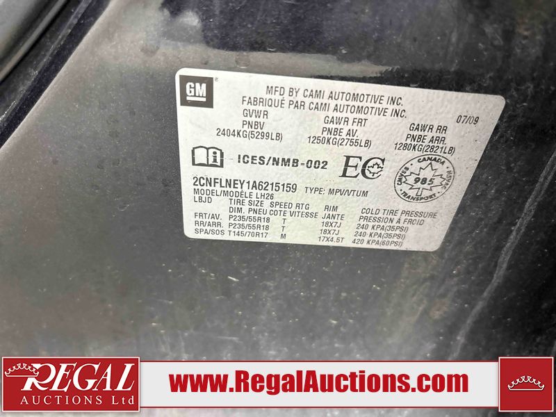 This 2010 CHEVROLET EQUINOX 4D UTILITY is powered by a 3.0 liter 6-cylinder gasoline engine and an automatic transmission. It is equipped with all-wheel drive. The SUV has seats for 5 people. The SUV has high mileage for its age. The Check Engine light is on. The body looks to be in fair condition overall. There is severe rust on the left front fender. The front bumper has drill holes. There is minor rust on the roof and rear door. There are chips in many areas around the body. There are scratches in many areas around the body. There is dent damage in a few areas around the body. The interior looks to be in good condition overall. The windshield is chipped. All of the tires have lots of tread remaining. This SUV is being sold by a franchise dealership. The vehicle will be sold with the following declarations: Claims Total $5000 - $9999 (See Footnote 1) and Dealership Trade-In (See Footnote 2). Footnotes: 1) The vehicle's total recorded insurance claims history is between $5,000 - $9,999. This is the amount of money that was paid out by an insurance company for repairs to cover claims against the vehicle's insurance policy. This information is provided by CarFax. 2) This vehicle is being sold on behalf of a franchise dealership. Franchise Dealerships are automotive sales companies who are directly connected to an automotive manufacturer like Ford, Tesla, Honda, BMW, or similar. Regal Auctions Ltd. makes no guarantee or warranty, either express or implied, with respect to the data provided in this report. The information has been provided from the consignor and from sources generally believed to be reliable, however the accuracy of this information cannot be guaranteed by Regal Auctions.