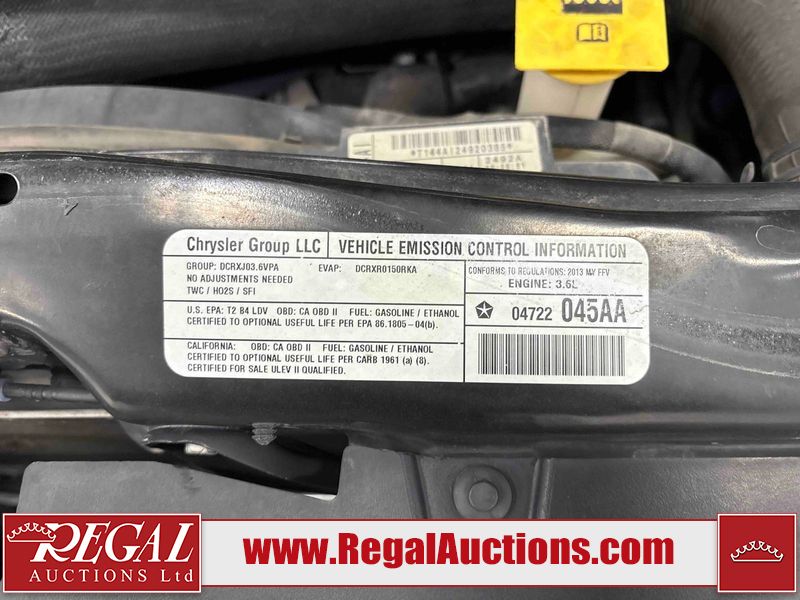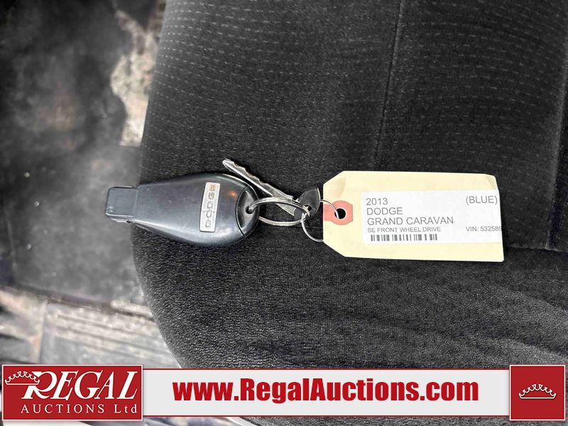 This 2013 DODGE GRAND CARAVAN SE is powered by a 3.6 liter 6-cylinder gasoline engine and an automatic transmission. The van has seats for 7 people. The van has low mileage for its age. The Check Engine light is on. The body looks to be in rough condition overall. There is considerable rust on the left rear fender and right rear fender. There is some rust on the left front door. There is minor dent damage on the front bumper. There is incidental rust on the hood, roof, left front fender, left rear door, rear door, right rear door, and right front door. There are slight scratches on the right rear fender, right rear door, and right front door. There are chips in many areas around the body. There are scratches in many areas around the body. There is dent damage in a few areas around the body. The interior looks to be in good condition overall. The windshield is chipped. All of the tires have lots of tread remaining. This van is being sold by a private individual. Regal Auctions Ltd. makes no guarantee or warranty, either express or implied, with respect to the data provided in this report. The information has been provided from the consignor and from sources generally believed to be reliable, however the accuracy of this information cannot be guaranteed by Regal Auctions.