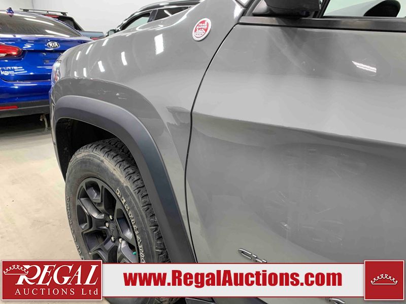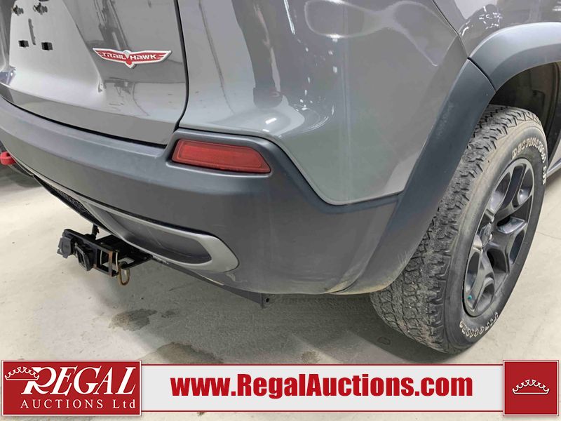 This 2019 JEEP CHEROKEE TRAILHAWK 4D UTILITY 4WD 3.2L is powered by a 6 cylinder gasoline engine and an automatic transmission. It is equipped with four wheel drive. The SUV has seats for 5 people. The mileage is average considering the SUV's age. TRAILHAWK is a very popular trim level. The vehicle has high value options including leather upholstery, power seats, heated seats, and a backup camera. The body looks to be in fair condition overall. There is pronounced hail on the right rear fender. There are minimal chips on the front bumper. There are slight scratches on the hood. There is slight hail on the hood, roof, left front door, left rear door, right rear door, and right front door. There is dent damage on the rear door. There are very minor scratches in many areas around the body. There are very minor chips in many areas around the body. The interior looks to be in fair condition overall. The dashboard, driver's seat, passenger seat, rear seats, and doors are dirty. The carpet is dirty. The windshield is cracked. The tires are all worn.