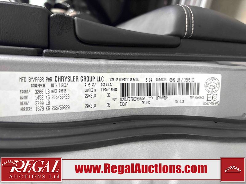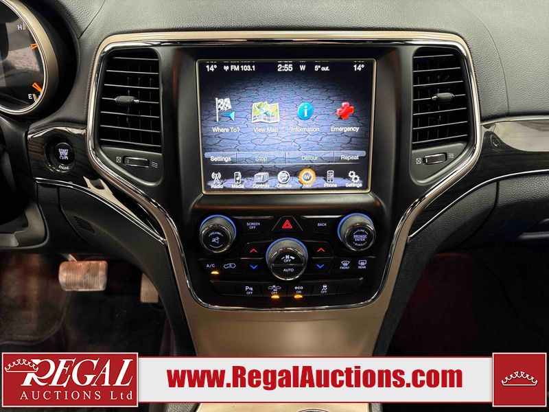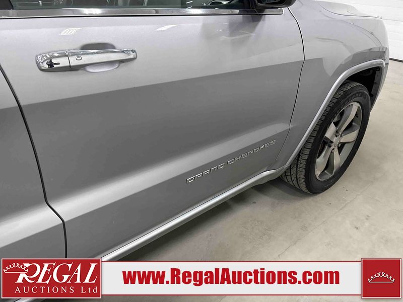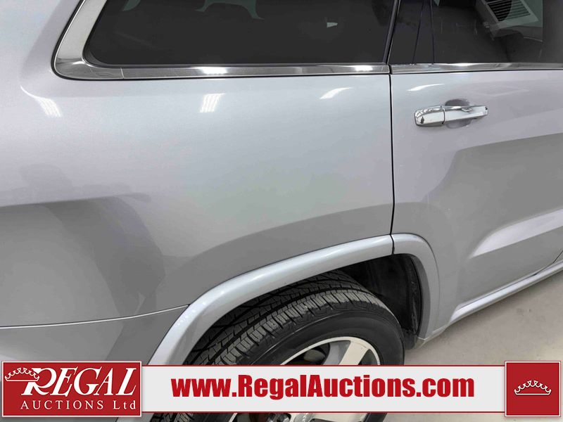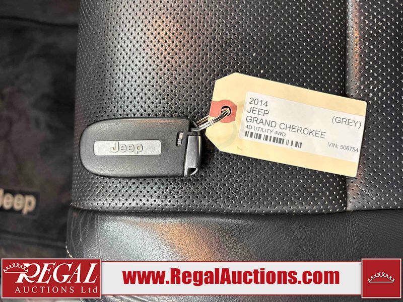 This 2014 JEEP GRAND CHEROKEE 4D UTILITY 4WD is powered by a 8 cylinder gasoline engine and an automatic transmission. It is equipped with four wheel drive. The SUV has seats for 5 people. The SUV has low mileage for its age. The vehicle has high value options including a sunroof, leather upholstery, power seats, navigation, and a backup camera. The Airbag light is on. The body looks to be in fair condition overall. There is minimal rust on the roof. There is slight dent damage on the left rear door. There are minor scratches on the left rear door. There are chips in many areas around the body. There are scratches in many areas around the body. The interior looks to be in good condition overall. The windshield is chipped. All of the tires have lots of tread remaining. This SUV is being sold by an automotive broker. The vehicle will be sold with the following declarations: Hail Damage (See Footnote 1). Footnotes: 1) This vehicle shows signs of damage from a hail storm. Hail damage is not always clearly visible in photographs. Regal Auctions Ltd. makes no guarantee or warranty, either express or implied, with respect to the data provided in this report. The information has been provided from the consignor and from sources generally believed to be reliable, however the accuracy of this information cannot be guaranteed by Regal Auctions.