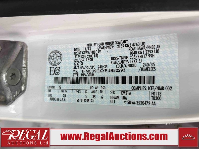 This 2014 FORD ESCAPE 4D UTILITY is powered by a 1.6 liter 4-cylinder gasoline engine and an automatic transmission. It is equipped with four-wheel drive. The SUV has seats for 5 people. The SUV has high mileage for its age. The vehicle has high-value options, including power seats and a backup camera. The Check Engine light is on. The body looks to be in fair condition overall. There is moderate hail on the roof. The right rear fender has been repainted poorly. There are chips on the front bumper, hood, and right rear door. There is hail on the hood and the left rear fender. There is rust on the roof. The right rear door has been repainted poorly. There are scratches in many areas around the body. There are chips in many areas around the body. There is dent damage on the right rear fender. The interior looks to be in good condition overall. The windshield is chipped. The passenger side front tire is nearly bald and should be replaced. The driver's side front tire and the passenger side rear tire are both worn. This SUV is being sold by an automotive broker. Regal Auctions Ltd. makes no guarantee or warranty, either express or implied, with respect to the data provided in this report. The information has been provided from the consignor and from sources generally believed to be reliable, however the accuracy of this information cannot be guaranteed by Regal Auctions.