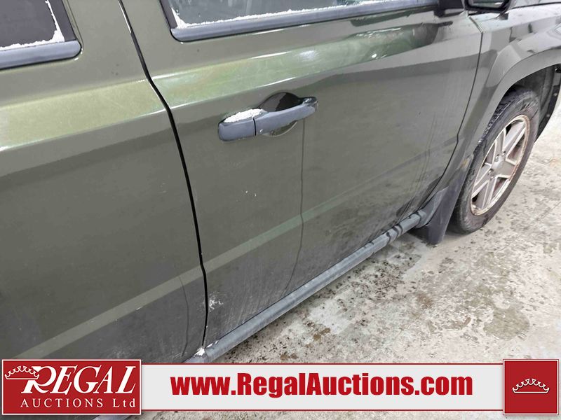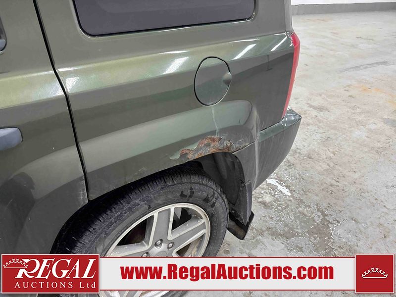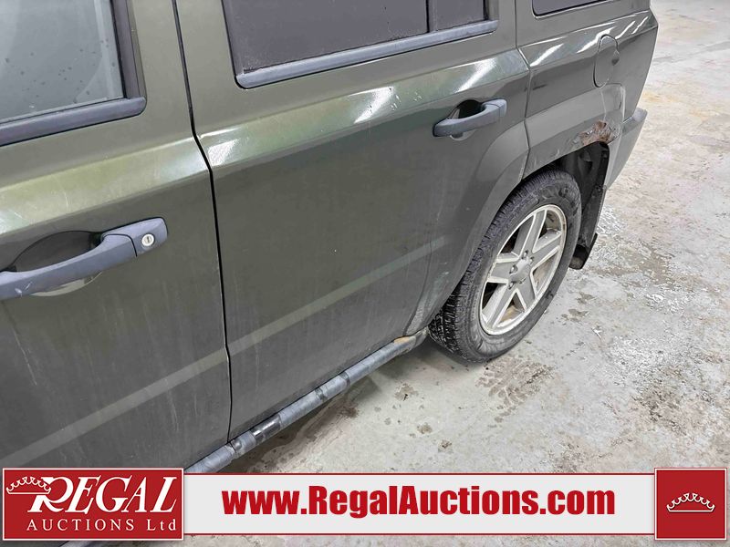 This 2007 JEEP PATRIOT BASE 4D UTILITY is powered by a 2.4 liter 4-cylinder gasoline engine and an automatic transmission. It is equipped with four-wheel drive. The SUV has seats for 5 people. The SUV has high mileage for its age. The Check Engine light is on. The body looks to be in rough condition overall. There is considerable rust on the left rear fender. There is a fair amount of hail on the hood and roof. There is noteworthy rust on the right rear fender, right rear door, and right front fender. There is rust on the hood, roof, left front door, and left rear door. There is hail on the left front fender and rear door. There are incidental scratches on the rear bumper and right rear door. There are chips on the right front fender. There are chips in many areas around the body. There are scratches in many areas around the body. The interior looks to be in good condition overall. There are a fair amount of cigarette burns on the driver's seat. The windshield is cracked. The front tires are nearly bald and should be replaced. The rear tires have lots of tread. This SUV is being sold by a franchise dealership. The vehicle will be sold with the following declarations: Dealership Trade-In (See Footnote 1) and Hail Damage (See Footnote 2). Footnotes: 1) This vehicle is being sold on behalf of a franchise dealership. Franchise Dealerships are automotive sales companies who are directly connected to an automotive manufacturer like Ford, Tesla, Honda, BMW, or similar. 2) This vehicle shows signs of damage from a hail storm. Hail damage is not always clearly visible in photographs. Regal Auctions Ltd. makes no guarantee or warranty, either express or implied, with respect to the data provided in this report. The information has been provided from the consignor and from sources generally believed to be reliable, however the accuracy of this information cannot be guaranteed by Regal Auctions.
