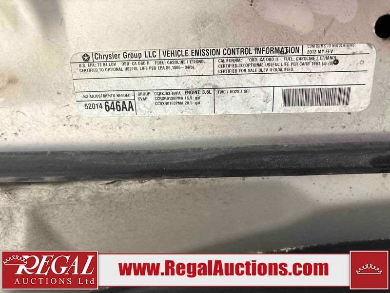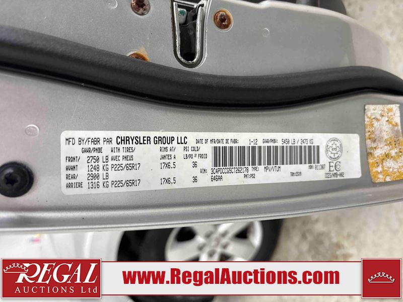 This 2012 DODGE JOURNEY SXT 4D UTILITY is powered by a 3.6 liter 6-cylinder gasoline engine and an automatic transmission. It is a two-wheel drive model. The SUV has seats for 7 people. The SUV has low mileage for its age. The vehicle has high-value options, including a sunroof. The Tire Pressure light is on. The body looks to be in fair condition overall. The front bumper is broken. There are slight scratches on the front bumper, rear bumper, and right rear fender. There are chips in many areas around the body. There are scratches in many areas around the body. There is dent damage on the hood. The interior looks to be in good condition overall. The windshield has some scratches. The passenger side front tire is nearly bald and should be replaced. The driver's side front tire is worn. The rear tires have lots of tread remaining. This SUV is being sold by an automotive broker. The vehicle will be sold with the following declarations: Out of Province - AB OVERRIDE (See Footnote 1). Footnotes: 1) Out of province inspection for registering the vehicle in Alberta has been completed. Regal Auctions Ltd. makes no guarantee or warranty, either express or implied, with respect to the data provided in this report. The information has been provided from the consignor and from sources generally believed to be reliable, however the accuracy of this information cannot be guaranteed by Regal Auctions.