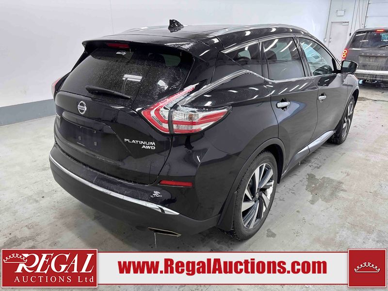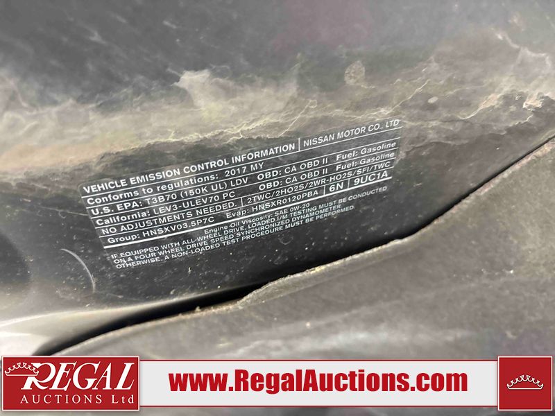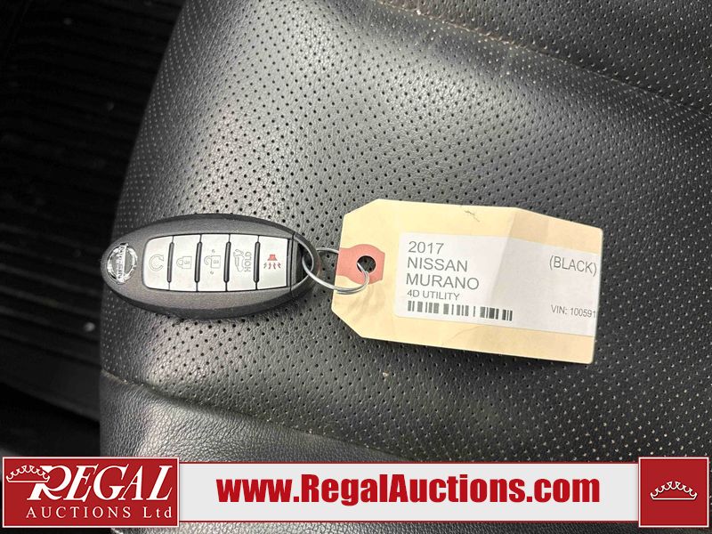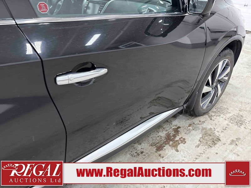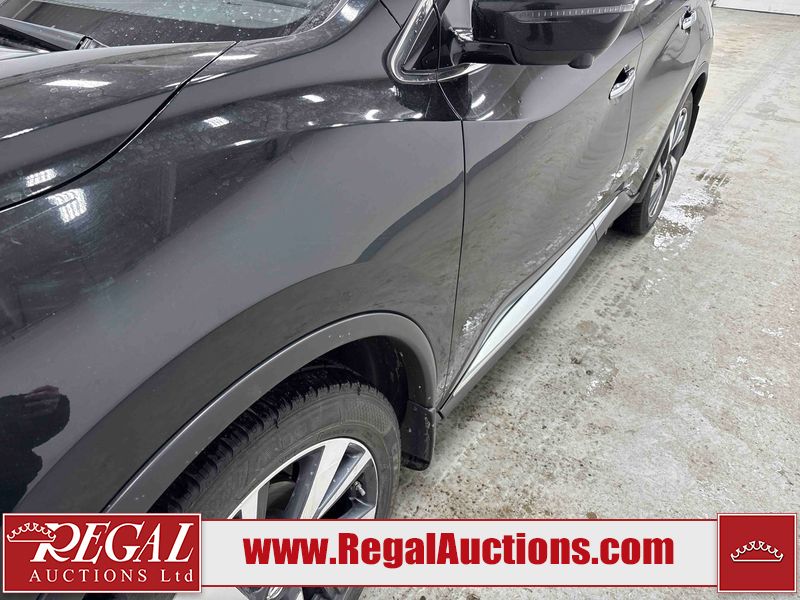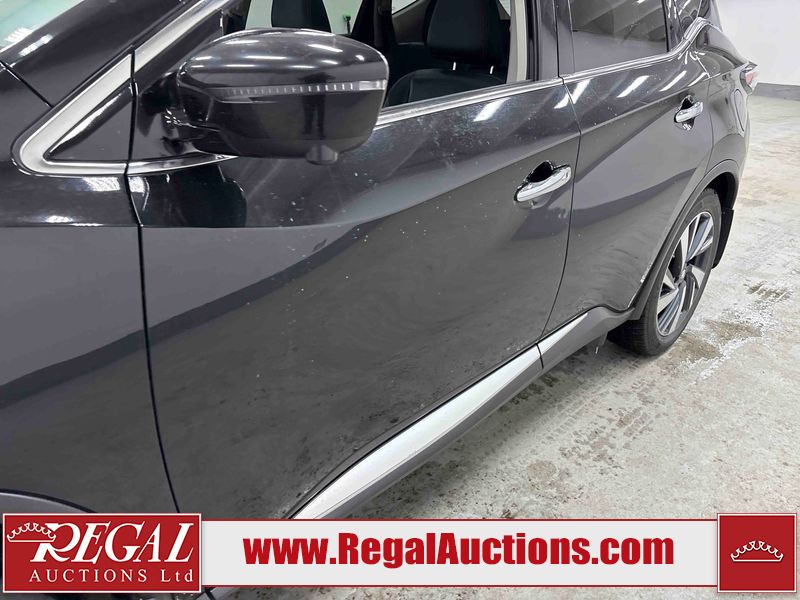 This 2017 NISSAN MURANO 4D UTILITY is powered by a 3.5 liter 6-cylinder gasoline engine and an automatic transmission. It is equipped with all-wheel drive. The SUV has seats for 5 people. The SUV has low mileage for its age. The vehicle has high-value options including leather upholstery, power seats, and navigation. The General light is on. The body looks to be in good condition overall. There is minimal rust on the roof. There are chips in many areas around the body. There are scratches in many areas around the body. The interior looks to be in good condition overall. The windshield is chipped. The passenger front tire is worn. The rest of the tires all have lots of tread remaining. This SUV is being sold by an automotive broker. The vehicle will be sold with the following declarations: Claims Total $1000 - $2999 (See Footnote 1). Footnotes: 1) The vehicle's total recorded insurance claims history is between $1,000 - $2,999. This is the amount of money that was paid out by an insurance company for repairs to cover claims against the vehicle's insurance policy. This information is provided by CarFax. Regal Auctions Ltd. makes no guarantee or warranty, either express or implied, with respect to the data provided in this report. The information has been provided from the consignor and from sources generally believed to be reliable, however the accuracy of this information cannot be guaranteed by Regal Auctions.