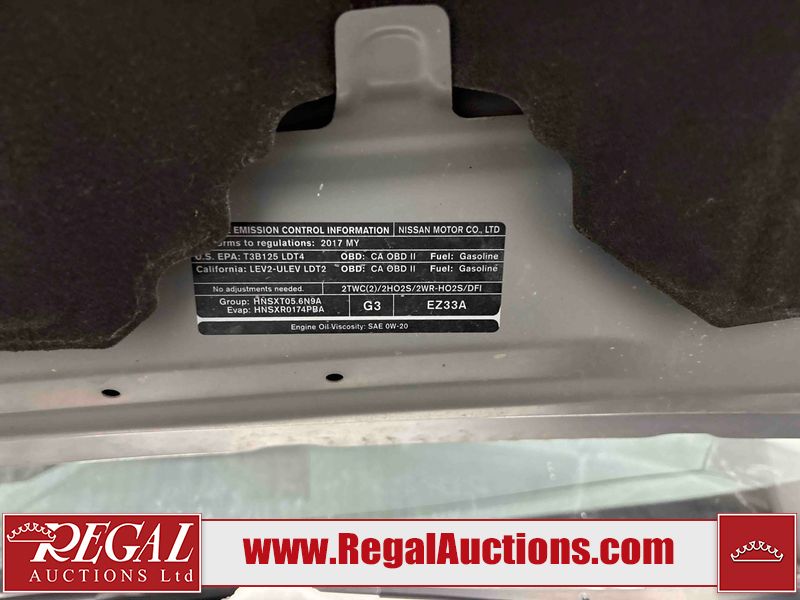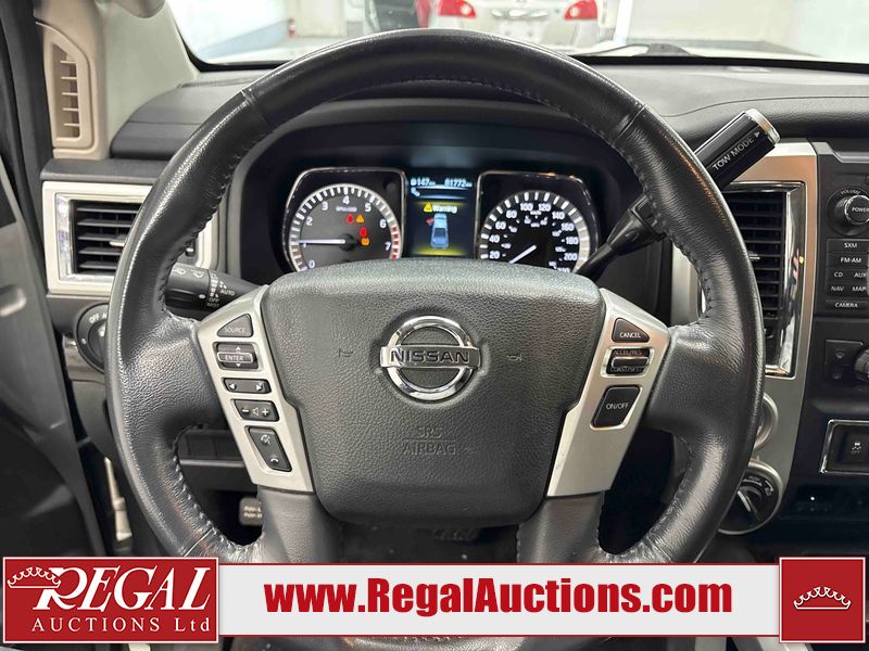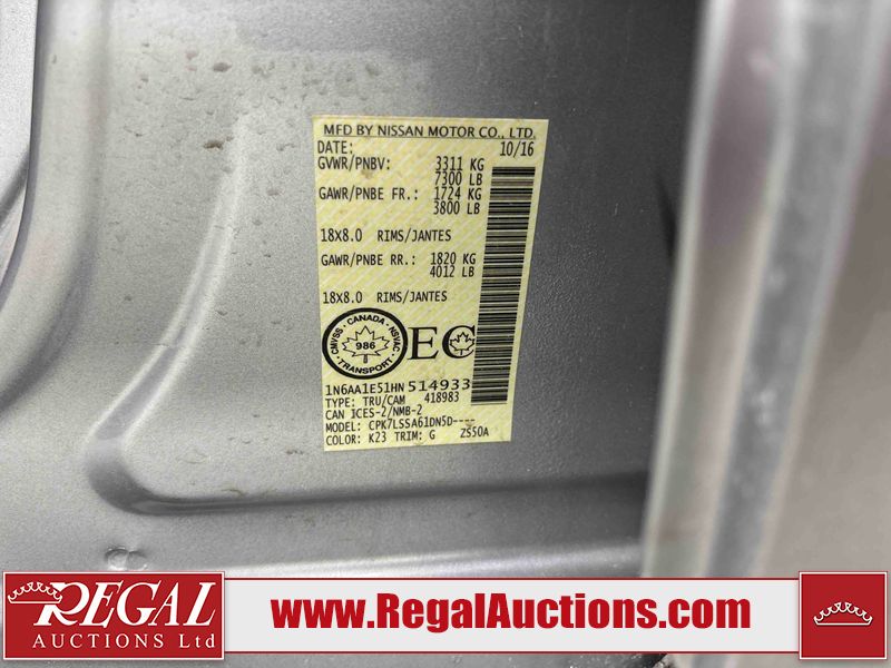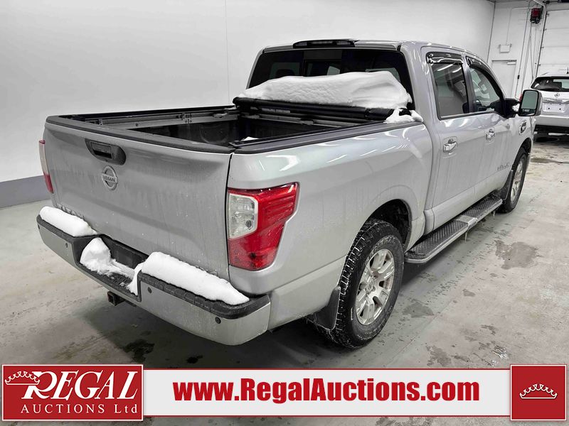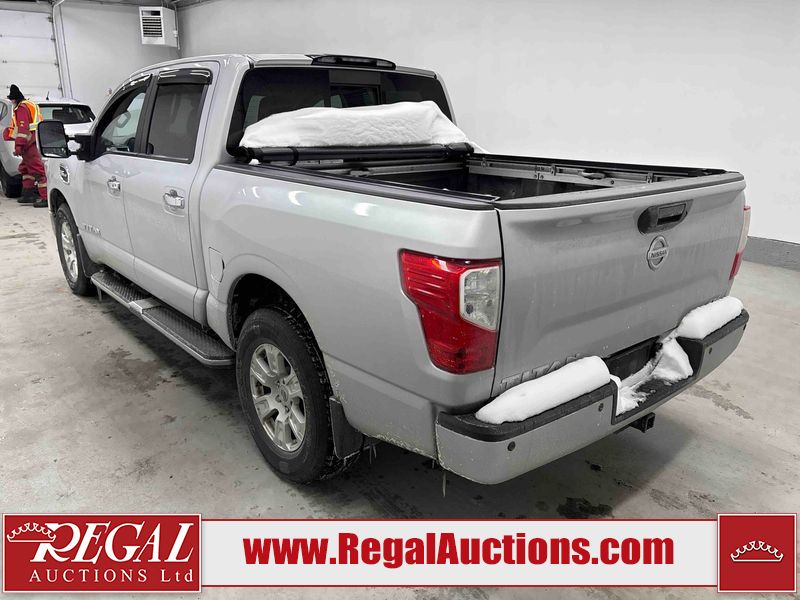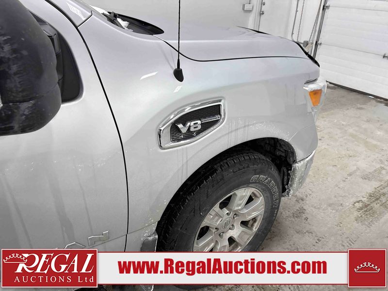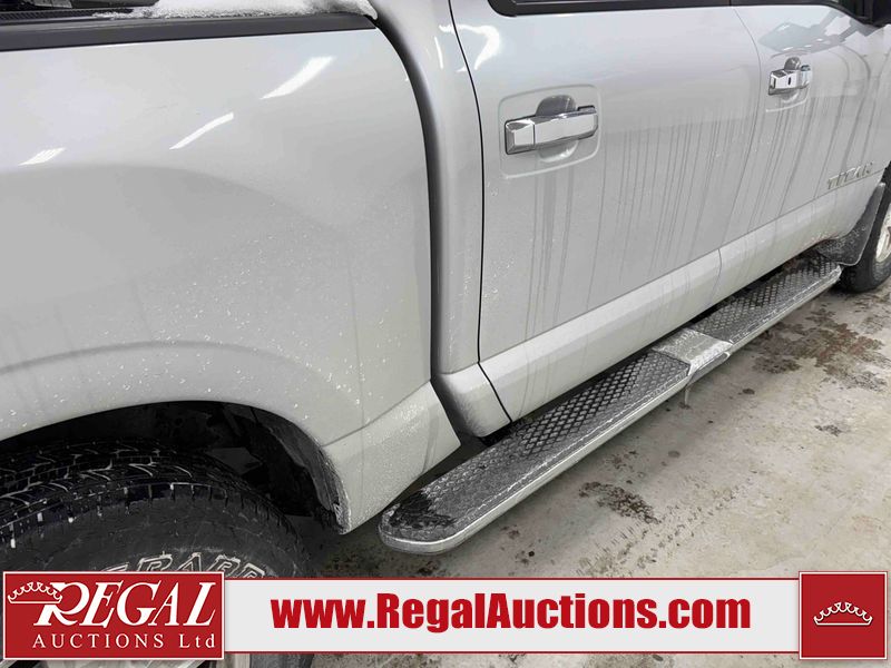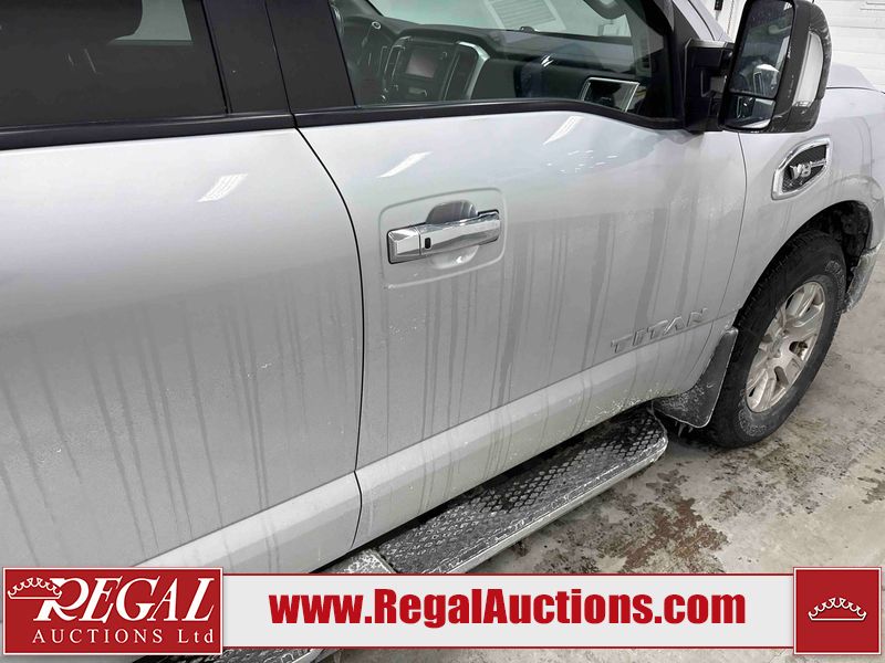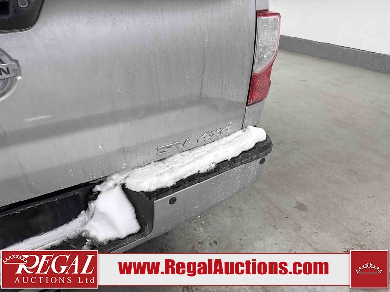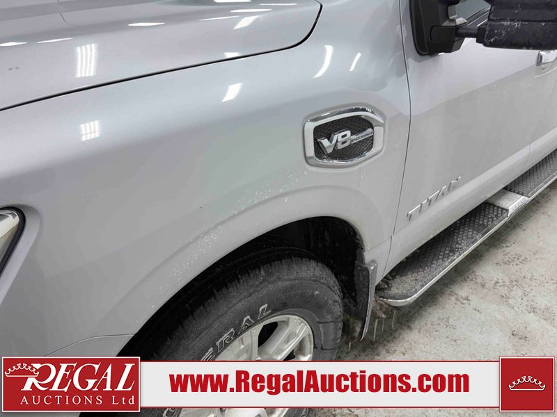 This 2017 NISSAN TITAN SV CREW CAB is powered by a 5.6 liter 8-cylinder gasoline engine and an automatic transmission. It is equipped with four-wheel drive. The truck has seats for 5 people. The vehicle has high-value options, including power seats, heated seats, navigation, and a backup camera. The General and Tire Pressure lights are on. The body looks to be in good condition overall. There is rust on the roof. There are minor scratches on the right rear fender. There are chips in many areas around the body. There are scratches in many areas around the body. The interior looks to be in good condition overall. The windshield is chipped. All of the tires have lots of tread remaining. This truck is being sold by a franchise dealership. The vehicle will be sold with the following declarations: Dealership Trade-In (See Footnote 1). Footnotes: 1) This vehicle is being sold on behalf of a franchise dealership. Franchise Dealerships are automotive sales companies who are directly connected to an automotive manufacturer like Ford, Tesla, Honda, BMW, or similar. Regal Auctions Ltd. makes no guarantee or warranty, either express or implied, with respect to the data provided in this report. The information has been provided from the consignor and from sources generally believed to be reliable, however the accuracy of this information cannot be guaranteed by Regal Auctions.