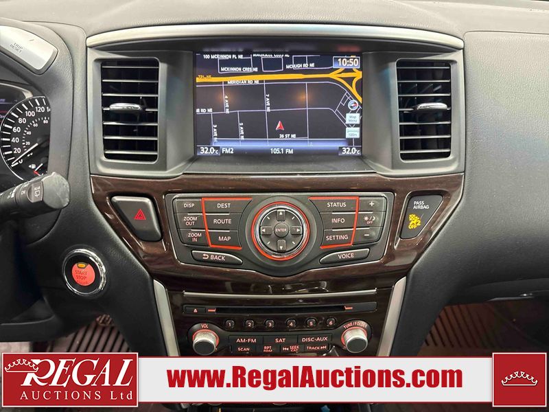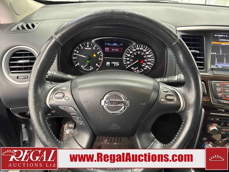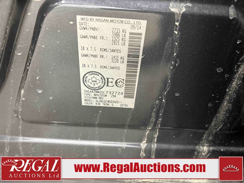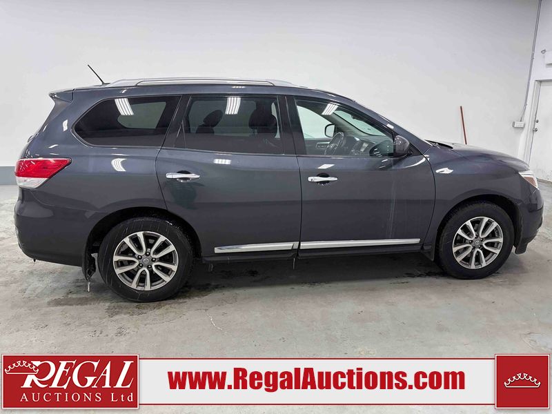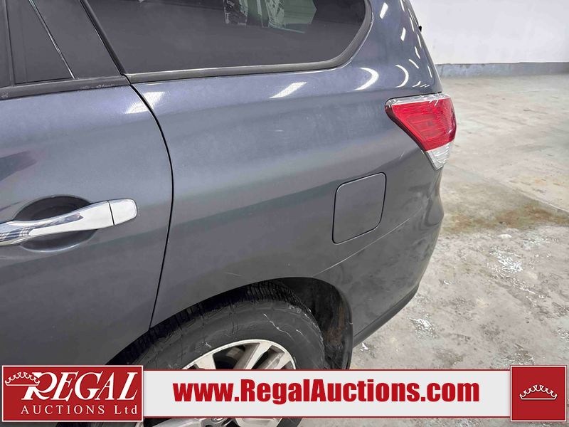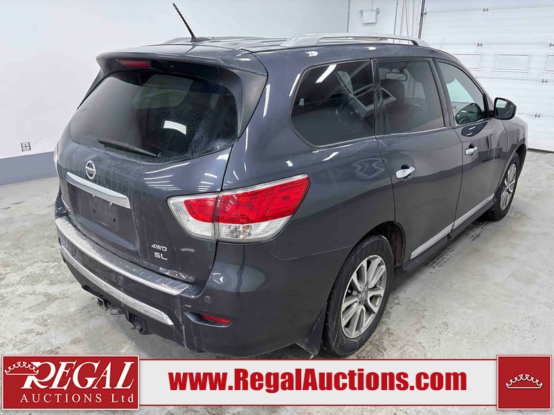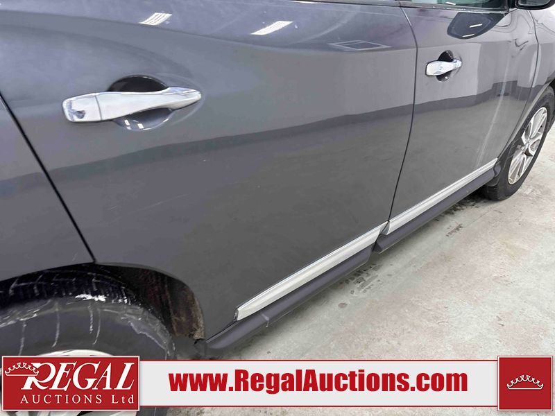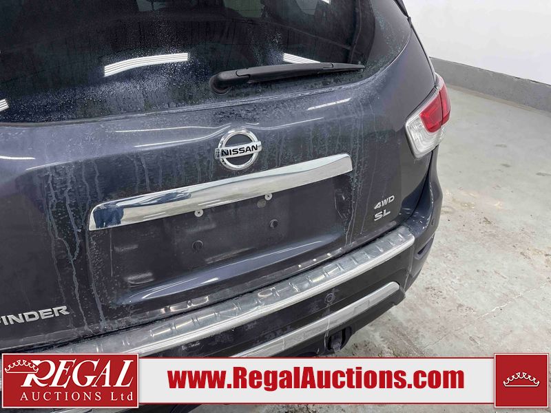 This 2014 NISSAN PATHFINDER SL 4D UTILITY 4WD is powered by a 3.5 liter 6-cylinder gasoline engine and an automatic transmission. It is equipped with four-wheel drive. The SUV has seats for 7 people. The SUV has low mileage for its age. The vehicle has high-value options, including leather upholstery, power seats, heated seats, navigation, and a backup camera. The body looks to be in fair condition overall. The front bumper is broken. The hood, left front fender, and right front fender have been repainted poorly. There are chips on the hood. There is minor dent damage on the left front fender. There are scratches on the left front door, left rear door, left rear fender, right rear fender, right rear door, and right front door. There are chips in many areas around the body. There are scratches in many areas around the body. There is dent damage on the left rear door. The interior looks to be in good condition overall. The windshield is chipped. The driver's side rear tire is nearly bald and should be replaced. The driver's side front tire and the passenger side rear tire are both worn. This SUV is being sold by an automotive broker. The vehicle will be sold with the following declarations: Out of Province (See Footnote 1), Out of Province - AB OVERRIDE (See Footnote 2), Claims Total $15,000 - $19,999 (See Footnote 3), and Out of Province - BC (See Footnote 4). Footnotes: 1) The vehicle's last jurisdiction of registration is not Alberta. The purchaser must have the vehicle undergo and pass an Out of Province inspection before it can be registered in Alberta. 2) Out of province inspection for registering the vehicle in Alberta has been completed. 3) The vehicle's total recorded insurance claims history is between $15,000 - $19,999. This is the amount of money that was paid out by an insurance company for repairs to cover claims against the vehicle's insurance policy. This information is provided by CarFax. 4) The vehicle's last registered jurisdiction is British Columbia. The purchaser must have the vehicle undergo and pass an Out of Province inspection before it can be registered in Alberta. Regal Auctions Ltd. makes no guarantee or warranty, either express or implied, with respect to the data provided in this report. The information has been provided from the consignor and from sources generally believed to be reliable, however the accuracy of this information cannot be guaranteed by Regal Auctions.