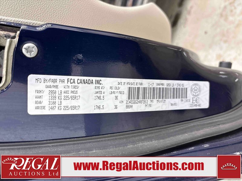 This 2017 DODGE GRAND CARAVAN 4D VAN is powered by a 3.6 liter 6-cylinder gasoline engine and an automatic transmission. The van has seats for 7 people. The mileage is average considering the van's age. The Tire Pressure light is on. The body looks to be in fair condition overall. The front bumper is broken. There is a fair amount of rust on the hood. The rear bumper is cracked. There are incidental chips on the left front fender. There is minor rust on the left front fender. There are minor scratches on the left rear door, left rear fender, rear bumper, rear door, right rear fender, right rear door, and right front door. There are chips in many areas around the body. There are scratches in many areas around the body. There is dent damage on the hood. The interior looks to be in good condition overall. The driver seat is torn. The windshield is cracked. The front tires are nearly bald and should be replaced. The rear tires have lots of tread. This van is being sold by an automotive broker. Regal Auctions Ltd. makes no guarantee or warranty, either express or implied, with respect to the data provided in this report. The information has been provided from the consignor and from sources generally believed to be reliable, however the accuracy of this information cannot be guaranteed by Regal Auctions.