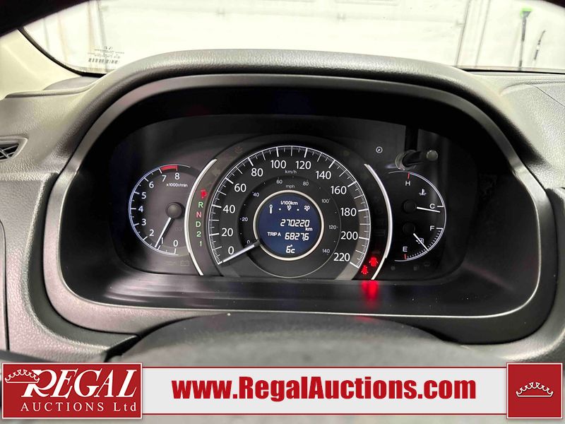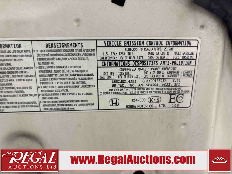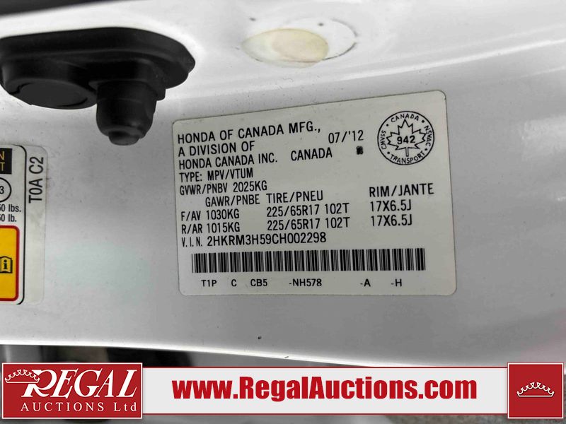 This 2012 HONDA CR-V 4D UTILITY is powered by a 2.4 liter 4 cylinder gasoline engine and an automatic transmission. It is a two wheel drive model. The SUV has seats for 5 people. The SUV has high mileage for its age. The vehicle has high value options including a sunroof, heated seats, and a backup camera. The body looks to be in fair condition overall. The left rear door and right rear door have been repainted poorly. There are scratches on the rear bumper. There are chips in many areas around the body. There are scratches in many areas around the body. There is dent damage on the hood. The interior looks to be in good condition overall. The windshield is chipped. All of the tires have lots of tread remaining. This SUV is being sold by an automotive broker. The vehicle will be sold with the following declarations: Claims Total $5000 - $9999 (See Footnote 1). Footnotes: 1) The vehicle's total recorded insurance claims history is between $5,000 - $9,999. This is the amount of money that was paid out by an insurance company for repairs to cover claims against the vehicle's insurance policy. This information is provided by CarFax. Regal Auctions Ltd. makes no guarantee or warranty, either express or implied, with respect to the data provided in this report. The information has been provided from the consignor and from sources generally believed to be reliable, however the accuracy of this information cannot be guaranteed by Regal Auctions.