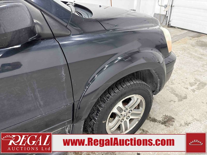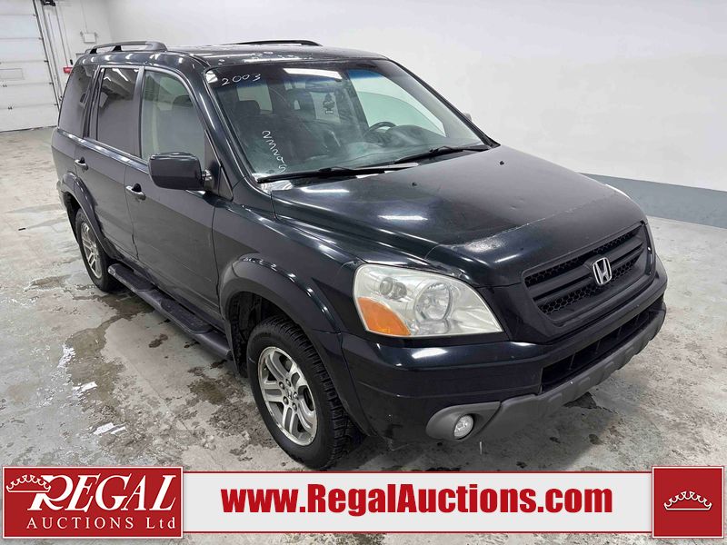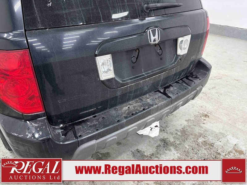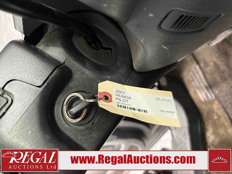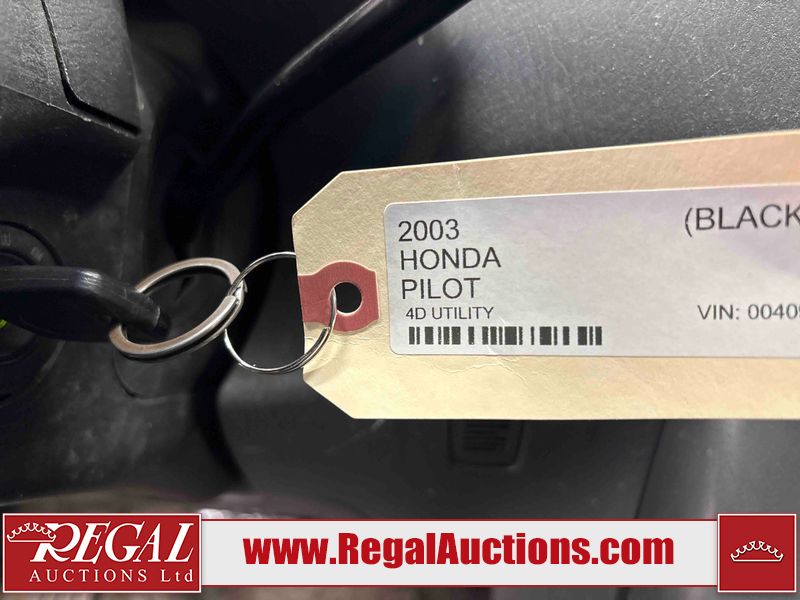 This 2003 HONDA PILOT 4D AWD UTILITY is powered by a 3.5 liter 6 cylinder gasoline engine and an automatic transmission. It is equipped with four wheel drive. The SUV has seats for 8 people. The SUV has high mileage for its age. The vehicle has high value options including leather upholstery and power seats. The Airbag light is on. The body looks to be in rough condition overall. There is noteworthy hail on the hood and roof. There is a fair amount of rust on the roof. The left front fender is cracked. There is noteworthy paint peeling on the rear bumper. The rear bumper is broken. There is noteworthy paint fade on the right rear fender. There are chips on the front bumper. There is paint peeling on the front bumper. There is rust on the left front fender and right front door. There is hail on the left front door and left rear door. There are scratches on the right rear fender. There are scratches in many areas around the body. There are chips in many areas around the body. There is dent damage on the left front fender. The interior looks to be in good condition overall. The driver's seat is broken. The windshield looks to be in good condition. All of the tires have lots of tread remaining. This SUV is being sold by an automotive broker. The vehicle will be sold with the following declarations: Auctioneer Announcement "*KEY STUCK IN IGNITION* *DO NOT LOCK* " and Hail Damage (See Footnote 1). Footnotes: 1) This vehicle shows signs of damage from a hail storm. Hail damage is not always clearly visible in photographs. Regal Auctions Ltd. makes no guarantee or warranty, either express or implied, with respect to the data provided in this report. The information has been provided from the consignor and from sources generally believed to be reliable, however the accuracy of this information cannot be guaranteed by Regal Auctions.