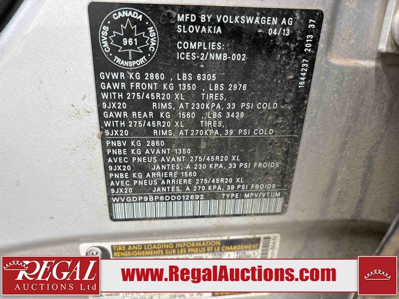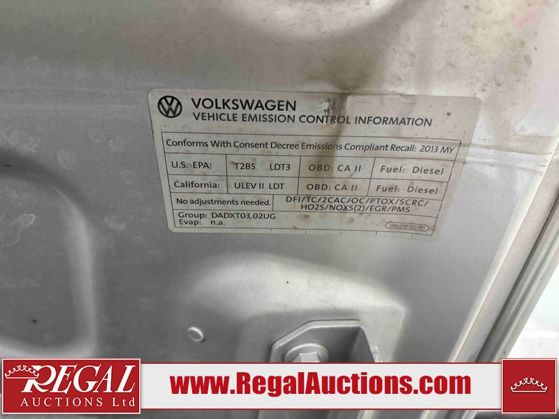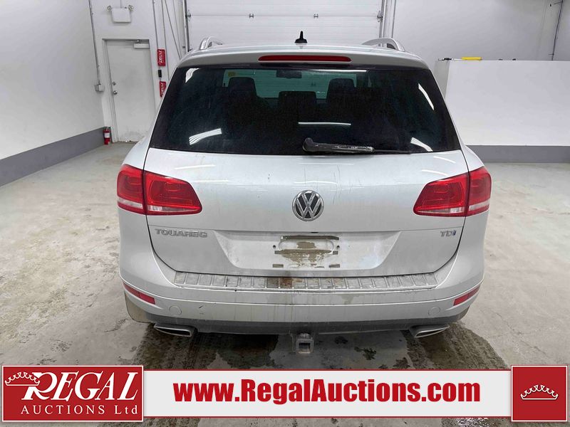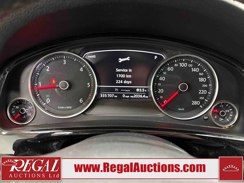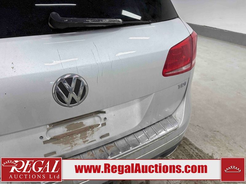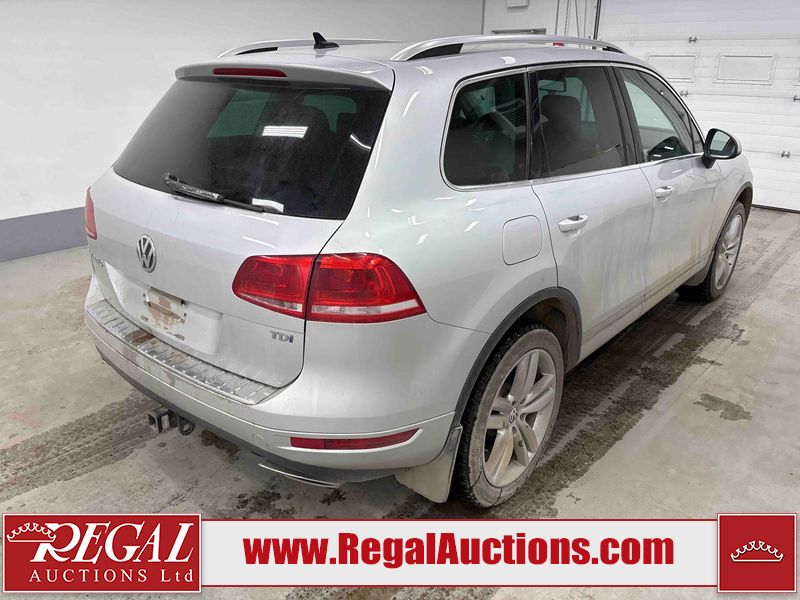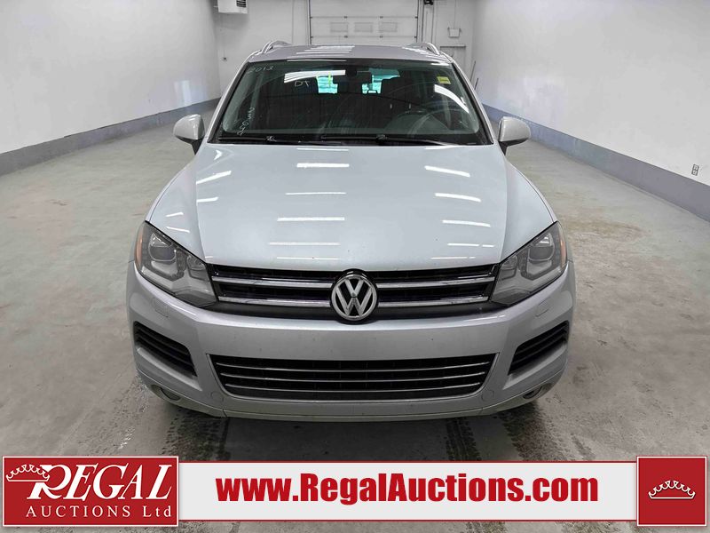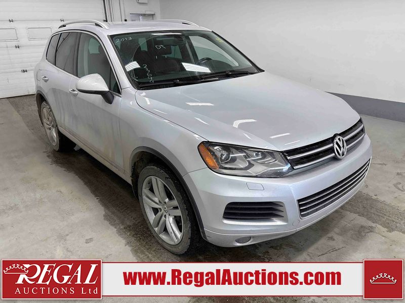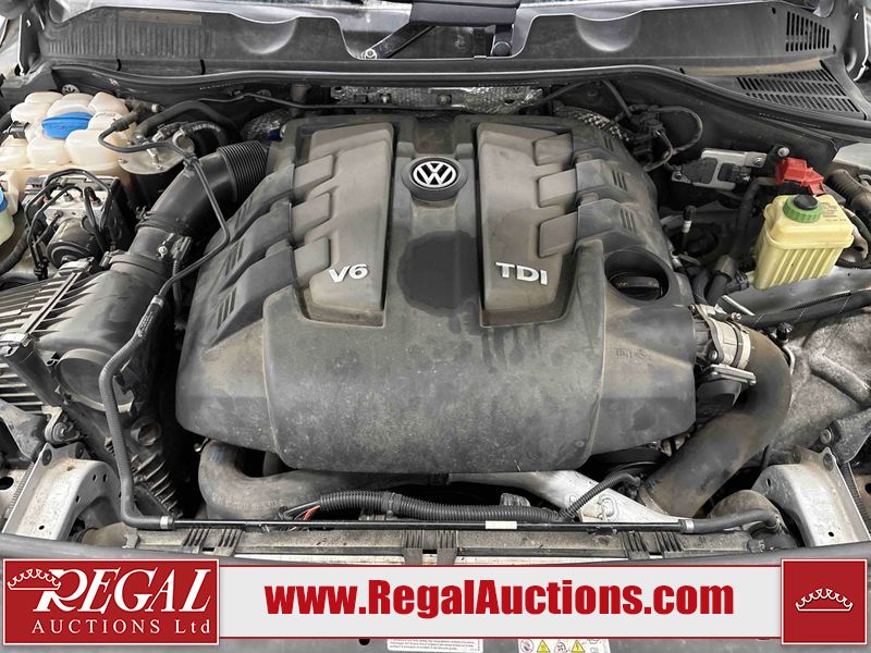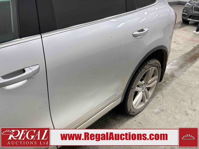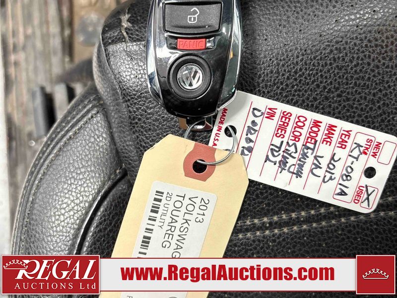 This 2013 VOLKSWAGEN TOUAREG TDI 4D UTILITY is powered by a 3.0 liter 6 cylinder diesel engine and an automatic transmission. It is equipped with four wheel drive. The SUV has seats for 5 people. The SUV has high mileage for its age. The vehicle has high value options including leather upholstery, power seats, heated seats, navigation, and a backup camera. The body looks to be in good condition overall. There is incidental rust on the roof. There are scratches on the left rear fender, rear bumper, and rear door. There are chips in many areas around the body. There are scratches in many areas around the body. There is dent damage in a few areas around the body. The fog lights are broken. The interior looks to be in good condition overall. The windshield is cracked. All of the tires have lots of tread remaining. This SUV is being sold by a franchise dealership. The vehicle will be sold with the following declarations: Dealership Trade-In (See Footnote 1). Footnotes: 1) This vehicle is being sold on behalf of a franchise dealership. Franchise Dealerships are automotive sales companies who are directly connected to an automotive manufacturer like Ford, Tesla, Honda, BMW, or similar. Regal Auctions Ltd. makes no guarantee or warranty, either express or implied, with respect to the data provided in this report. The information has been provided from the consignor and from sources generally believed to be reliable, however the accuracy of this information cannot be guaranteed by Regal Auctions.
