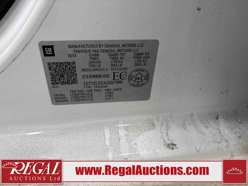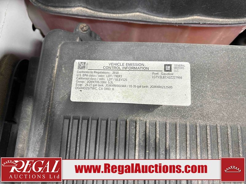 This 2018 GMC SIERRA 1500 DOUBLE CAB is powered by a 5.3 liter 8-cylinder gasoline engine and an automatic transmission. It is equipped with four-wheel drive. The truck has seats for 6 people. The truck has high mileage for its age. The vehicle has high-value options, including a backup camera. The Tire Pressure light is on. The body looks to be in good condition overall. There are scratches on the tailgate. There are chips in many areas around the body. There are scratches in many areas around the body. The interior looks to be in good condition overall. The passenger side mirror housing is broken. The windshield is chipped. All of the tires have lots of tread remaining. This truck is being sold by an automotive broker. Regal Auctions Ltd. makes no guarantee or warranty, either express or implied, with respect to the data provided in this report. The information has been provided from the consignor and from sources generally believed to be reliable, however the accuracy of this information cannot be guaranteed by Regal Auctions.