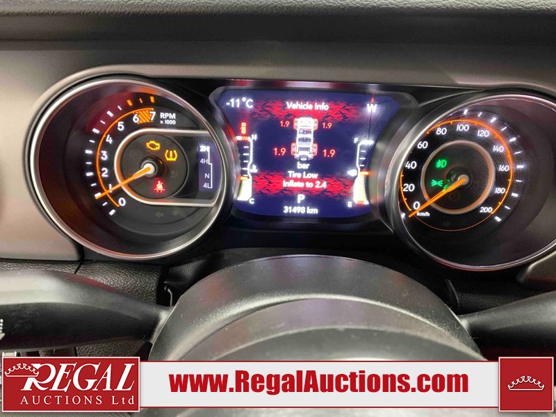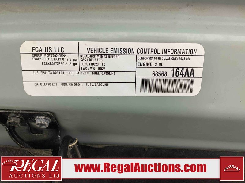 This 2023 JEEP WRANGLER 4D UTILITY 4WD is powered by a turbocharged 2.0 liter 4 cylinder gasoline engine and an automatic transmission. It is equipped with four wheel drive. The SUV has seats for 5 people. The SUV has low mileage for its age. The vehicle has high value options including heated seats, navigation, and a backup camera. The Check Engine light is on. The body looks to be in very good condition overall. There are scratches in many areas around the body. There are chips on the hood. The interior looks to be in good condition overall. The windshield looks to be in good condition. All of the tires have lots of tread remaining. This SUV is being sold by an automotive broker. The vehicle will be sold with the following declarations: Out of Province - ON (See Footnote 1). Footnotes: 1) The vehicle's last registered jurisdiction is Ontario. The purchaser must have the vehicle undergo and pass an Out of Province inspection before it can be registered in Alberta. Regal Auctions Ltd. makes no guarantee or warranty, either express or implied, with respect to the data provided in this report. The information has been provided from the consignor and from sources generally believed to be reliable, however the accuracy of this information cannot be guaranteed by Regal Auctions.