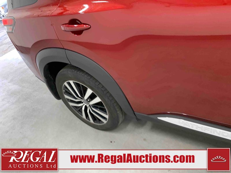 This 2024 NISSAN PATHFINDER PLATINUM 4D UTILITY 4WD 3.5L is powered by a 6 cylinder gasoline engine and an automatic transmission. It is equipped with four wheel drive. The SUV has seats for 7 people. The SUV has low mileage for its age. PLATINUM is a very popular trim level. The vehicle has high value options including a sunroof, leather upholstery, power seats, heated seats, navigation, a backup camera, and a power lift gate. The body looks to be in rough condition overall. There are substantial scratches on the front bumper. There is very bad hail on the hood, roof, left front fender, left front door, left rear door, and left rear fender. There are scratches on the hood and rear bumper. There is slight hail on the right rear fender. There are very minor chips in many areas around the body. There are very minor scratches in many areas around the body. The interior looks to be in fair condition overall. The driver's seat is worn. The dashboard light is flickering. The windshield looks to be in good condition. All of the tires have lots of tread remaining.