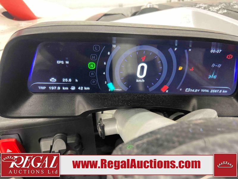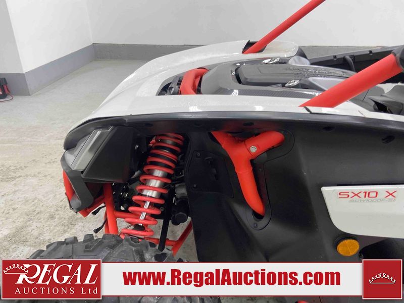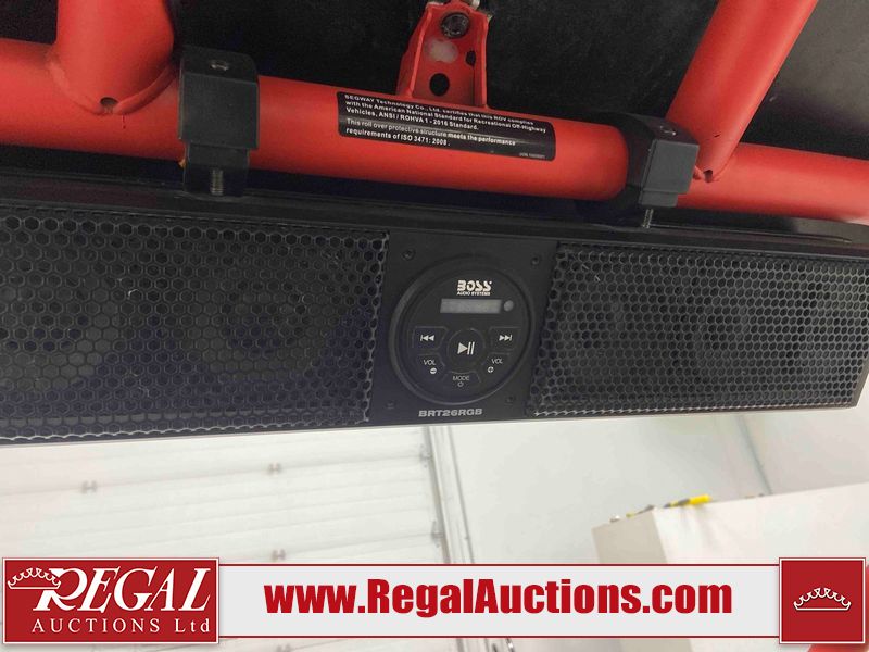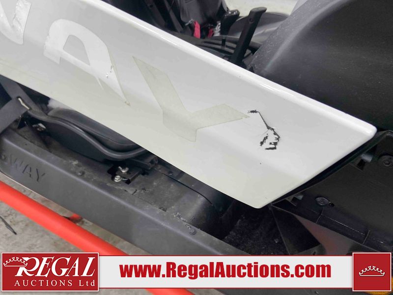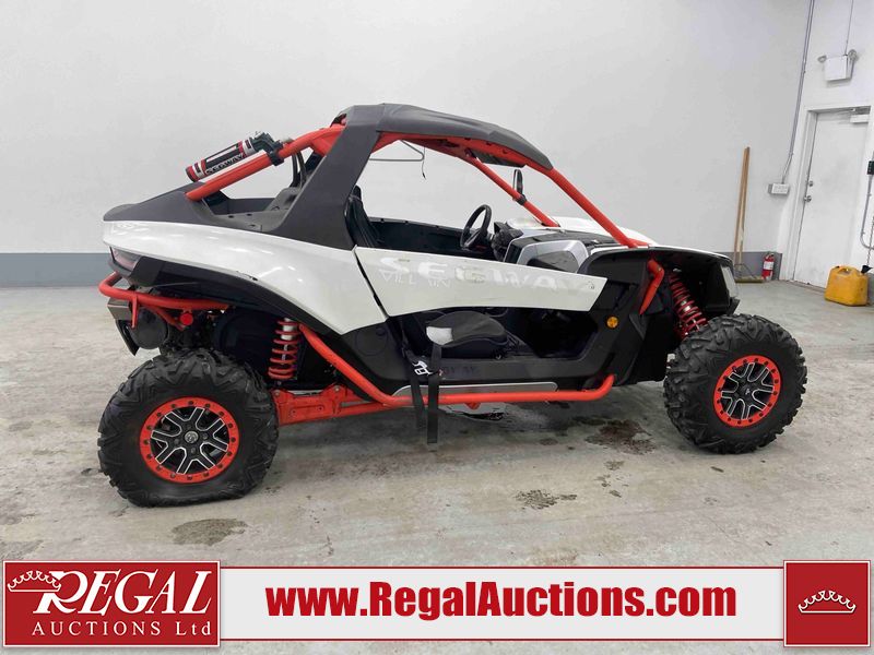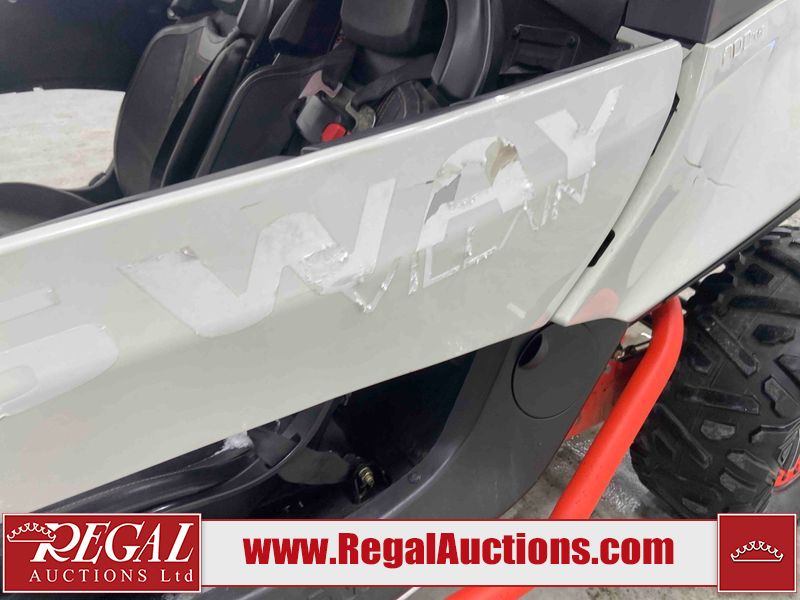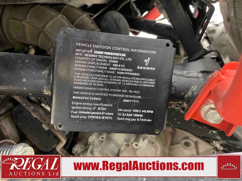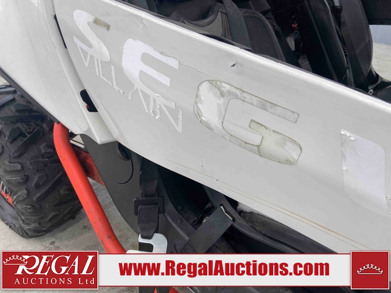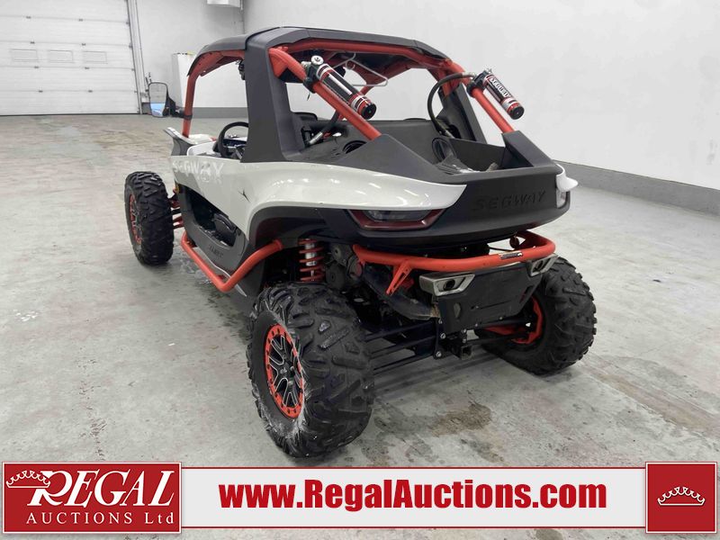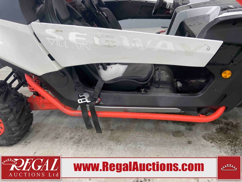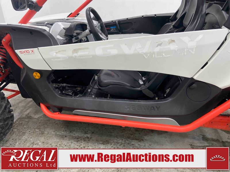 This ATV is a 2022 Segway villain SX 10 XSGW 1000 F – S1 model. The odometer shows 2587 km. The interior is dirty. The front crash bar is scratch. The front plastic is cracked. Some decals are peeling. The Left rear fender is cracked and peeling paint. The rear crash bar has dents and is chipped. The right rear fender is misaligned and has peeling paint. The right door is cracked, and has peeling paint and a piece missing. This unit starts and runs. This unit is powered by a 1000CC two cylinder four stroke dual liquid/oil cooling system and a continuously variable transmission with a shaft final drive. The tires are mounted to alloy rims and appear to be in good enough condition for you. This unit is equipped with a winch, and a 2WD/4WD selector.