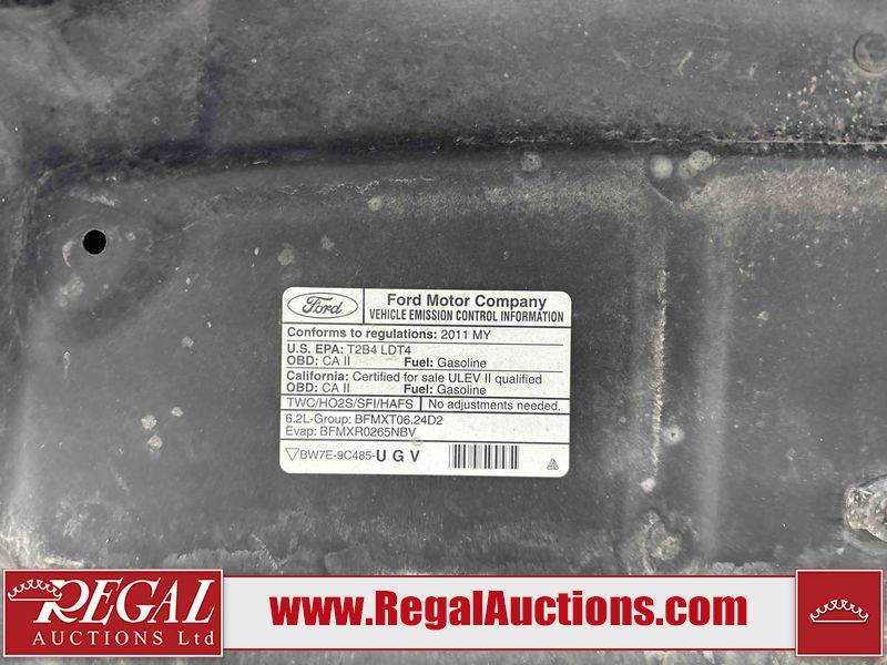 This 2011 FORD F-150 FX4 SUPERCREW 4WD is powered by a 6.2L 8 cylinder gasoline engine and an automatic transmission. It is equipped with four wheel drive. The truck has seats for 5 people. The truck has high mileage for its age. The power steering needs repair. The vehicle has high value options including leather upholstery, power seats, heated seats, navigation, and a backup camera. The body looks to be in rough condition overall. There is substantial rust on the left front door. There is some rust on the roof, tail gate, right rear fender, and right rear door. The right rear door is broken. There are scratches on the left front door, left rear door, rear bumper, and right rear door. There is rust on the rear bumper, right front door, and right front fender. There is dent damage on the right rear door. There are very minor chips in many areas around the body. There are very minor scratches in many areas around the body. There is very minor dent damage in a few areas around the body. The interior looks to be in good condition overall. The windshield is cracked. All of the tires have lots of tread remaining. This truck is being sold by a private individual. Regal Auctions Ltd. makes no guarantee or warranty, either express or implied, with respect to the data provided in this report. The information has been provided from the consignor and from sources generally believed to be reliable, however the accuracy of this information cannot be guaranteed by Regal Auctions.