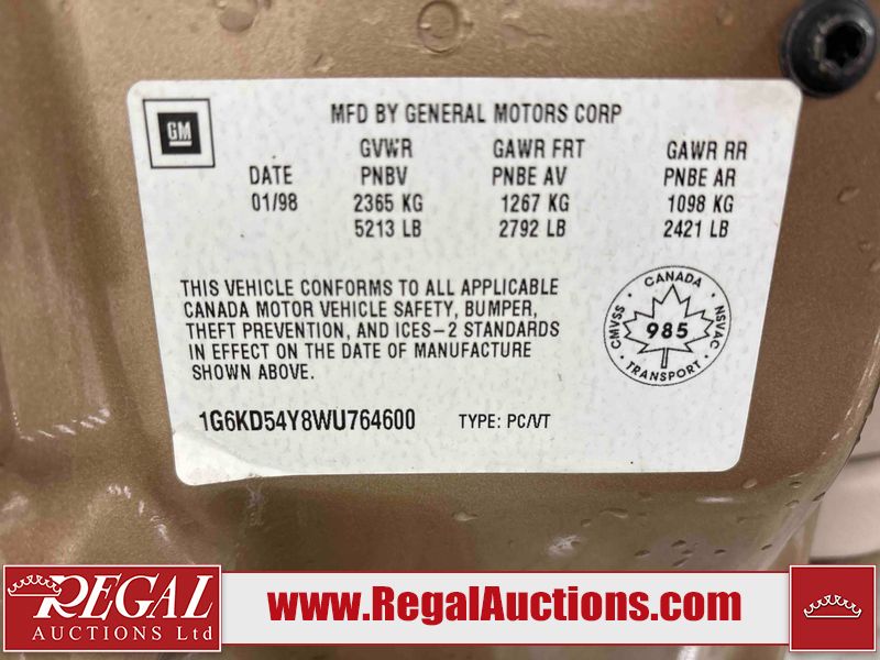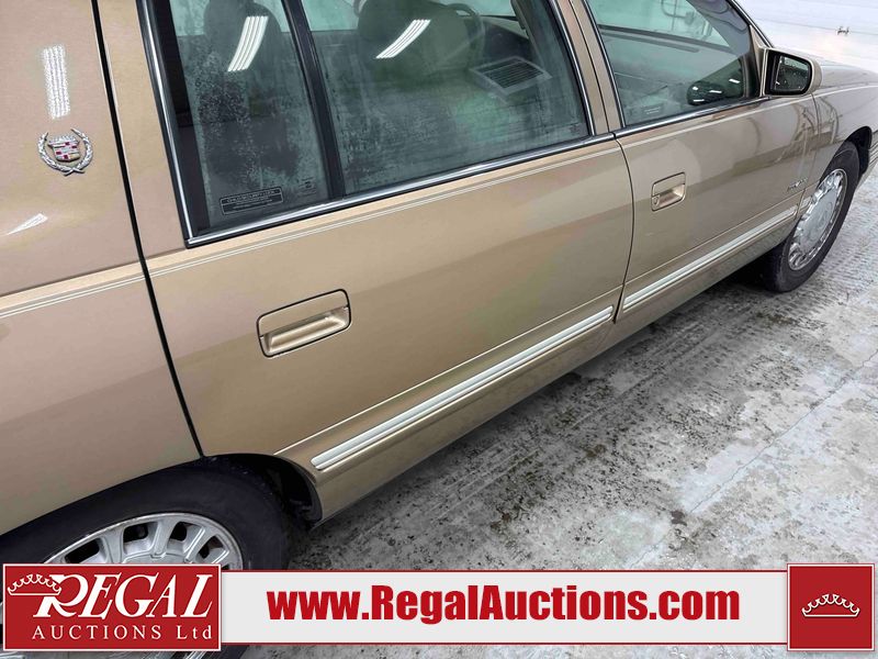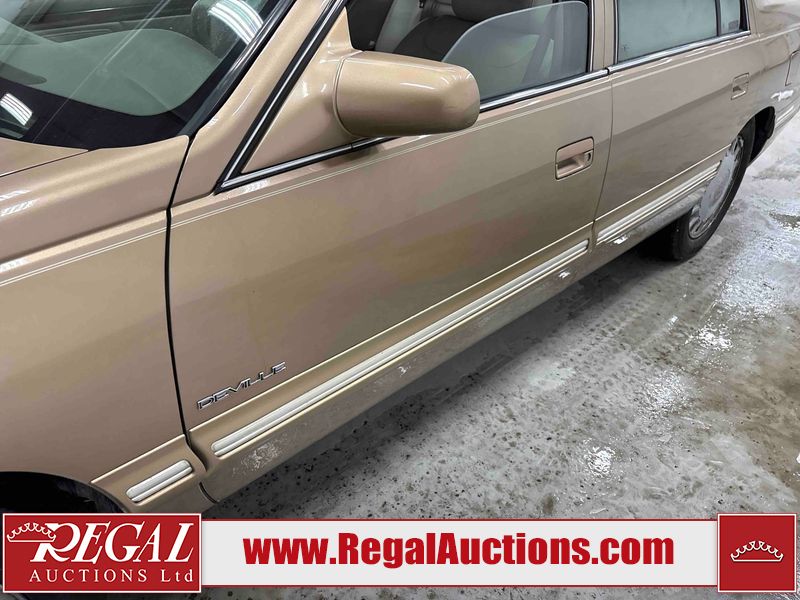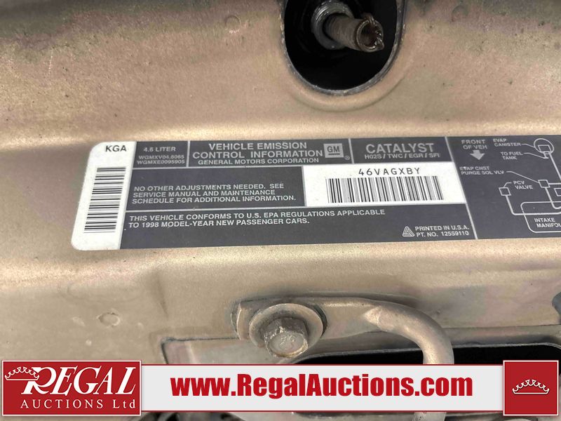 This 1998 CADILLAC DEVILLE 4D SEDAN is powered by a 4.6L 8 cylinder gasoline engine and an automatic transmission. The car has seats for 6 people. The car has low mileage for its age. The vehicle has high value options including a sunroof, leather upholstery, power seats, and heated seats. The body looks to be in good condition overall. The rear bumper is broken. There are very minor chips in many areas around the body. There are very minor scratches in many areas around the body. There is very minor dent damage on the right front fender. The interior looks to be in good condition overall. The windshield is chipped. The rear tires are worn. The front tires have lots of tread remaining. This car is being sold by an automotive broker. The vehicle will be sold with the following declarations: Auctioneer Announcement "**TORQUE CONVERTER SOLENOID NEEDS REPAIR OR REPLACEMENT** " and Out of Province - BC (See Footnote 1). Footnotes: 1) The vehicle's last registered jurisdiction is British Columbia. The purchaser must have the vehicle undergo and pass an Out of Province inspection before it can be registered in Alberta. Regal Auctions Ltd. makes no guarantee or warranty, either express or implied, with respect to the data provided in this report. The information has been provided from the consignor and from sources generally believed to be reliable, however the accuracy of this information cannot be guaranteed by Regal Auctions.