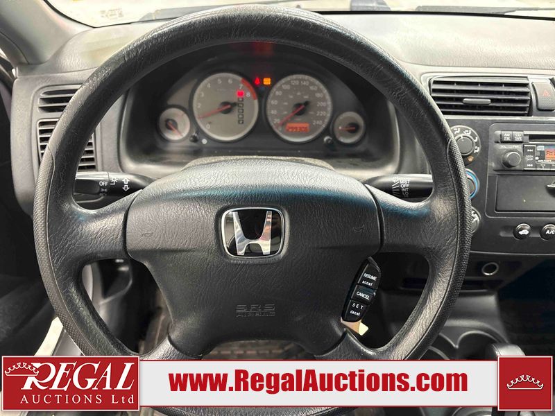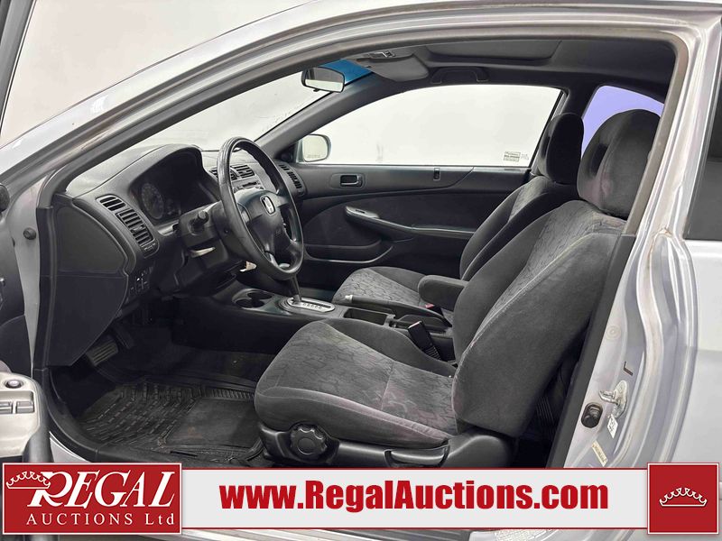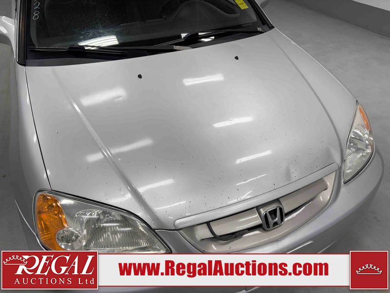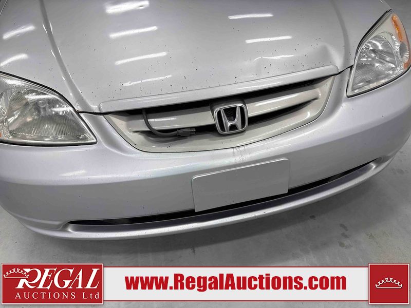 This 2001 HONDA CIVIC 2D COUPE FWD is powered by a 1.6L 4-cylinder gasoline engine and an automatic transmission. The car has seats for 5 people. The car has high mileage for its age. The vehicle has high value options including a sunroof. The Maintenance light is on. The body looks to be in rough condition overall. There is extensive hail on the hood. There is severe rust on the right rear fender. There is considerable dent damage on the right front door. The front bumper, left rear fender, right rear fender, and right front door have been repainted poorly. The rear bumper is cracked. There is rust on the hood, roof, left front fender, left rear fender, and right front door. There is hail on the roof. There are chips on the left front fender. There are slight scratches on the left front door and left rear fender. There is slight dent damage on the left rear fender and right rear fender. There are very minor chips in many areas around the body. There are very minor scratches in many areas around the body. The interior looks to be in good condition overall. The windshield is cracked. All of the tires have lots of tread remaining. This car is being sold by an automotive broker. The vehicle will be sold with the following declarations: Hail Damage (See Footnote 1). Footnotes: 1) This vehicle shows signs of damage from a hail storm. Hail damage is not always clearly visible in photographs. Regal Auctions Ltd. makes no guarantee or warranty, either express or implied, with respect to the data provided in this report. The information has been provided from the consignor and from sources generally believed to be reliable, however the accuracy of this information cannot be guaranteed by Regal Auctions.