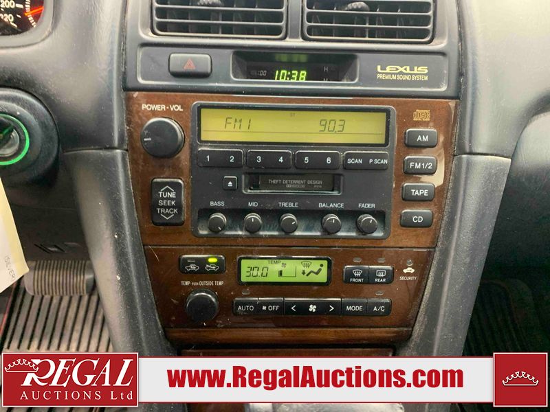 This 2001 LEXUS ES 300 4D SEDAN FWD is powered by a 3.0L V6 gasoline engine and an automatic transmission. The car has seats for 5 people. The mileage is average considering the car's age. The vehicle has high-value options including a sunroof, leather upholstery, power seats, heated seats. The Stability Control light is on. The body looks to be in rough condition overall. The front bumper is cracked. There is severe rust on the left rear fender and right rear fender. There is noteworthy rust on the left front fender. There are noteworthy scratches on the trunk lid. There are minor chips on the front bumper, hood, roof, left rear fender, rear bumper, and trunk lid. There are scratches on the front bumper, hood, roof, left rear door, left rear fender, rear bumper, right rear fender, right rear door, and right front door. There is rust on the hood, roof, left front door, trunk lid, and right rear door. There is dent damage on the hood, left front fender, left rear door, left rear fender, and right rear door. There is slight paint peeling on the left front door and rear bumper. The left front door has parts missing. There are very minor chips in many areas around the body. There are very minor scratches in a few areas around the body. There is very minor dent damage in a few areas around the body. The interior looks to be in fair condition overall. The dashboard, driver's seat, passenger seat, rear seats, and doors are worn. The windshield is cracked. All of the tires have lots of tread remaining. This car is being sold by an automotive broker. Regal Auctions Ltd. makes no guarantee or warranty, either express or implied, with respect to the data provided in this report. The information has been provided from the consignor and from sources generally believed to be reliable, however the accuracy of this information cannot be guaranteed by Regal Auctions.