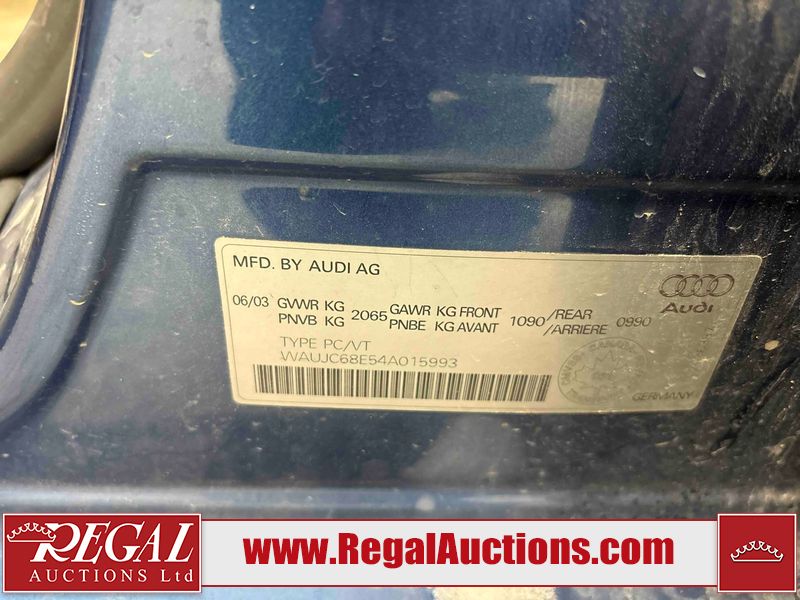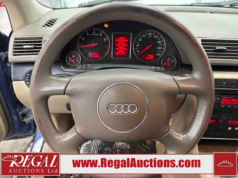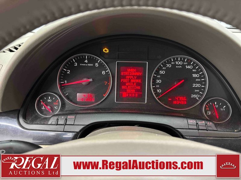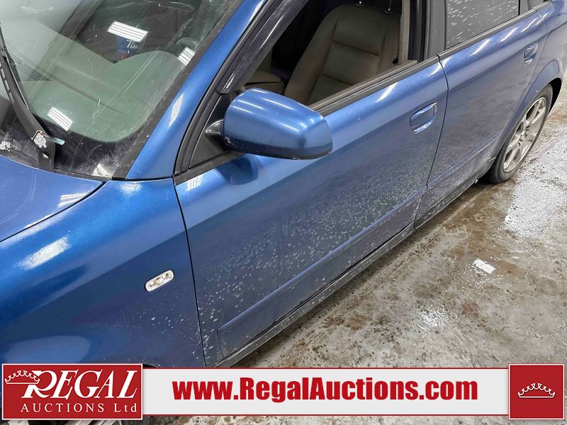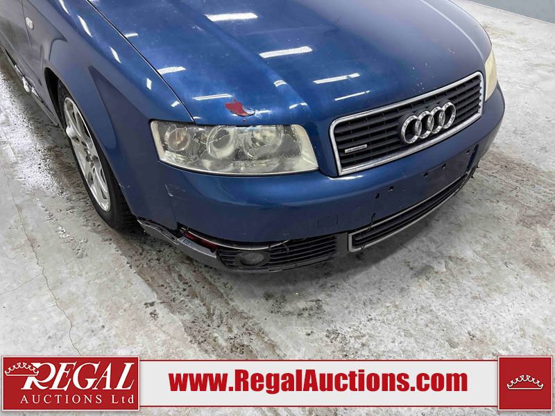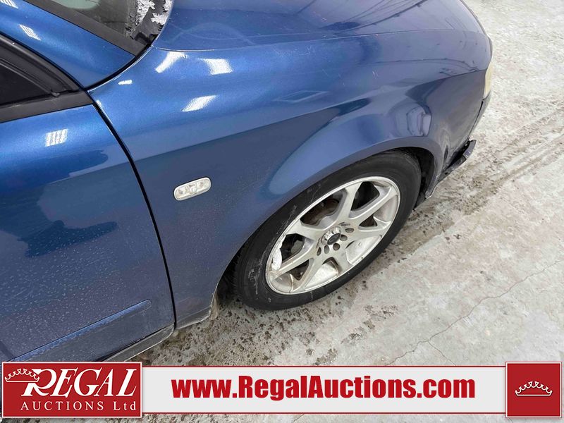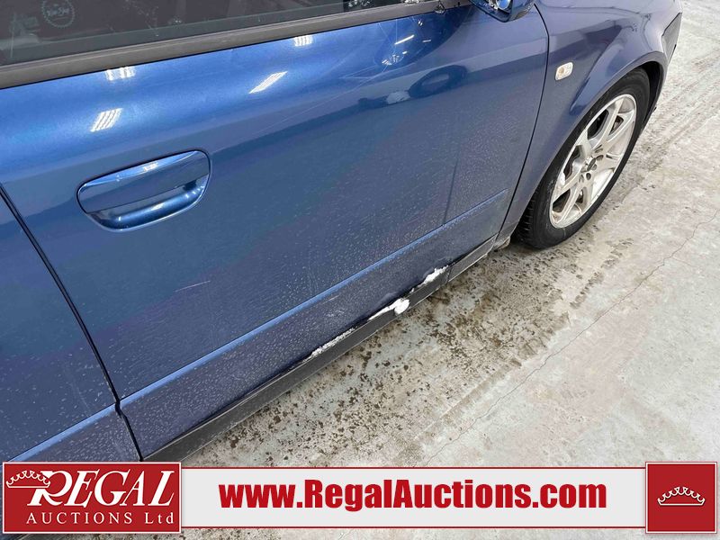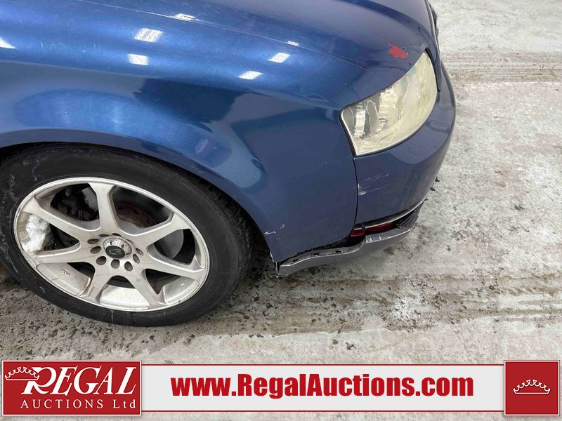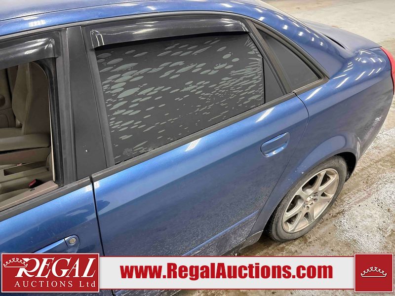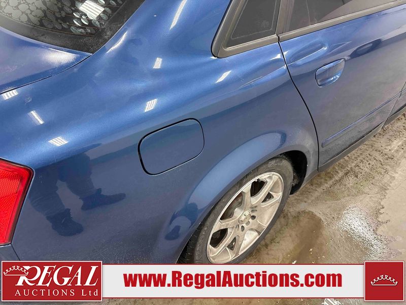 This 2004 AUDI A4 4D SEDAN is powered by a 1.8L 4-cylinder gasoline engine and an automatic transmission. The car has seats for 5 people. The car has low mileage for its age. The vehicle has high-value options including leather upholstery and heated seats. The Check Engine light is on. The body looks to be in rough condition overall. The front bumper is broken. The left front fender, trunk lid, and right front fender have been repainted poorly. The hood and roof have been repainted poorly. There are chips on the hood. There is rust on the roof, left front door, left rear fender, trunk lid, and right rear fender. There are minimal scratches on the left rear fender, right rear fender, right rear door, right front door, and right front fender. There is incidental dent damage on the right rear fender and right rear door. There are very minor chips in many areas around the body. There are very minor scratches in many areas around the body. There is very minor dent damage in a few areas around the body. The interior looks to be in good condition overall. The windshield is cracked. The passenger side front tire and the driver's side rear tire are both nearly bald and should be replaced. The driver's side front tire is worn. This car is being sold by an automotive broker. The vehicle will be sold with the following declarations: Rebuilt Status (See Footnote 1). Footnotes: 1) This vehicle has been rebuilt from salvage. Regal Auctions Ltd. makes no guarantee or warranty, either express or implied, with respect to the data provided in this report. The information has been provided from the consignor and from sources generally believed to be reliable, however the accuracy of this information cannot be guaranteed by Regal Auctions.