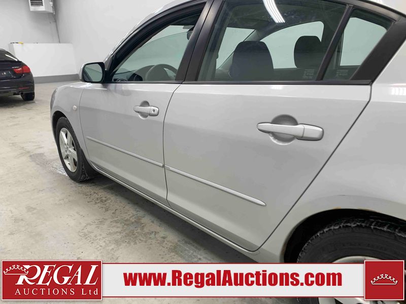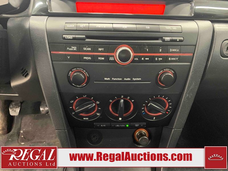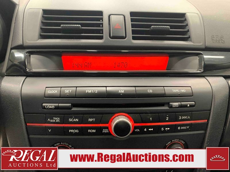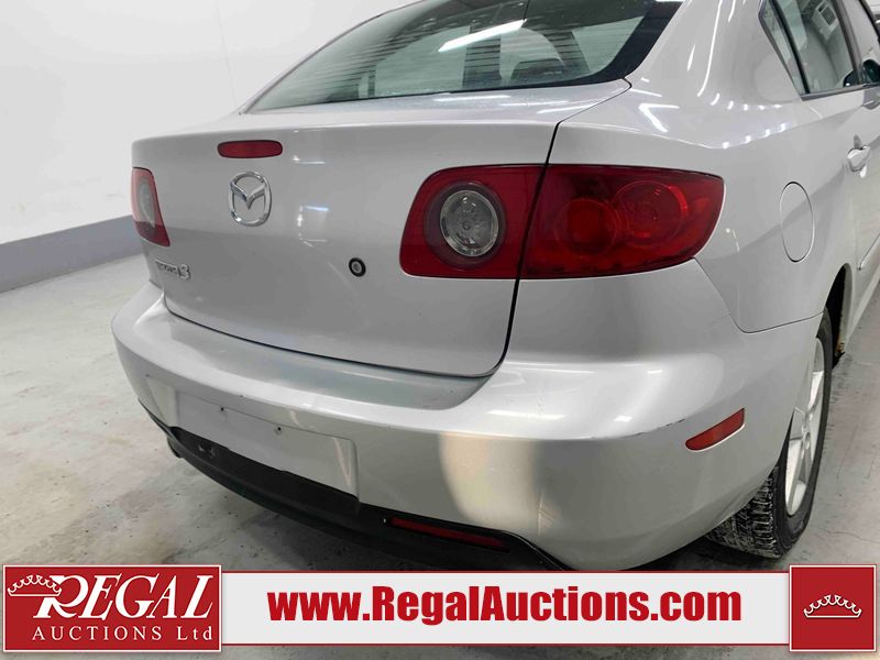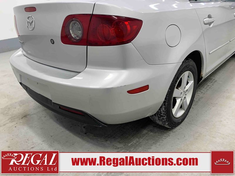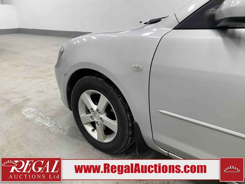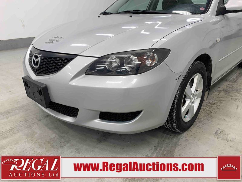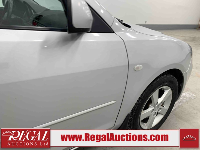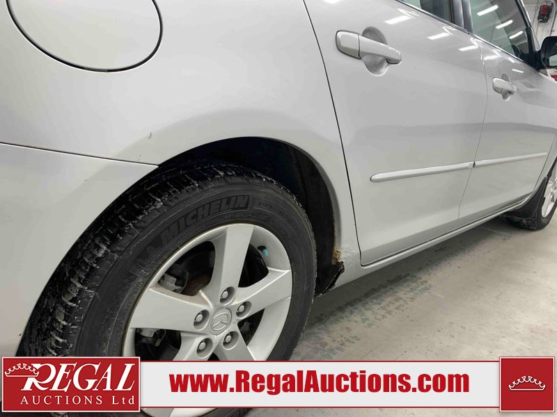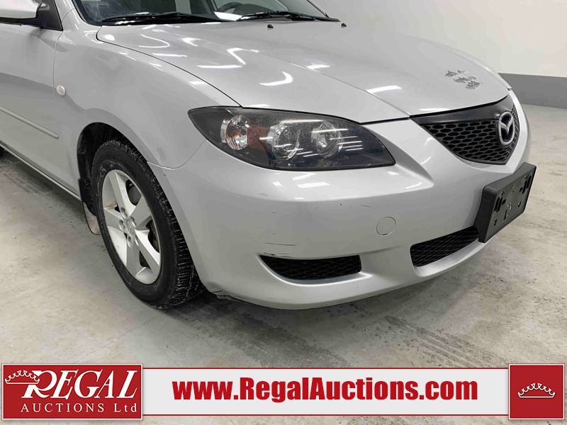 This 2004 MAZDA MAZDA3 4D SEDAN is powered by a 2.0L 4-cylinder gasoline engine and a 5-speed manual transmission. The car has seats for 5 people. The car has low mileage for its age. The vehicle has high-value options including a backup camera. The Check Engine light is on. The body looks to be in fair condition overall. There is conspicuous rust on the right rear fender. There are minor chips on the front bumper, hood, and rear bumper. There are scratches on the front bumper, hood, roof, left front fender, left front door, left rear door, left rear fender, rear bumper, trunk lid, right rear fender, right rear door, right front door, and right front fender. There is dent damage on the hood and left rear door. There is slight rust on the hood and left rear fender. There are very minor chips in many areas around the body. The interior looks to be in good condition overall. The windshield looks to be in good condition. The tires are all worn. This car is being sold by an automotive broker. The vehicle will be sold with the following declarations: Claims Total $1000 - $2999 (See Footnote 1), Out of Province - BC (See Footnote 2), and Out of Province - AB OVERRIDE (See Footnote 3). Footnotes: 1) The vehicle's total recorded insurance claims history is between $1,000 - $2,999. This is the amount of money that was paid out by an insurance company for repairs to cover claims against the vehicle's insurance policy. This information is provided by CarFax. 2) The vehicle's last registered jurisdiction is British Columbia. The purchaser must have the vehicle undergo and pass an Out of Province inspection before it can be registered in Alberta. 3) Out of province inspection for registering the vehicle in Alberta has been completed. Regal Auctions Ltd. makes no guarantee or warranty, either express or implied, with respect to the data provided in this report. The information has been provided from the consignor and from sources generally believed to be reliable, however the accuracy of this information cannot be guaranteed by Regal Auctions.