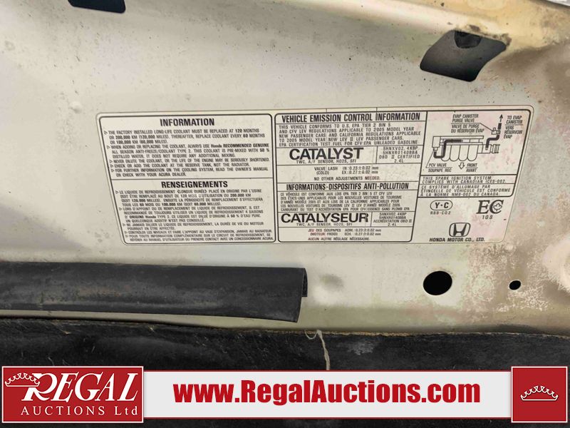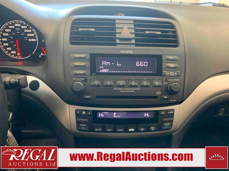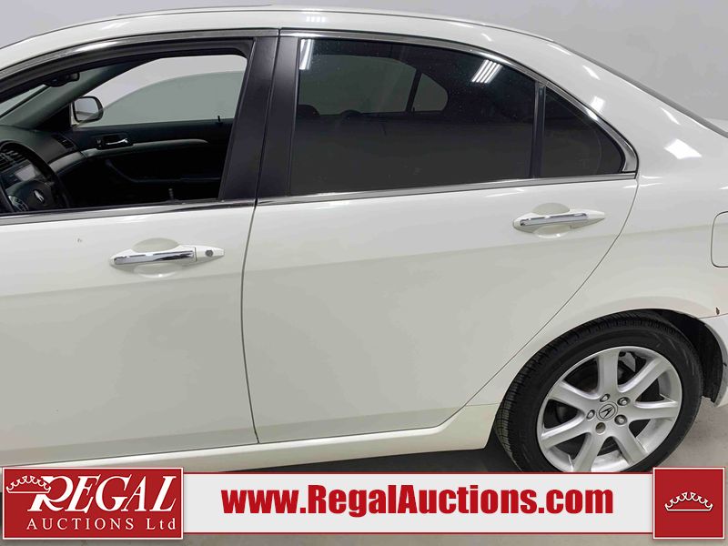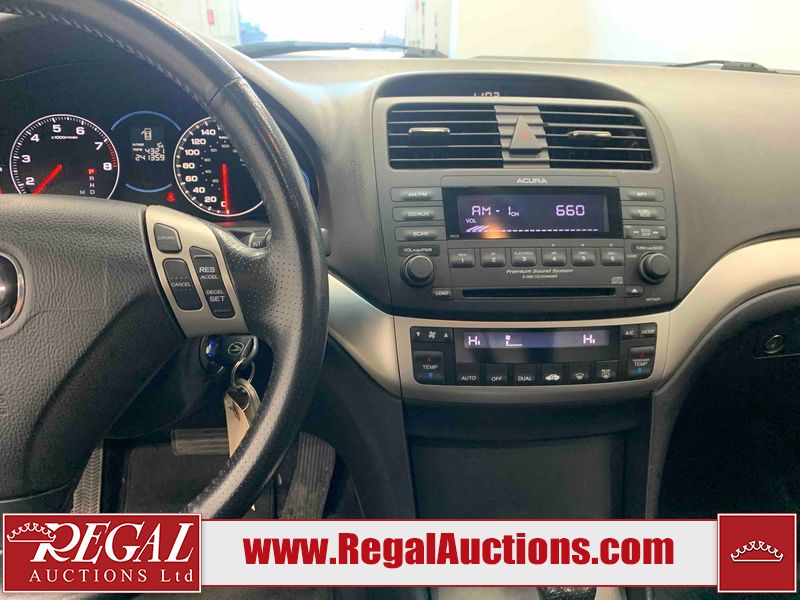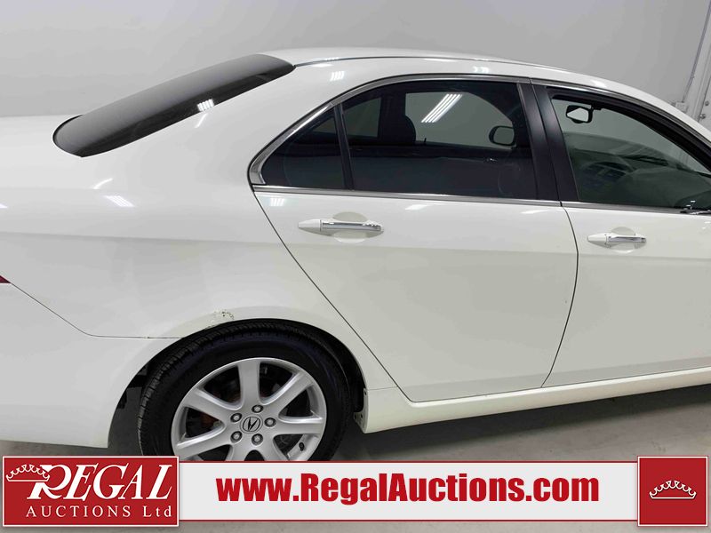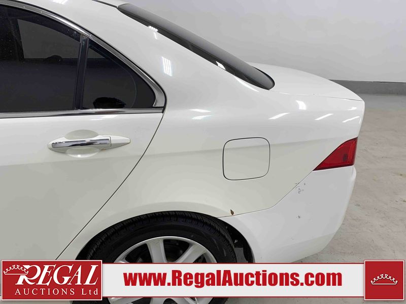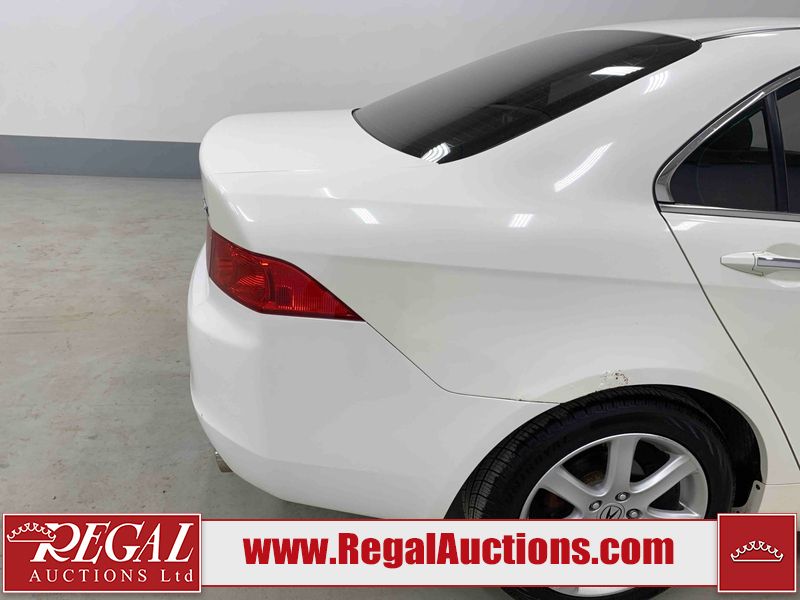 This 2005 ACURA TSX PREMIUM 4D SEDAN is powered by a 2.4 liter 4-cylinder gasoline engine and an automatic transmission. The car has seats for 5 people. The mileage is average considering the car's age. The vehicle has high-value options, including a sunroof, leather upholstery, and power seats. The body looks to be in rough condition overall. The rear bumper is a different color from the rest of the vehicle. There is severe rust on the right rear fender. The grille is cracked. There is noteworthy rust on the right rear door and right front fender. There are chips on the front bumper, grille, hood, roof, left front fender, left front door, left rear door, left rear fender, rear bumper, trunk lid, rear door, right rear fender, right rear door, right front door, and right front fender. There are minor scratches on the front bumper, hood, roof, left front fender, left front door, left rear door, left rear fender, rear bumper, trunk lid, rear door, right rear fender, right rear door, right front door, and right front fender. There is slight rust on the hood, left rear fender, and trunk lid. There is slight hail on the hood. There is slight dent damage on the left front door, left rear fender, and right rear door. There is incidental paint peeling on the left rear fender. The The interior looks to be in fair condition overall. The dashboard, driver's seat, passenger seat, rear seats, and doors are dirty. The carpet is dirty. The windshield is chipped. The tires are all worn. This car is being sold by an automotive broker. The vehicle will be sold with the following declarations: Claims Total $1000 - $2999 (See Footnote 2), Hail Damage (See Footnote 3), and Out of Province - ON (See Footnote 4). Footnotes: 1) We've identified some mechanical problems with the vehicle. However, the vehicle has not undergone a mechanical inspection and our findings are not to be considered a complete evaluation of the vehicle's mechanical condition. Review our Buyer Protection Policy to see how Regal Auctions protects you from undisclosed mechanical problems. 2) The vehicle's total recorded insurance claims history is between $1,000 - $2,999. This is the amount of money that was paid out by an insurance company for repairs to cover claims against the vehicle's insurance policy. This information is provided by CarFax. 3) This vehicle shows signs of damage from a hail storm. Hail damage is not always clearly visible in photographs. 4) The vehicle's last registered jurisdiction is Ontario. The purchaser must have the vehicle undergo and pass an Out of Province inspection before it can be registered in Alberta. Regal Auctions Ltd. makes no guarantee or warranty, either express or implied, with respect to the data provided in this report. The information has been provided from the consignor and from sources generally believed to be reliable, however the accuracy of this information cannot be guaranteed by Regal Auctions.