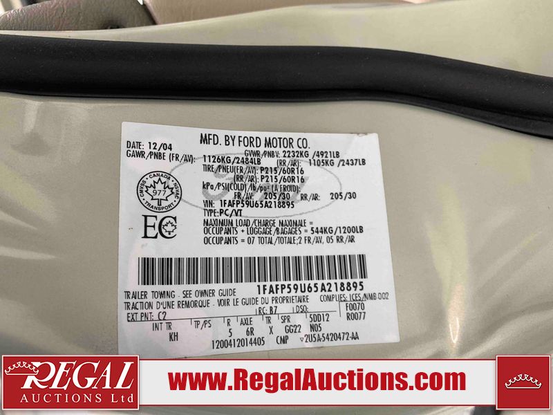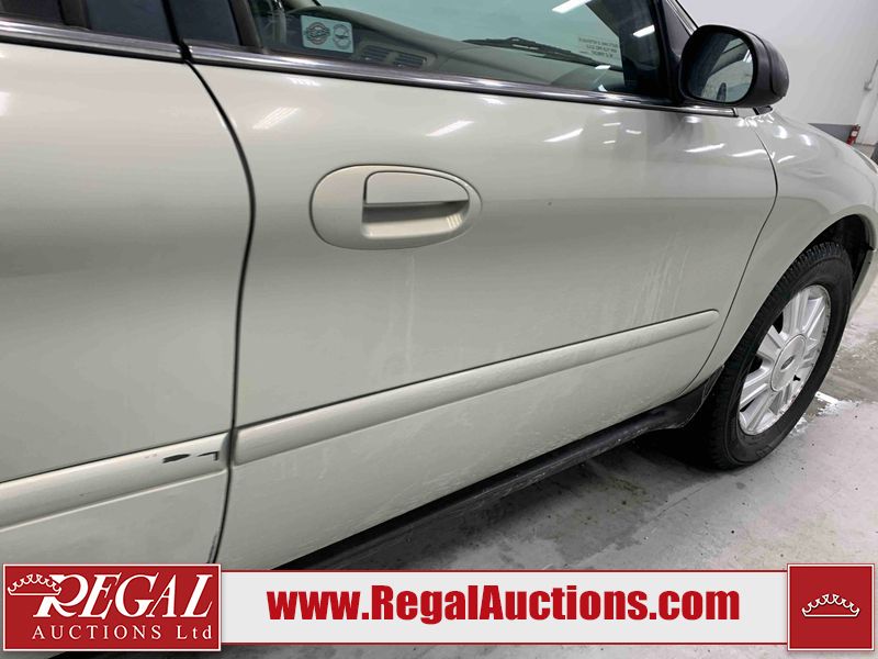 This 2005 FORD TAURUS WAGON is powered by a V6 gasoline engine and an automatic transmission. The car has seats for 5 people. The car has low mileage for its age. The body looks to be in rough condition overall. There are pronounced scratches on the right rear fender. There is some rust on the right rear fender. There is a fair amount of hail on the right rear fender. There are chips on the front bumper, hood, and roof. There are scratches on the front bumper, hood, roof, left rear door, left rear fender, rear bumper, and right rear door. There is hail on the hood, roof, right rear door, right front door, and right front fender. There is rust on the roof, left rear fender, rear bumper, trunk lid, and right rear door. There is paint peeling on the roof, left rear fender, rear bumper, trunk lid, and right rear fender. There are very minor chips in many areas around the body. There are very minor scratches in some areas around the body. The interior looks to be in good condition overall. There are moderate stains on the driver's seat. The windshield looks to be in good condition. All of the tires have lots of tread remaining. This car is being sold by an automotive broker. The vehicle will be sold with the following declarations: Hail Damage (See Footnote 1). Footnotes: 1) This vehicle shows signs of damage from a hail storm. Hail damage is not always clearly visible in photographs. Regal Auctions Ltd. makes no guarantee or warranty, either express or implied, with respect to the data provided in this report. The information has been provided from the consignor and from sources generally believed to be reliable, however the accuracy of this information cannot be guaranteed by Regal Auctions.