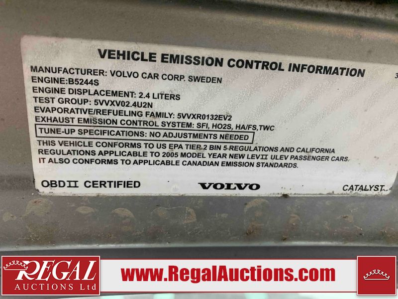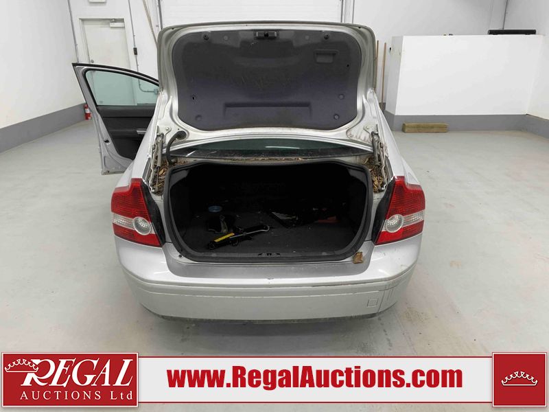 This 2005 VOLVO S40 4D SEDAN is powered by a 2.4L 5-cylinder gasoline engine and an automatic transmission. The car has seats for 5 people. The mileage is average considering the car's age. The vehicle has high-value options including a sunroof, leather upholstery, power seats, and heated seats. The body looks to be in fair condition overall. There are very bad scratches on the rear bumper. There is a fair amount of dent damage on the front bumper. There are chips on the front bumper and left front fender. There is rust on the roof and right rear fender. There are slight scratches on the left front door, left rear door, left rear fender, and right front fender. There is dent damage on the right rear fender. There are very minor chips in many areas around the body. There are very minor scratches in many areas around the body. The interior looks to be in fair condition overall. The driver's seat is torn. The carpet is dirty. The windshield is cracked. The rear tires are worn. The front tires have lots of tread remaining. This car is being sold by an automotive broker. Regal Auctions Ltd. makes no guarantee or warranty, either express or implied, with respect to the data provided in this report. The information has been provided from the consignor and from sources generally believed to be reliable, however the accuracy of this information cannot be guaranteed by Regal Auctions.
