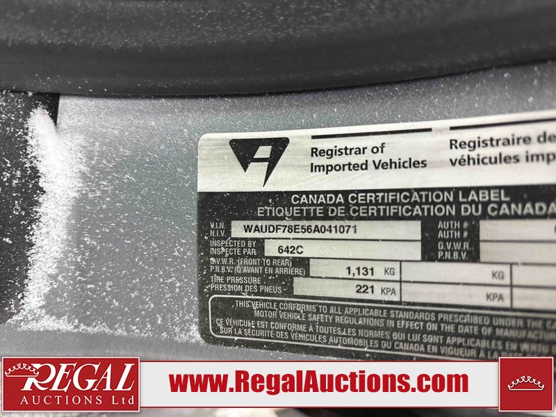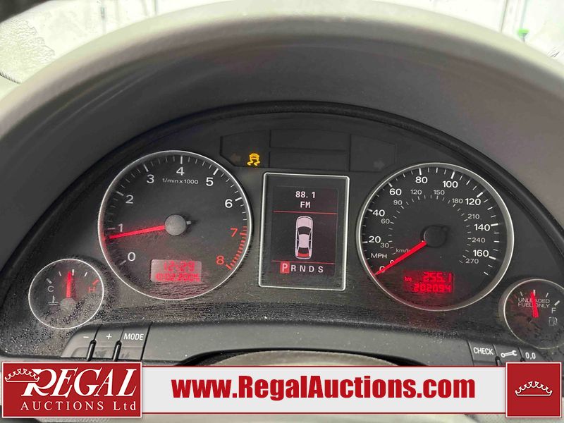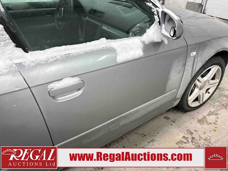 This 2006 AUDI NEW A4 4D SEDAN is powered by a 2.0 liter 4-cylinder gasoline engine and an automatic transmission. It is equipped with all-wheel drive. The car has seats for 2 people. The mileage is average considering the car's age. The vehicle has high-value options, including a sunroof, leather upholstery, power seats, heated seats, and navigation. The Stability Control light is on. The body looks to be in rough condition overall. There is considerable hail on the hood, roof, and trunk lid. There is some rust on the trunk lid. There is noteworthy hail on the right front fender. There is incidental rust on the left front fender, left rear fender, right rear fender, and right front fender. There are chips in many areas around the body. There are scratches in many areas around the body. The interior looks to be in good condition overall. The windshield is chipped. All of the tires have lots of tread remaining. This car is being sold by an automotive broker. The vehicle will be sold with the following declarations: Auctioneer Announcement "**POWER WINDOW SWITCH PROBLEM** " and Hail Damage (See Footnote 1). Footnotes: 1) This vehicle shows signs of damage from a hail storm. Hail damage is not always clearly visible in photographs. Regal Auctions Ltd. makes no guarantee or warranty, either express or implied, with respect to the data provided in this report. The information has been provided from the consignor and from sources generally believed to be reliable, however the accuracy of this information cannot be guaranteed by Regal Auctions.