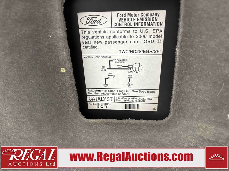 This 2006 FORD FUSION SEL 4D SEDAN is powered by a 3.0 liter 6-cylinder gasoline engine and an automatic transmission. The car has seats for 5 people. The mileage is average considering the car's age. The vehicle has high value options including leather upholstery and power seats. The vehicle does not have a radio. The body looks to be in fair condition overall. There is a fair amount of rust on the roof and trunk lid. There are incidental scratches on the front bumper and right rear fender. There are minimal chips on the hood, left front fender, right rear door, and right front fender. There is rust on the hood, left front fender, left rear door, and right front fender. There are chips in many areas around the body. There are scratches in many areas around the body. There is dent damage on the left rear door. The interior looks to be in good condition overall. The windshield is cracked. All of the tires have lots of tread remaining. This car is being sold by a franchise dealership. The vehicle will be sold with the following declarations: Dealership Trade-In (See Footnote 1). Footnotes: 1) This vehicle is being sold on behalf of a franchise dealership. Franchise Dealerships are automotive sales companies who are directly connected to an automotive manufacturer like Ford, Tesla, Honda, BMW, or similar. Regal Auctions Ltd. makes no guarantee or warranty, either express or implied, with respect to the data provided in this report. The information has been provided from the consignor and from sources generally believed to be reliable, however the accuracy of this information cannot be guaranteed by Regal Auctions.