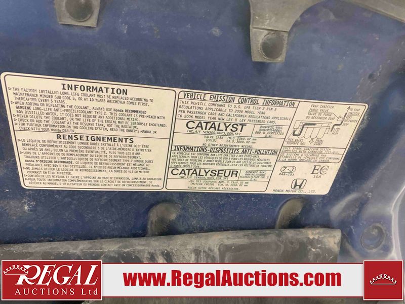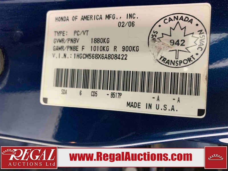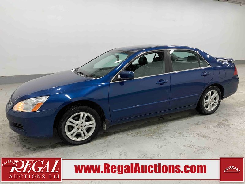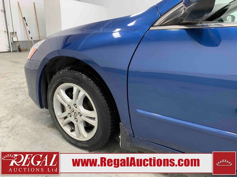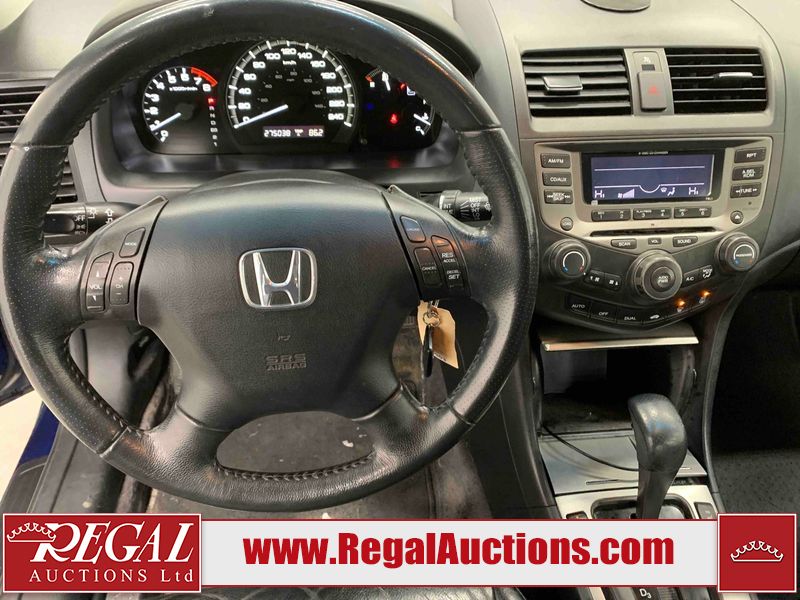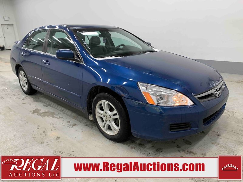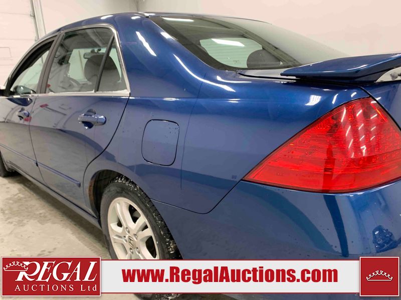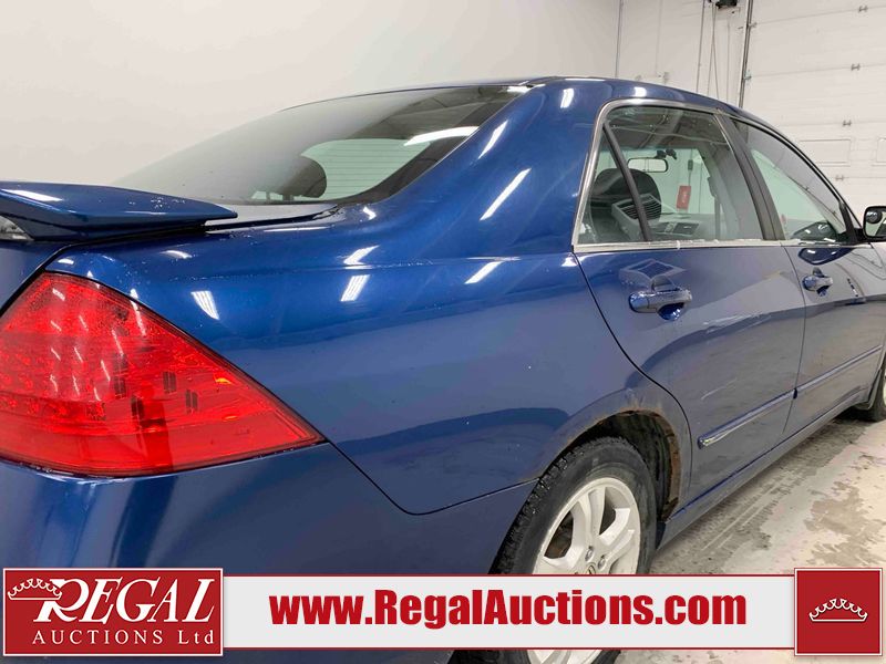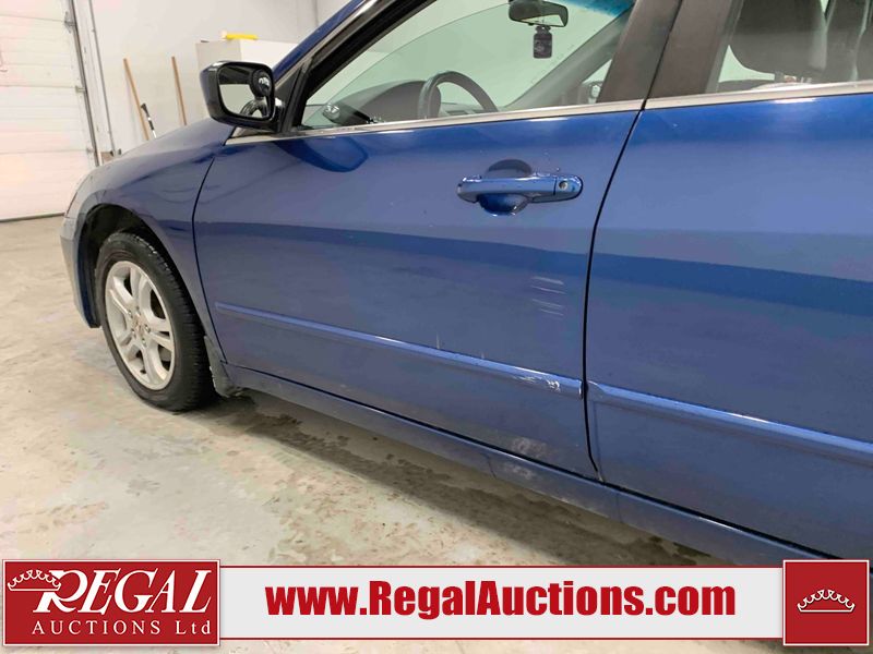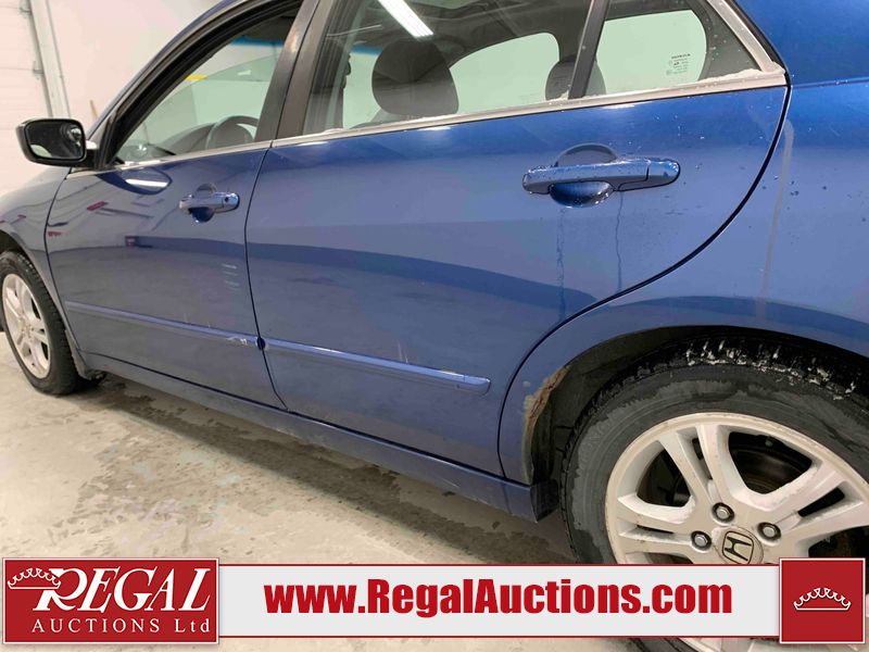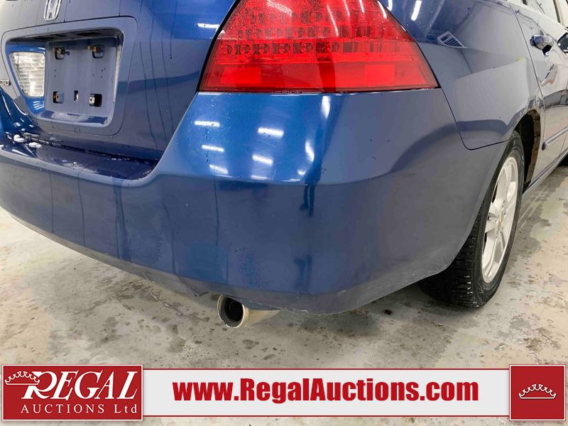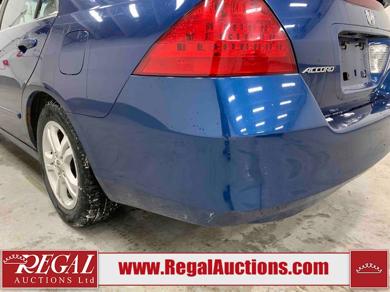 This 2006 HONDA ACCORD 4D SEDAN is powered by a 2.4L 4 cylinder gasoline engine and an automatic transmission. The car has seats for 5 people. The car has high mileage for its age. The vehicle has high value options including a sunroof, leather upholstery, power seats, and heated seats. The body looks to be in rough condition overall. The hood is cracked. There are noteworthy scratches on the hood and right rear door. There are chips on the front bumper, hood, left front fender, left front door, left rear door, left rear fender, rear bumper, trunk lid, right rear fender, right rear door, right front door, and right front fender. There are minor scratches on the front bumper, left front fender, left front door, left rear door, left rear fender, rear bumper, and right front fender. There is minor rust on the roof, right rear fender, left rear fender, and right front fender. There is slight paint peeling on the roof. There is dent damage on the left front fender, left rear fender, and right front fender. There are very minor chips in a few areas around the body. There are very minor scratches in many areas around the body. The interior looks to be in good condition overall. The windshield looks to be in good condition. All of the tires have lots of tread remaining. This car is being sold by an automotive broker. The vehicle will be sold with the following declarations: Claims Total $3000 - $4999 (See Footnote 1). Footnotes: 1) The vehicle's total recorded insurance claims history is between $3,000 - $4,999. This is the amount of money that was paid out by an insurance company for repairs to cover claims against the vehicle's insurance policy. This information is provided by CarFax. Regal Auctions Ltd. makes no guarantee or warranty, either express or implied, with respect to the data provided in this report. The information has been provided from the consignor and from sources generally believed to be reliable, however the accuracy of this information cannot be guaranteed by Regal Auctions.