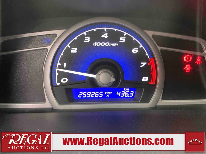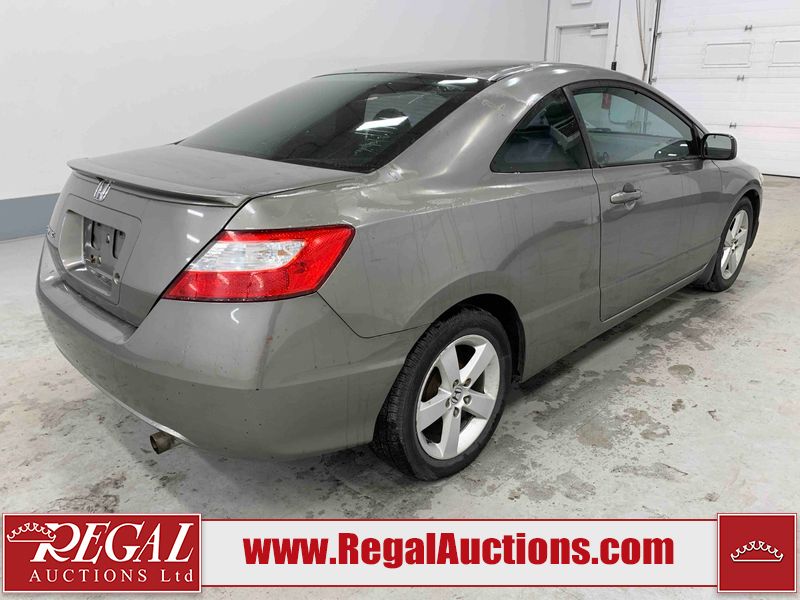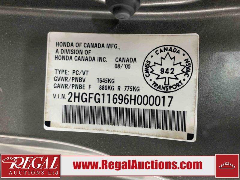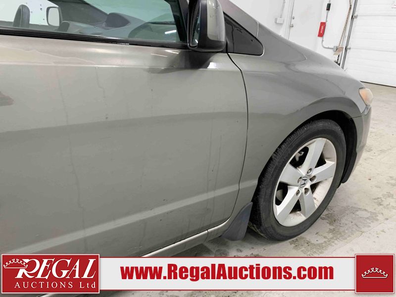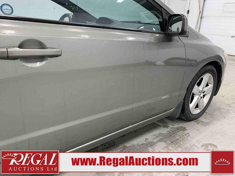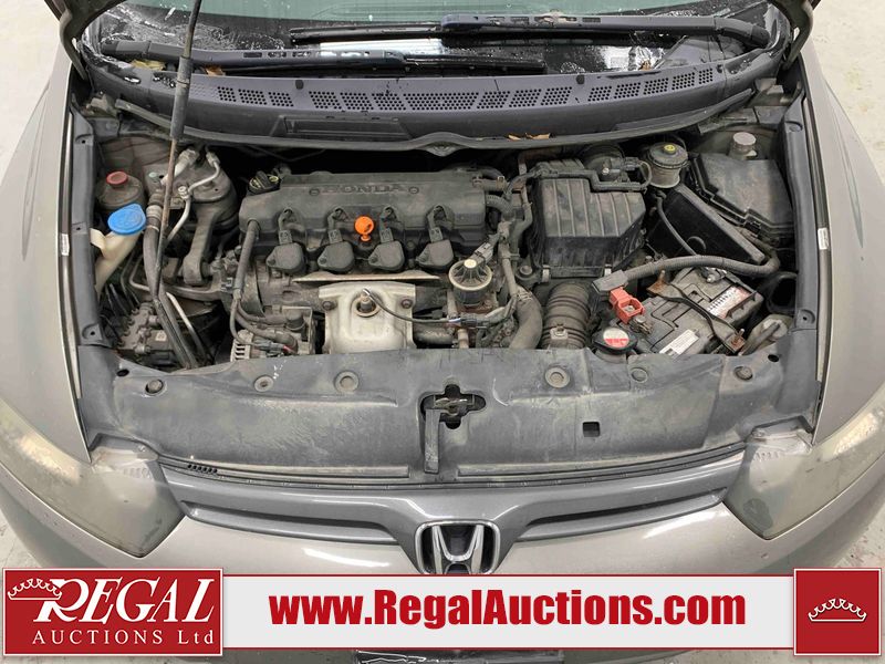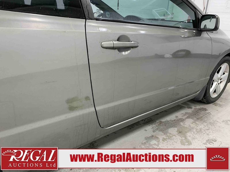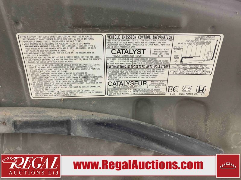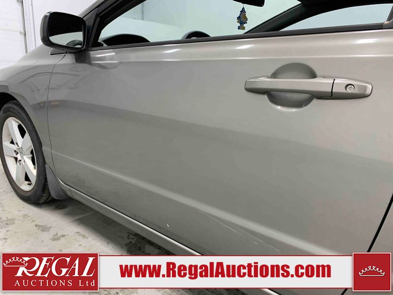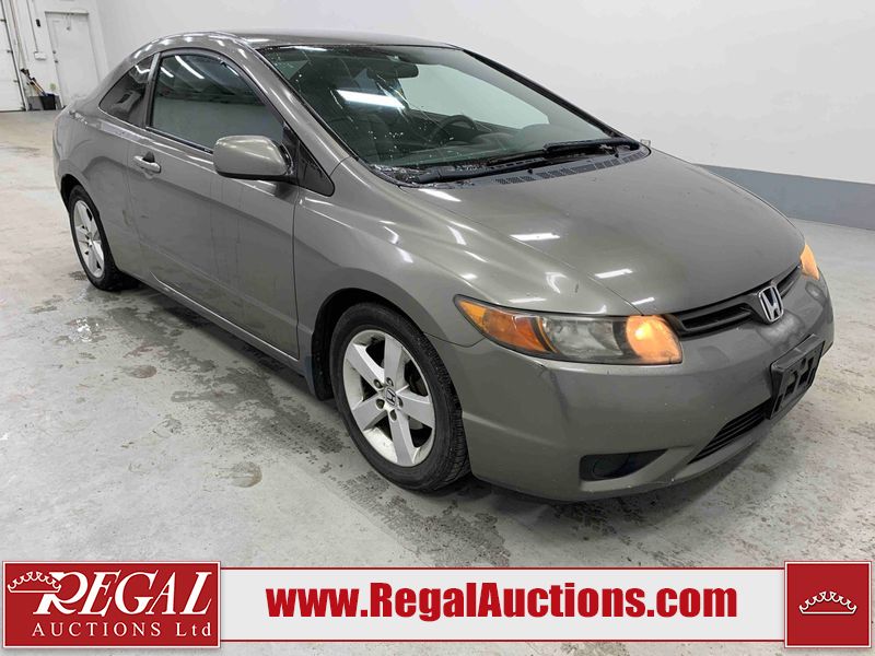 This 2006 HONDA CIVIC LX 2D COUPE is powered by a 1.8L 4-cylinder gasoline engine and a 5-speed manual transmission. The car has seats for 5 people. The car has high mileage for its age. The body looks to be in fair condition overall. There is noteworthy paint peeling on the hood. There are chips on the front bumper and rear bumper. There are slight scratches on the front bumper, left front fender, left front door, left rear fender, rear bumper, and right rear fender. There are very minor chips in many areas around the body. There are very minor scratches in many areas around the body. The interior looks to be in fair condition overall. There are some cigarette burns on the driver's seat. There are conspicuous stains on the passenger seat. The doors are worn. The windshield looks to be in good condition. The rear tires are worn. The front tires have lots of tread remaining. This car is being sold by an automotive broker. The vehicle will be sold with the following declarations: Out of Province - BC (See Footnote 1) and Out of Province - AB OVERRIDE (See Footnote 2). Footnotes: 1) The vehicle's last registered jurisdiction is British Columbia. The purchaser must have the vehicle undergo and pass an Out of Province inspection before it can be registered in Alberta. 2) Out of province inspection for registering the vehicle in Alberta has been completed. Regal Auctions Ltd. makes no guarantee or warranty, either express or implied, with respect to the data provided in this report. The information has been provided from the consignor and from sources generally believed to be reliable, however the accuracy of this information cannot be guaranteed by Regal Auctions.