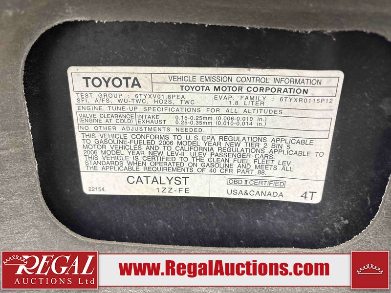 This 2006 TOYOTA MATRIX 4D HATCHBACK is powered by a 1.8L 4 cylinder gasoline engine and an automatic transmission. The car has seats for 5 people. The car has high mileage for its age. The vehicle does not have power windows or power locks. The Check Engine light is on. The vehicle has some mechanical problems. The exhaust is noisy. (See Footnote 1) The body looks to be in fair condition overall. There is conspicuous hail on the hood and roof. There is slight hail on the left front fender. There are very minor chips in many areas around the body. There are very minor scratches in many areas around the body. The interior looks to be in good condition overall. The windshield is chipped. All of the tires have lots of tread remaining. This car is being sold by an automotive broker. Footnotes: 1) We've identified some mechanical problems with the vehicle. However, the vehicle has not undergone a mechanical inspection and our findings are not to be considered a complete evaluation of the vehicle's mechanical condition. Review our Buyer Protection Policy to see how Regal Auctions protects you from undisclosed mechanical problems. Regal Auctions Ltd. makes no guarantee or warranty, either express or implied, with respect to the data provided in this report. The information has been provided from the consignor and from sources generally believed to be reliable, however the accuracy of this information cannot be guaranteed by Regal Auctions.
