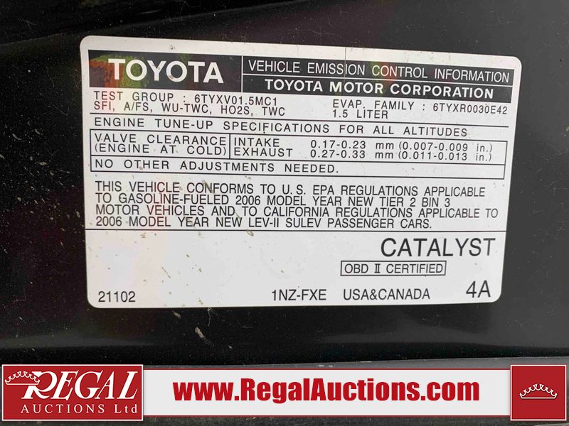 This 2006 TOYOTA PRIUS 4D SEDAN is powered by a 1.5L 4 cylinder hybrid engine and an automatic transmission. The car has seats for 5 people. The car has low mileage for its age. The vehicle has high value options including leather upholstery. The body looks to be in good condition overall. There are chips on the front bumper, hood, and left front fender. There are scratches on the front bumper, left front door, left rear door, left rear fender, rear bumper, right rear fender, right rear door, and right front door. There is rust on the right front door. There are very minor chips on the right front fender. There are very minor scratches on the right front fender. The interior looks to be in good condition overall. The driver's seat is worn. The windshield looks to be in good condition. All of the tires have lots of tread remaining. This car is being sold by an automotive broker. Regal Auctions Ltd. makes no guarantee or warranty, either express or implied, with respect to the data provided in this report. The information has been provided from the consignor and from sources generally believed to be reliable, however the accuracy of this information cannot be guaranteed by Regal Auctions.