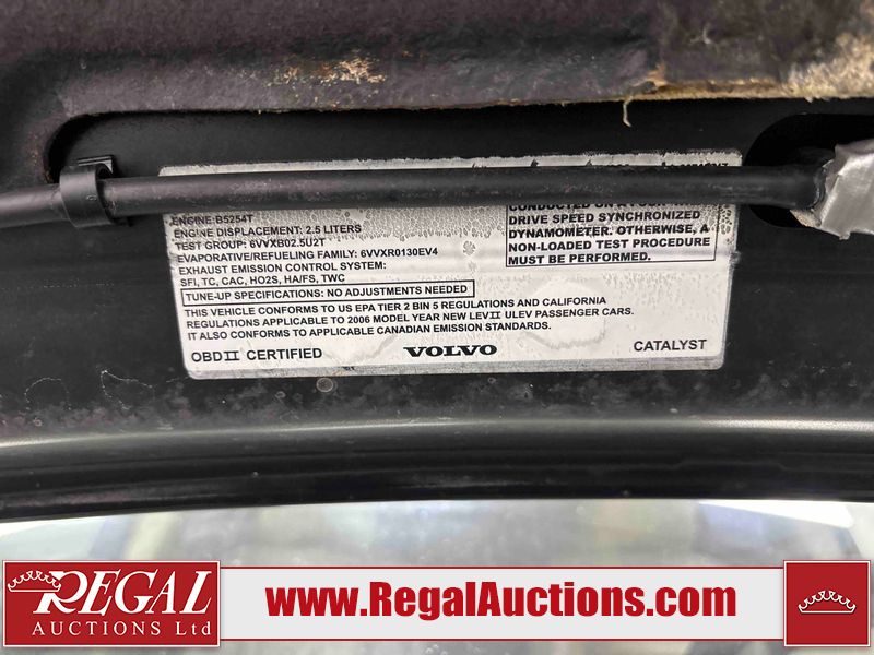This 2006 VOLVO S80 4D SEDAN AWD is powered by a 2.5 liter 5-cylinder gasoline engine and an automatic transmission. It is equipped with all-wheel drive. The car has seats for 5 people. The car has high mileage for its age. The vehicle has high-value options, including a sunroof, leather upholstery, and power seats. The General and Check Engine lights are on. The body looks to be in good condition overall. There are incidental scratches on the front bumper. There is rust on the left rear door. There are chips in many areas around the body. There are scratches in many areas around the body. There is dent damage on the right rear fender. The fog lights are broken. The interior looks to be in good condition overall. The windshield is cracked. All of the tires have lots of tread remaining. This car is being sold by a private individual. The vehicle will be sold with the following declarations: Claims Total $1000 - $2999 (See Footnote 1). Footnotes: 1) The vehicle's total recorded insurance claims history is between $1,000 - $2,999. This is the amount of money that was paid out by an insurance company for repairs to cover claims against the vehicle's insurance policy. This information is provided by CarFax. Regal Auctions Ltd. makes no guarantee or warranty, either express or implied, with respect to the data provided in this report. The information has been provided from the consignor and from sources generally believed to be reliable, however the accuracy of this information cannot be guaranteed by Regal Auctions.