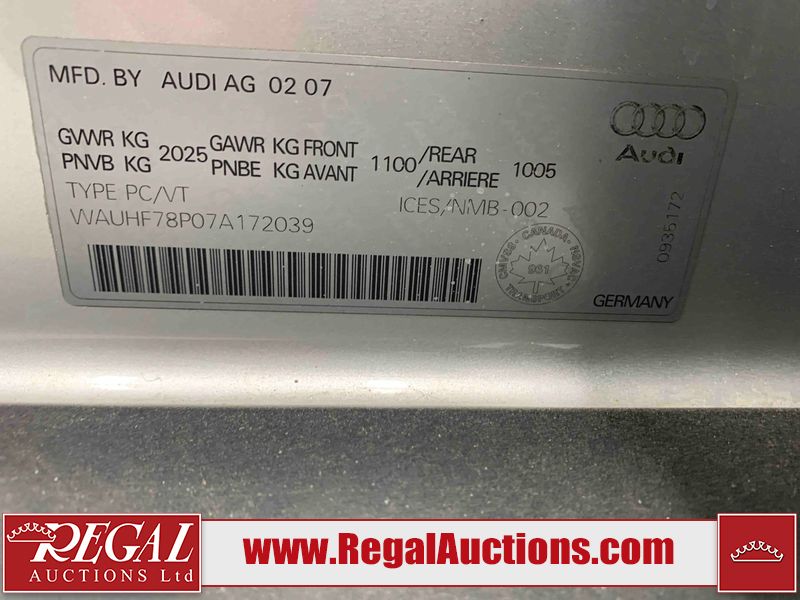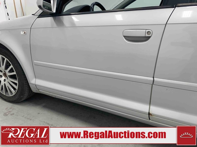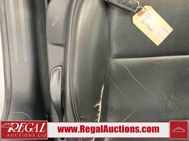 This 2007 AUDI A3 4D HATCHBACK is powered by a turbocharged 2.0L 4-cylinder gasoline engine and an automatic transmission. The car has seats for 5 people. The mileage is average considering the car's age. The vehicle has high-value options including a sunroof, and leather upholstery. The body looks to be in fair condition overall. There are incidental scratches on the front bumper, hood, left front fender, left front door, left rear door, left rear fender, rear bumper, right rear door, and right front door. There are chips on the grille, hood, left front door, left rear door, and rear bumper. There is incidental rust on the hood, left front fender, left rear door, right rear fender, right rear door, and right front fender. There is dent damage on the left front fender and left rear fender. There is minimal paint peeling on the right rear fender and right rear door. There are very minor chips in many areas around the body. There are very minor scratches in some areas around the body. The interior looks to be in fair condition overall. The driver's seat, passenger seat, and rear seats are worn. The windshield is chipped. The driver's side rear tire is worn. All of the other tires have lots of tread remaining. This car is being sold by an automotive broker. The vehicle will be sold with the following declarations: Rebuilt Status (See Footnote 1). Footnotes: 1) This vehicle has been rebuilt from salvage. Regal Auctions Ltd. makes no guarantee or warranty, either express or implied, with respect to the data provided in this report. The information has been provided from the consignor and from sources generally believed to be reliable, however the accuracy of this information cannot be guaranteed by Regal Auctions.