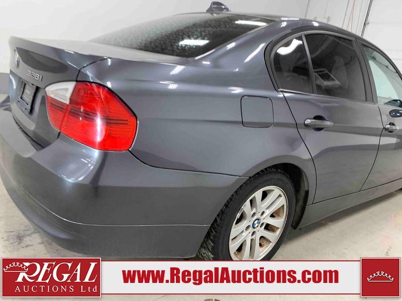 This 2007 BMW 3-SERIES 328I 4D SEDAN is powered by a 3.0L 6 cylinder gasoline engine and an automatic transmission. The car has seats for 5 people. The mileage is average considering the car's age. The vehicle has high value options including a sunroof, leather upholstery, and heated seats. The body looks to be in fair condition overall. There are chips on the front bumper, hood, and rear bumper. There are scratches on the left front door, rear bumper, trunk lid, right rear fender, and right front door. There is minimal dent damage on the right rear fender. There are very minor scratches in many areas around the body. There are very minor chips in many areas around the body. The interior looks to be in good condition overall. The windshield is chipped. All of the tires have lots of tread remaining. This car is being sold by an automotive broker. The vehicle will be sold with the following declarations: Claims Total $10,000 - $14,999 (See Footnote 1). Footnotes: 1) The vehicle's total recorded insurance claims history is between $10,000 - $14,999. This is the amount of money that was paid out by an insurance company for repairs to cover claims against the vehicle's insurance policy. This information is provided by CarFax. Regal Auctions Ltd. makes no guarantee or warranty, either express or implied, with respect to the data provided in this report. The information has been provided from the consignor and from sources generally believed to be reliable, however the accuracy of this information cannot be guaranteed by Regal Auctions.