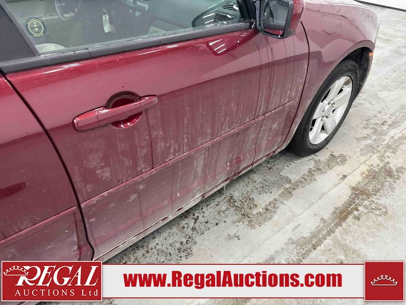 This 2007 FORD FUSION 4D SEDAN is powered by a 2.3L 4 cylinder gasoline engine and an automatic transmission. The car has seats for 5 people. The car has low mileage for its age. The vehicle has power windows, power locks, a radio, and air conditioning. The dash light system is malfunctioning and some of the dash lights don't work. The Check Engine light, Airbag, light, Maintenance ligjt, and ABS lights are on. The body looks to be in fair condition overall. The front bumper is broken. There are slight scratches on the front bumper. There is dent damage on the right front fender. There are very minor chips in many areas around the body. There are very minor scratches in many areas around the body. The interior looks to be in good condition overall. The windshield is chipped. The front tires are both worn. The rear tires both have lots of tread remaining. This car is being sold by an automotive broker. The vehicle will be sold with the following declarations: Claims Total $3000 - $4999 (See Footnote 1). Footnotes: 1) The vehicle's total recorded insurance claims history is between $3,000 - $4,999. This is the amount of money that was paid out by an insurance company for repairs to cover claims against the vehicle's insurance policy. This information is provided by CarFax. Regal Auctions Ltd. makes no guarantee or warranty, either express or implied, with respect to the data provided in this report. The information has been provided from the consignor and from sources generally believed to be reliable, however the accuracy of this information cannot be guaranteed by Regal Auctions.
