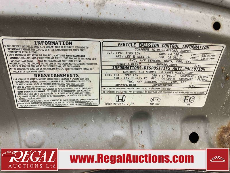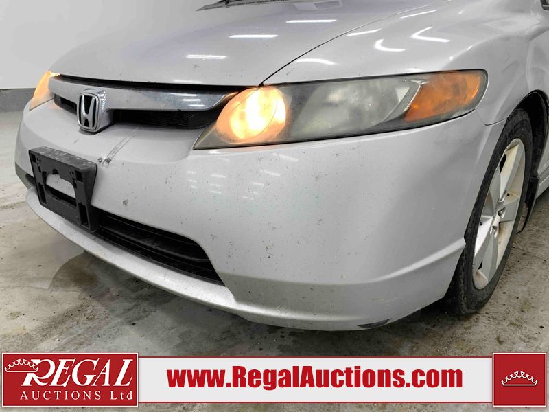 This 2008 HONDA CIVIC EX-L 4D SEDAN is powered by a 1.8L 4-cylinder gasoline engine and a 5-speed manual transmission. The car has seats for 5 people. The car has high mileage for its age. The vehicle has high-value options including a sunroof, leather upholstery, and heated seats. The body looks to be in rough condition overall. The front bumper is cracked. There are slight chips on the front bumper, hood, left front fender, left front door, left rear door, left rear fender, and rear bumper. There are scratches on the front bumper, left front door, left rear door, left rear fender, rear bumper, and right front door. There is minimal dent damage on the left front fender, left front door, left rear door, left rear fender, and right front fender. There is minor rust on the left rear fender, right rear fender, and right front door. There are very minor chips in many areas around the body. There are very minor scratches in many areas around the body. The headlight lenses are hazy. The interior looks to be in good condition overall. The drivers seat is worn. The windshield is cracked. The front tires are nearly bald and should be replaced. The rear tires are worn. This car is being sold by an automotive broker. Regal Auctions Ltd. makes no guarantee or warranty, either express or implied, with respect to the data provided in this report. The information has been provided from the consignor and from sources generally believed to be reliable, however the accuracy of this information cannot be guaranteed by Regal Auctions.