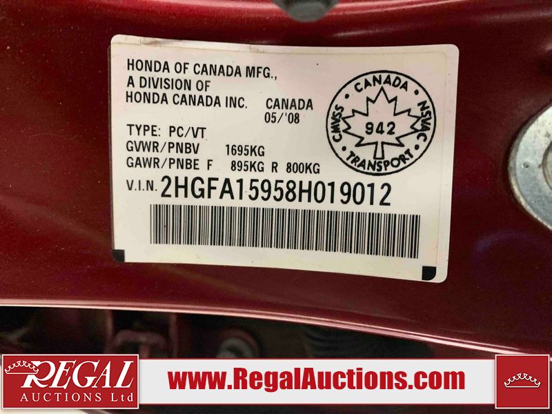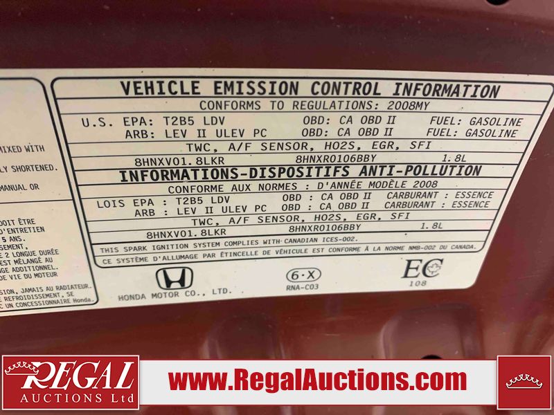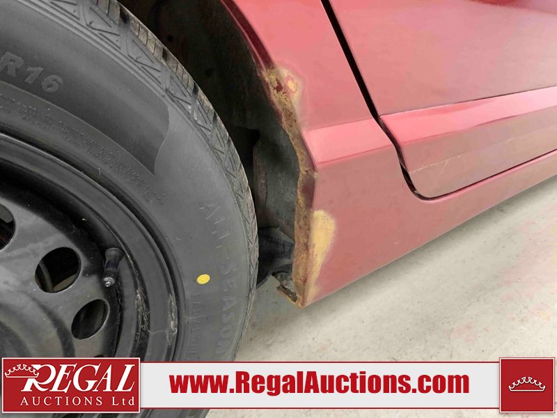 This 2008 HONDA CIVIC EX 4D SEDAN is powered by a 1.8L 4-cylinder gasoline engine and an 5-speed manual transmission. The car has seats for 5 people. The mileage is average considering the car's age. The vehicle has high-value options including a sunroof, leather upholstery, and heated seats. The Maintenance light is on. The body looks to be in rough condition overall. There are pronounced scratches on the roof. There is pronounced dent damage on the left rear fender. There is a fair amount of rust on the right rear fender. There are chips on the front bumper and left front fender. There are scratches on the hood, left front fender, left front door, left rear door, left rear fender, rear bumper, trunk lid, right rear fender, right rear door, right front door, and right front fender. There is slight dent damage on the left front fender. There is rust on the left rear fender. There is slight hail on the trunk lid. There are very minor chips in many areas around the body. There is very minor dent damage on the hood. The headlight lenses are hazy. The interior looks to be in fair condition overall. The driver's seat is worn. The doors are torn. The windshield is chipped. All of the tires have lots of tread remaining. This car is being sold by an automotive broker. The vehicle will be sold with the following declarations: Auctioneer Announcement "* PARKING BRAKE RELEASE HANDLE BROKEN * ", Claims Total $1000 - $2999 (See Footnote 1), and Hail Damage (See Footnote 2). Footnotes: 1) The vehicle's total recorded insurance claims history is between $1,000 - $2,999. This is the amount of money that was paid out by an insurance company for repairs to cover claims against the vehicle's insurance policy. This information is provided by CarFax. 2) This vehicle shows signs of damage from a hail storm. Hail damage is not always clearly visible in photographs. Regal Auctions Ltd. makes no guarantee or warranty, either express or implied, with respect to the data provided in this report. The information has been provided from the consignor and from sources generally believed to be reliable, however the accuracy of this information cannot be guaranteed by Regal Auctions.