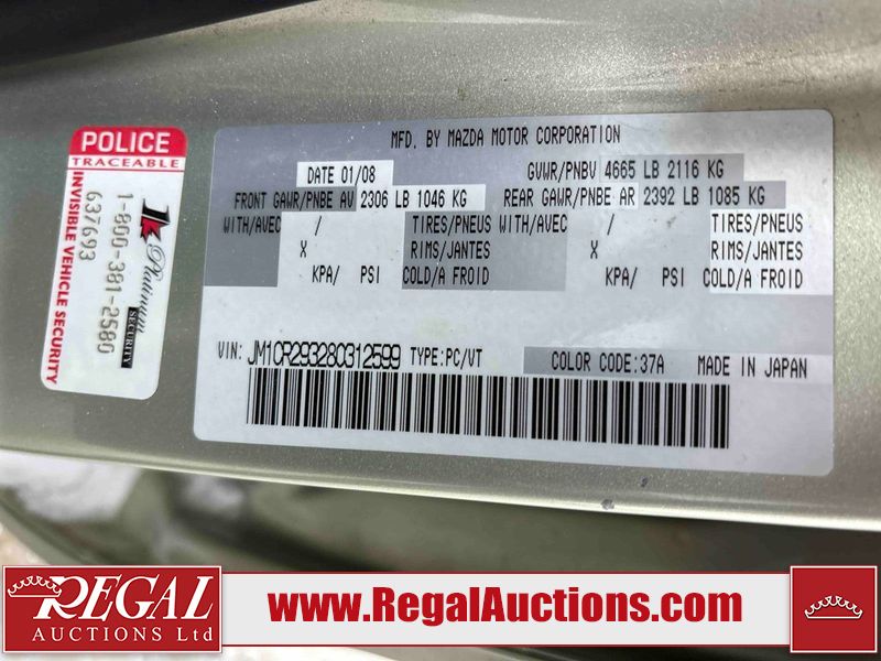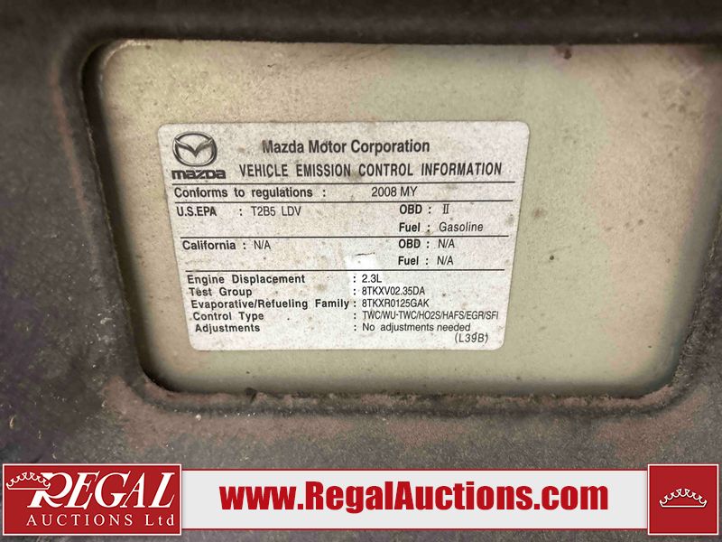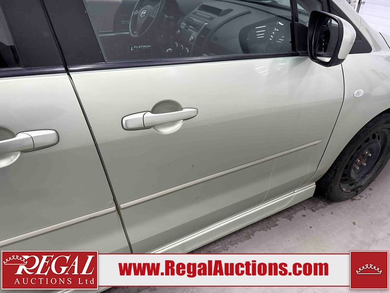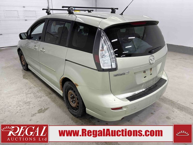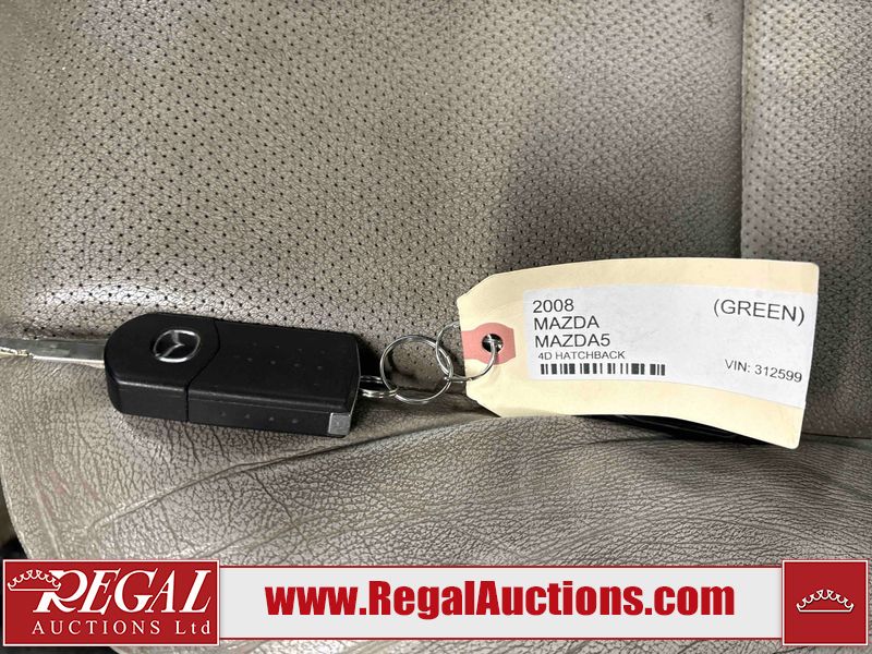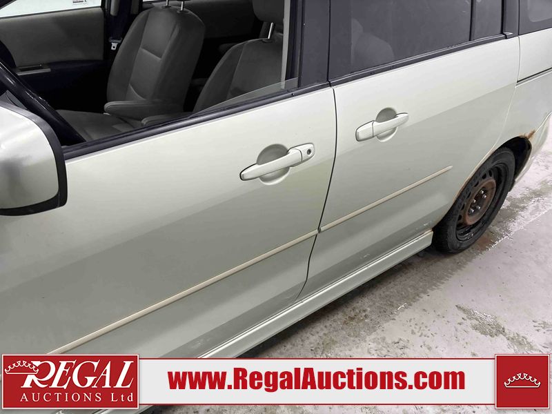 This 2008 MAZDA MAZDA5 4D HATCHBACK is powered by a 4 cylinder gasoline engine and an automatic transmission. The car has seats for 7 people. The car has low mileage for its age. The vehicle has high value options including a sunroof and leather upholstery. The body looks to be in rough condition overall. There is severe rust on the right rear fender. The front bumper is broken. There is noteworthy rust on the left rear fender. There are scratches on the front bumper, rear bumper, right rear fender, and right rear door. There are slight chips on the hood and roof. There is rust on the roof and trunk lid. There is incidental dent damage on the right rear fender and right rear door. There are chips in many areas around the body. There are scratches in many areas around the body. There is dent damage in a few areas around the body. The interior looks to be in good condition overall. The windshield is chipped. The tires are all worn. This car is being sold by a private individual. Regal Auctions Ltd. makes no guarantee or warranty, either express or implied, with respect to the data provided in this report. The information has been provided from the consignor and from sources generally believed to be reliable, however the accuracy of this information cannot be guaranteed by Regal Auctions.
