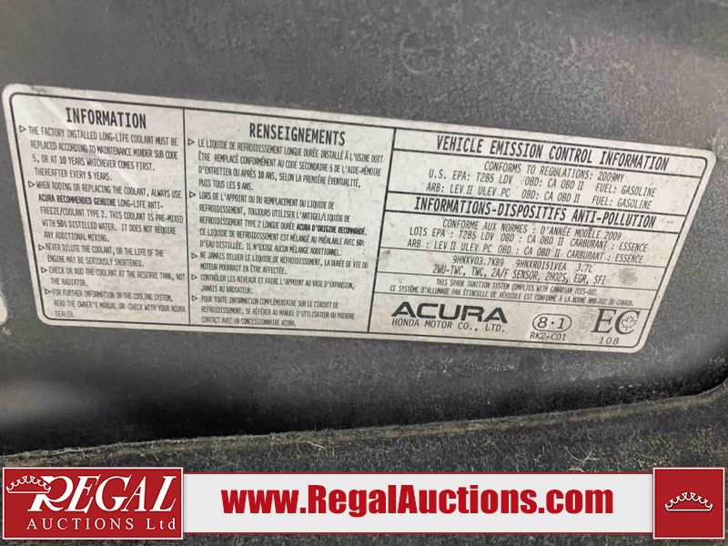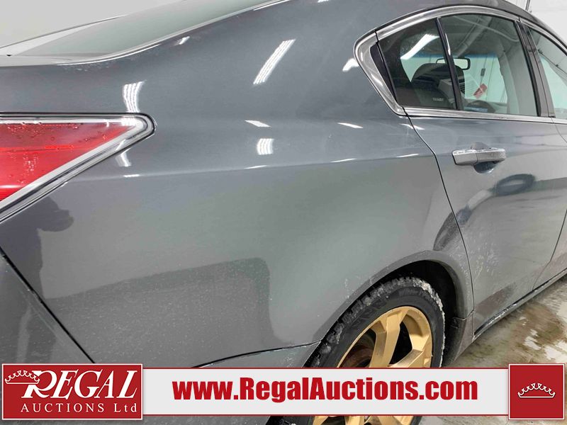 This 2009 ACURA TL SH-AWD TECH 4D SEDAN AWD is powered by a 3.7L V6 gasoline engine and an automatic transmission. It is equipped with all-wheel drive. The car has seats for 5 people. The car has low mileage for its age. The vehicle has high-value options including a sunroof, leather upholstery, power seats, heated seats, navigation, and a backup camera. The Tire Pressure light is on. The vehicle has some mechanical problems. The battery is dead. The vehicle requires a boost to start and may require a booster pack in order to stay running. (See Footnote 1) The body looks to be in fair condition overall. The front bumper is cracked. There are minor chips on the front bumper, hood, roof, and rear bumper. There are slight scratches on the front bumper and rear bumper. There is minor paint peeling on the rear bumper. There is minor rust on the right rear fender. There are very minor chips in many areas around the body. There are very minor scratches in many areas around the body. The front and rear bumpers are misaligned. The interior looks to be in fair condition overall. The driver's seat and passenger seat are worn. The windshield is chipped. The driver side mirror is broken. All of the tires have lots of tread remaining. This car is being sold by an automotive broker. The vehicle will be sold with the following declarations: Out of Province (See Footnote 2) and Out of Province - ON (See Footnote 3). Footnotes: 1) We've identified some mechanical problems with the vehicle. However, the vehicle has not undergone a mechanical inspection and our findings are not to be considered a complete evaluation of the vehicle's mechanical condition. Review our Buyer Protection Policy to see how Regal Auctions protects you from undisclosed mechanical problems. 2) The vehicle's last jurisdiction of registration is not Alberta. The purchaser must have the vehicle undergo and pass an Out of Province inspection before it can be registered in Alberta. 3) The vehicle's last registered jurisdiction is Ontario. The purchaser must have the vehicle undergo and pass an Out of Province inspection before it can be registered in Alberta. Regal Auctions Ltd. makes no guarantee or warranty, either express or implied, with respect to the data provided in this report. The information has been provided from the consignor and from sources generally believed to be reliable, however the accuracy of this information cannot be guaranteed by Regal Auctions.