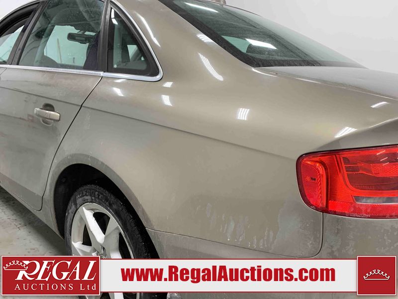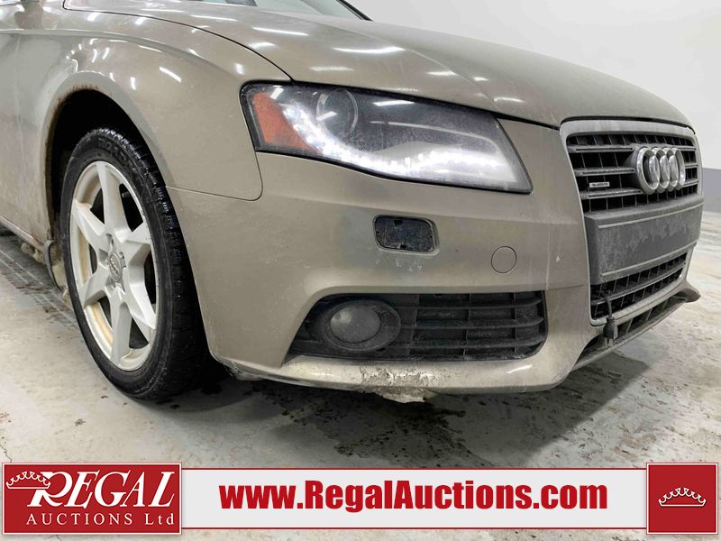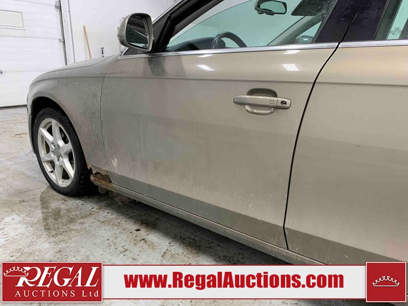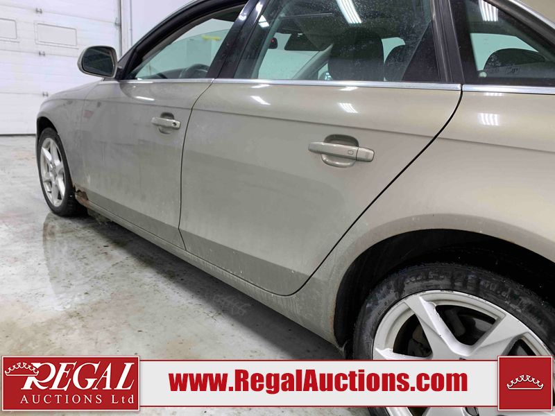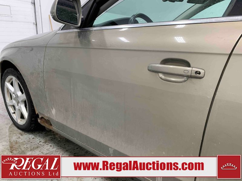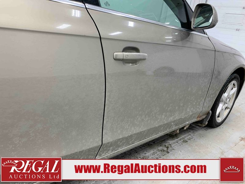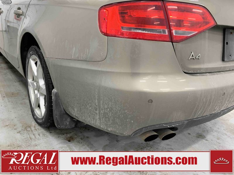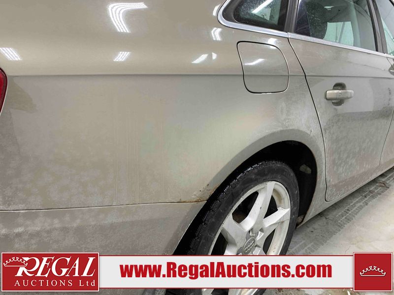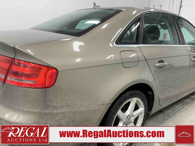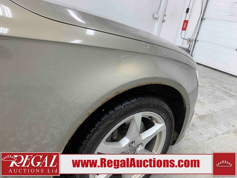 This 2009 AUDI A4 4D SEDAN is powered by a turbocharged 2.0L 4-cylinder gasoline engine and an automatic transmission. It is equipped with all-wheel drive. The car has seats for 5 people. The car has high mileage for its age. The vehicle has high-value options including a sunroof, leather upholstery, power seats, heated seats, navigation, and a backup camera. The Check Engine light is on. The body looks to be in rough condition overall. There is considerable hail on the hood, roof, and trunk lid. There is severe rust on the left front fender. There is moderate rust on the right front fender. There are minimal chips on the front bumper, hood, and roof. There are scratches on the front bumper. There is slight rust on the left rear fender and right rear fender. There is minimal hail on the left rear fender and right rear fender. There is dent damage on the right rear door. There are very minor chips in many areas around the body. There are very minor scratches in many areas around the body. The interior looks to be in fair condition overall. The driver's seat is torn. The passenger seat is worn. The rear seats and doors are dirty. The windshield is damaged. All of the tires have lots of tread remaining. This car is being sold by an automotive broker. Regal Auctions Ltd. makes no guarantee or warranty, either express or implied, with respect to the data provided in this report. The information has been provided from the consignor and from sources generally believed to be reliable, however the accuracy of this information cannot be guaranteed by Regal Auctions.